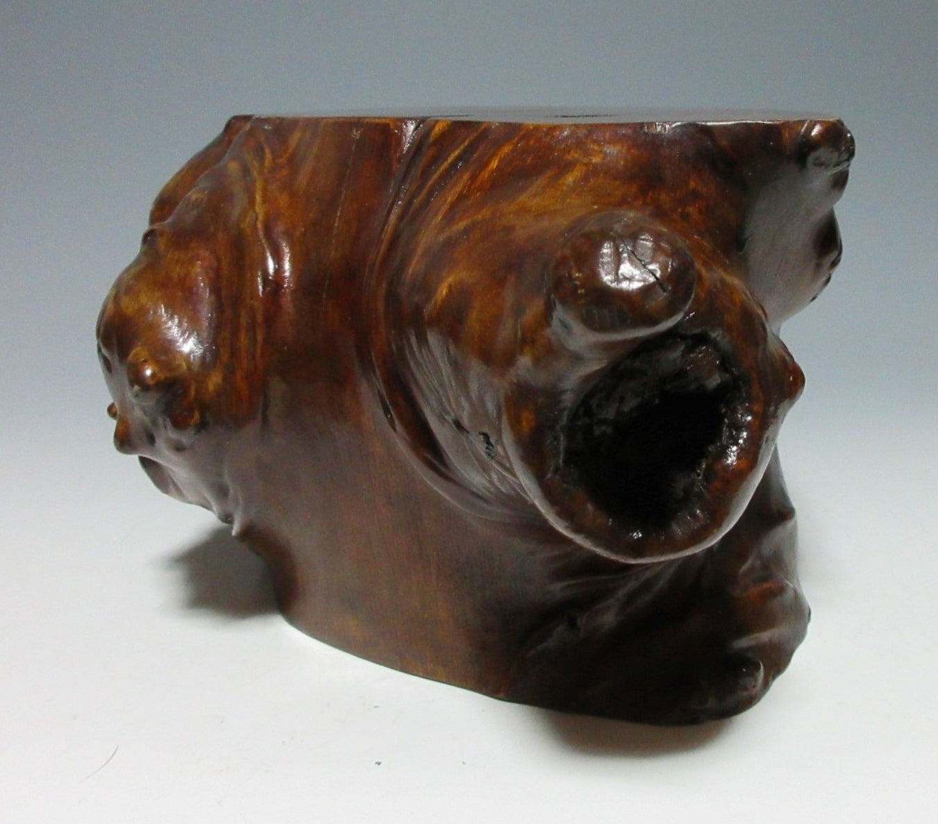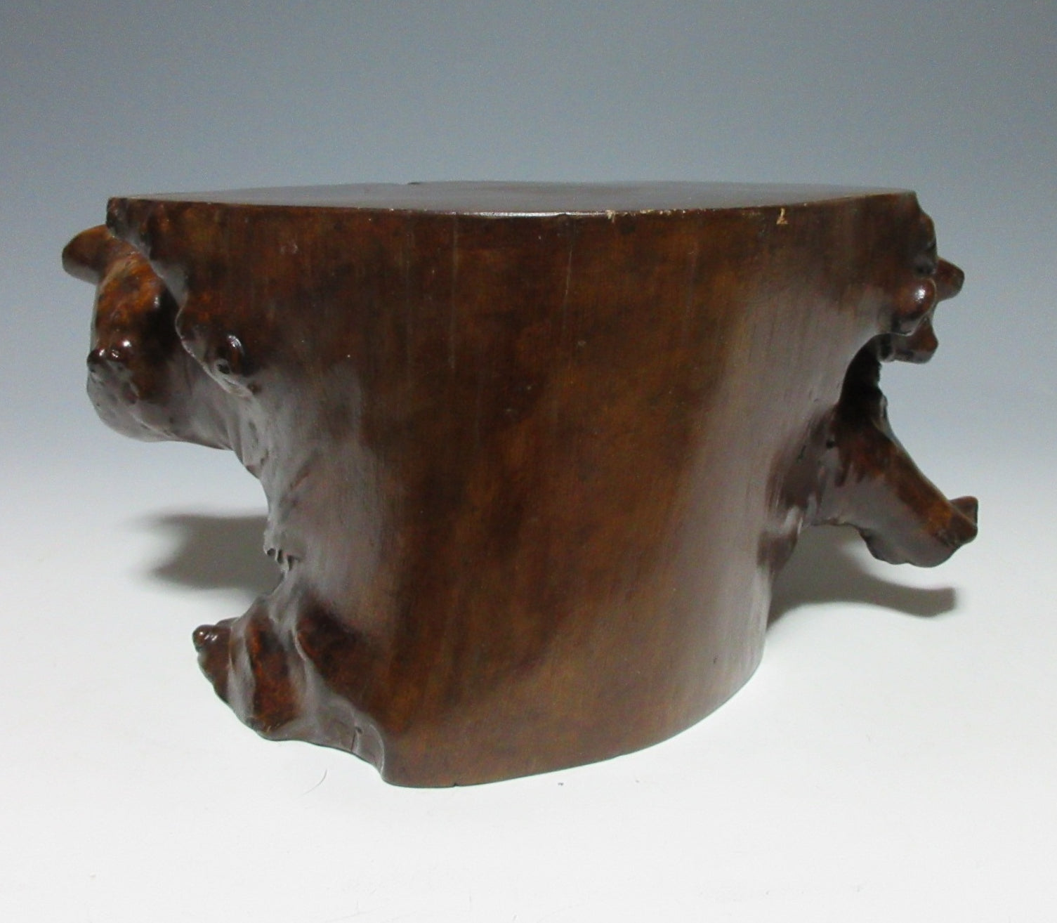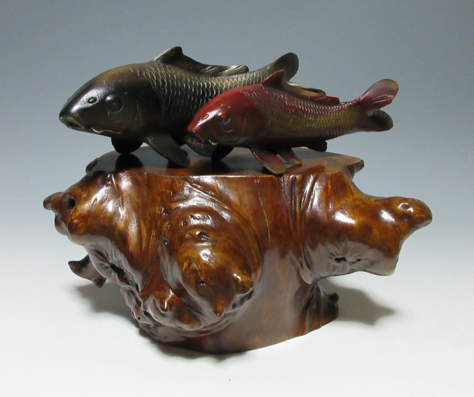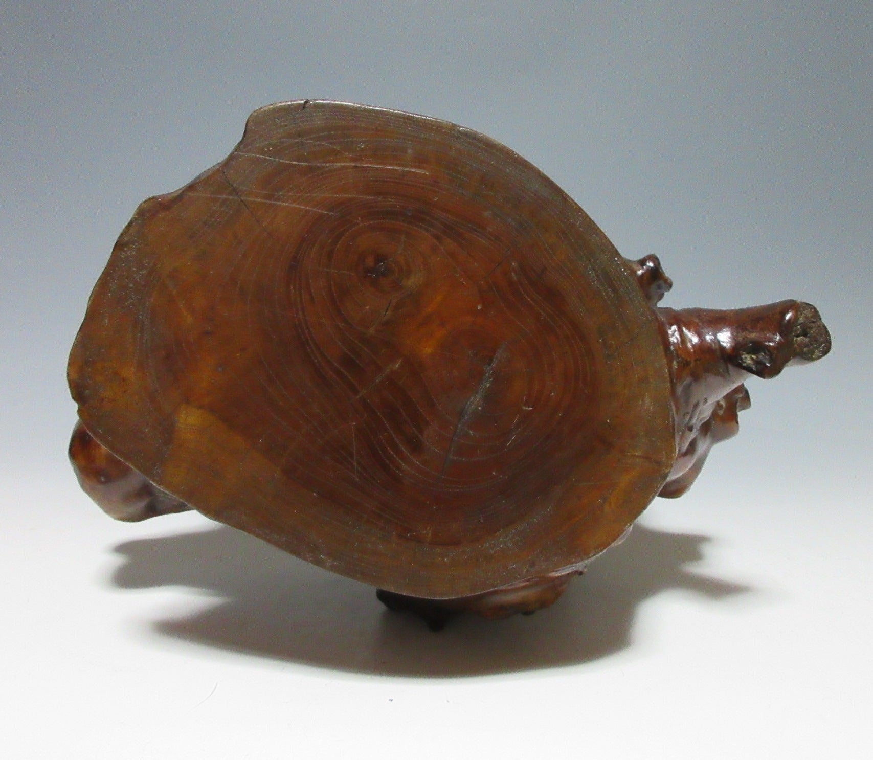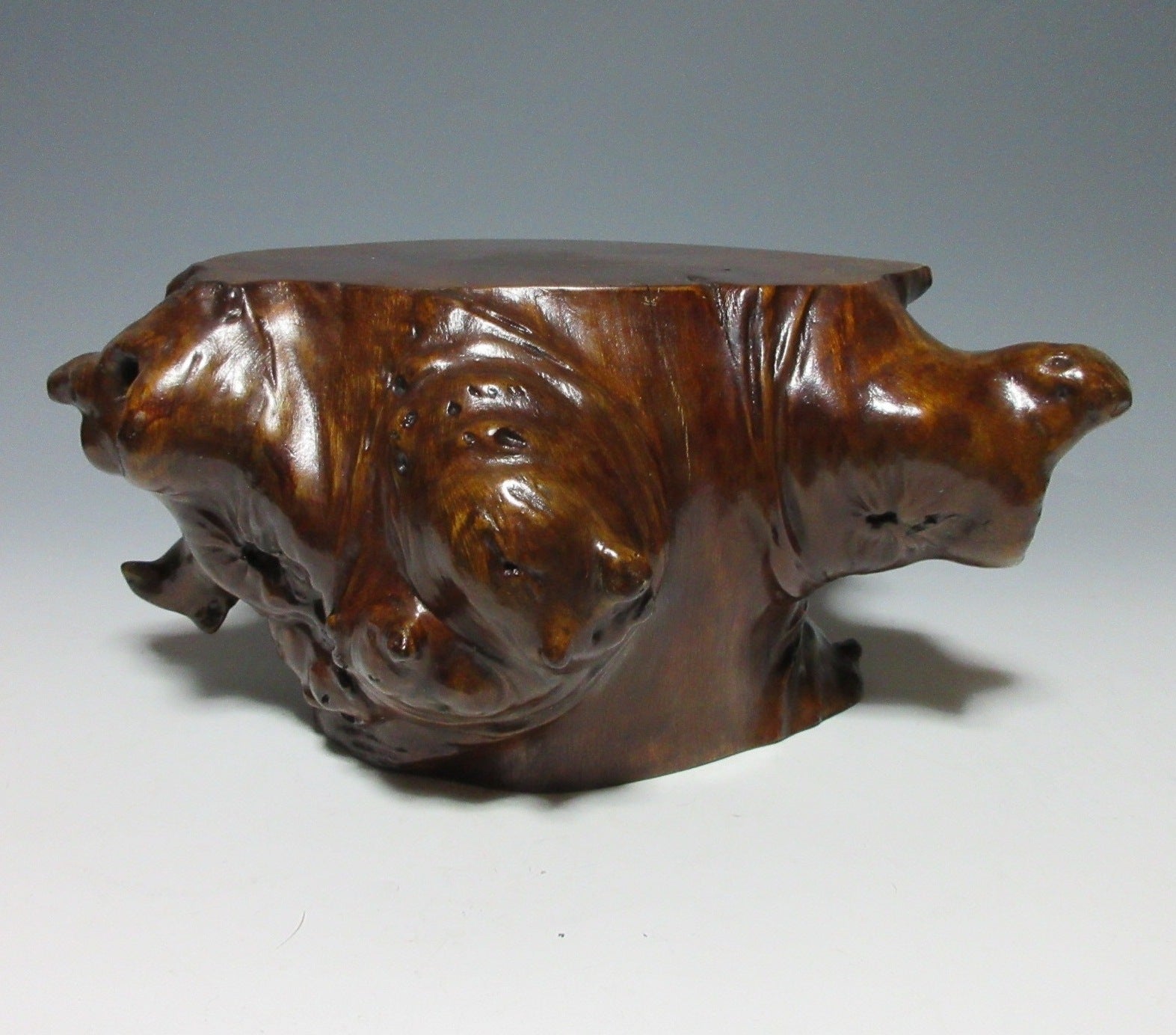 This listing is for a LARGE AND HEAVY lacquered kadai made around 60-70 years ago. Kadai are generally used to display bonsai, okimono, or ikebana flower arrangements. This kadai in this listing is crafted from a tree root and coated in glossy lacquer. The wood grain is clearly visible through the lacquer, and this piece has some wonderful knots in the wood. Please note that the ornaments are not included in this listing.