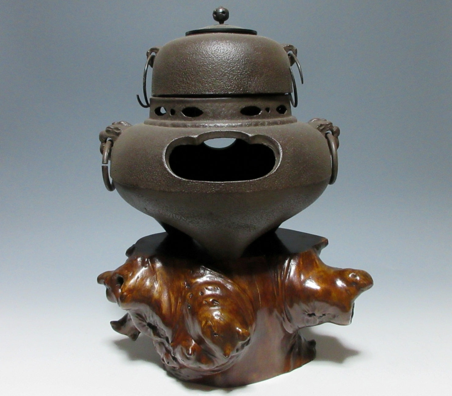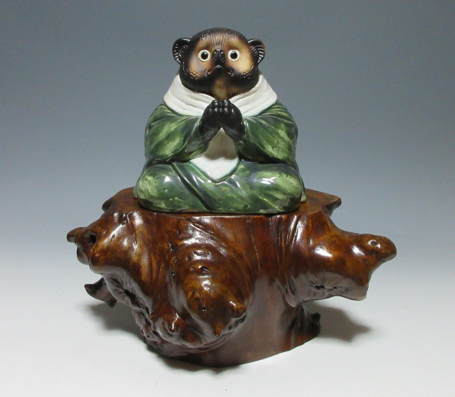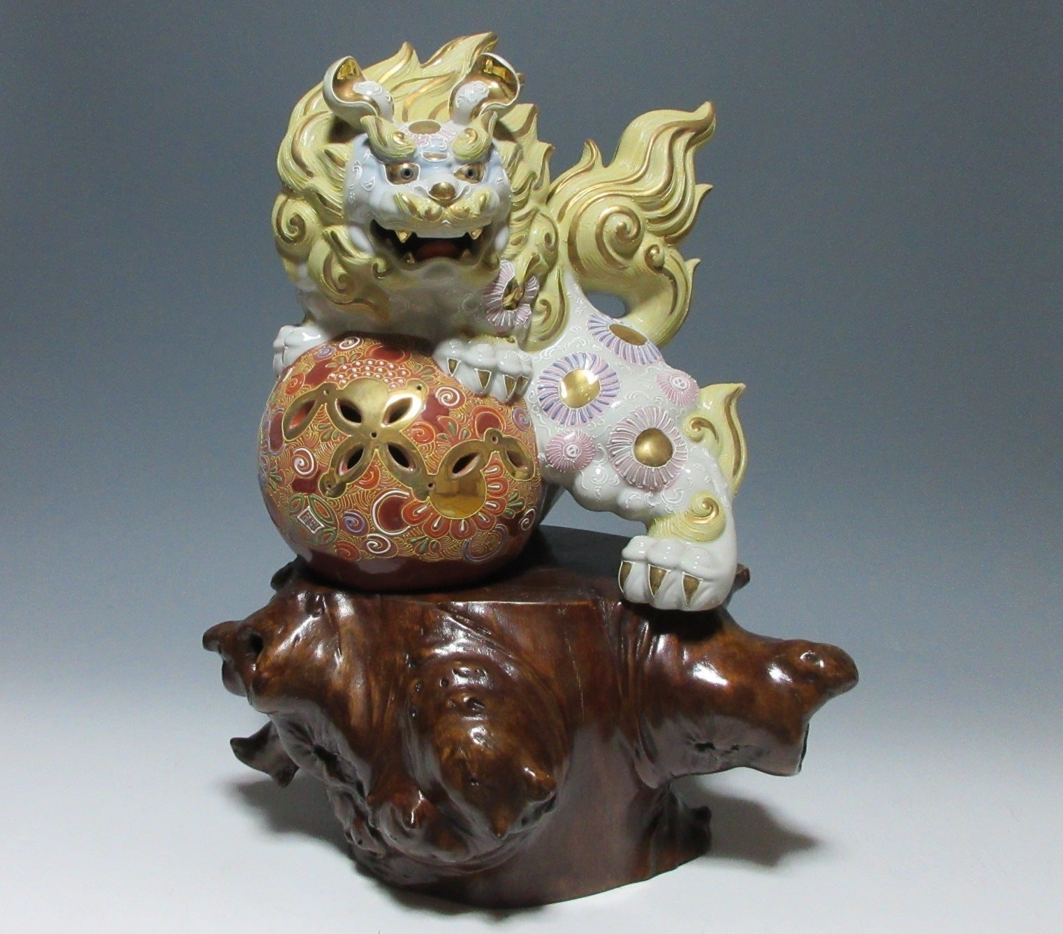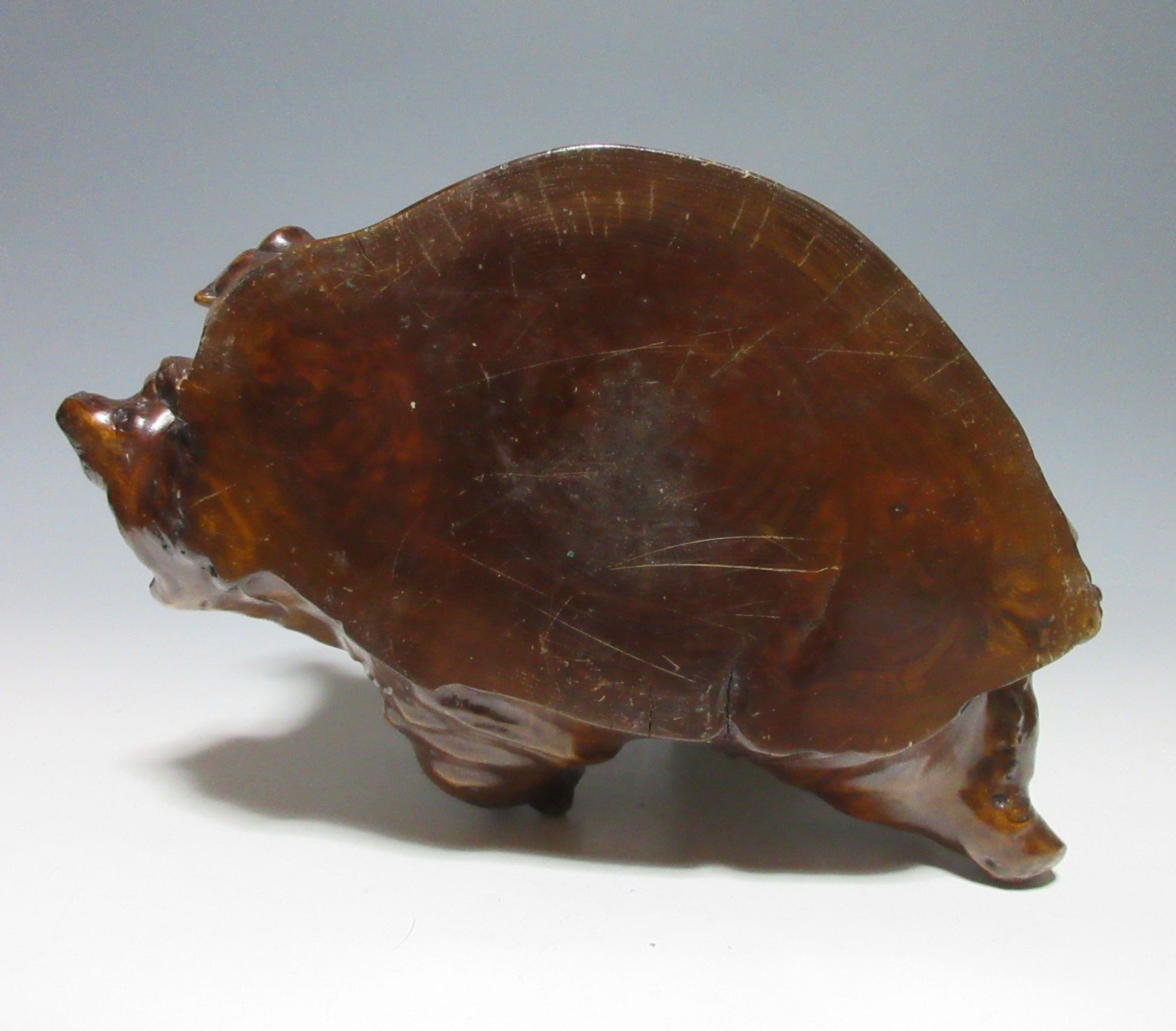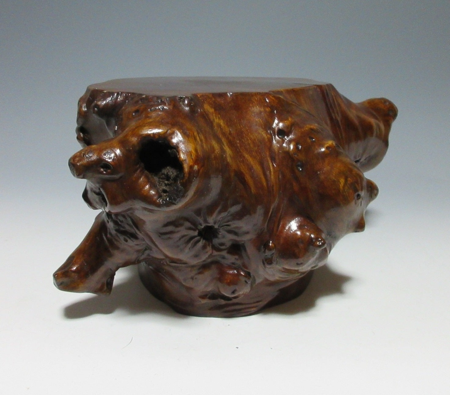This listing is for a LARGE AND HEAVY lacquered kadai made around 60-70 years ago. Kadai are generally used to display bonsai, okimono, or ikebana flower arrangements. This kadai in this listing is crafted from a tree root and coated in glossy lacquer. The wood grain is clearly visible through the lacquer, and this piece has some wonderful knots in the wood. Please note that the ornaments are not included in this listing.