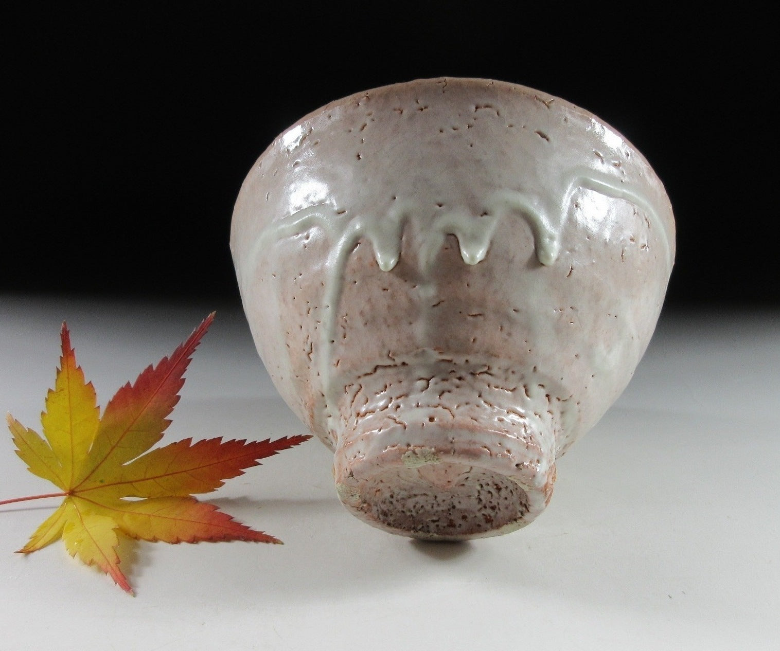 This listing is for a beautiful Hagi-ware chawan made around 20 years ago by noted potter, Maruyama Toushin. It is wheel-thrown and coated with two layers of white ash glaze. The bottom layer is slightly transparent, whilst the second layer is a tad more opaque and in the form of beautiful drips running down the sides. The top quarter was dipped in glaze, and it was then allowed to flow down the sides to form the magical landscape of drips you see in the photos. Also the grittiness of the clay has resulted in beautiful Kannyu cracks. Eventually tea will be absorbed into these natural cracks, and this will allow the chawan to develop a different feel and look over time. The cracks are there to provide water permeability and ventilation, it will help with keeping your bowl clean and in tip top condition. The seal of the potter can be found near the bottom and it comes with its original signed wooden storage box. It also comes with two wrapping cloths for when the bowl is not in use, as well as a Japanese language profile about Hagi-ware and the potter.