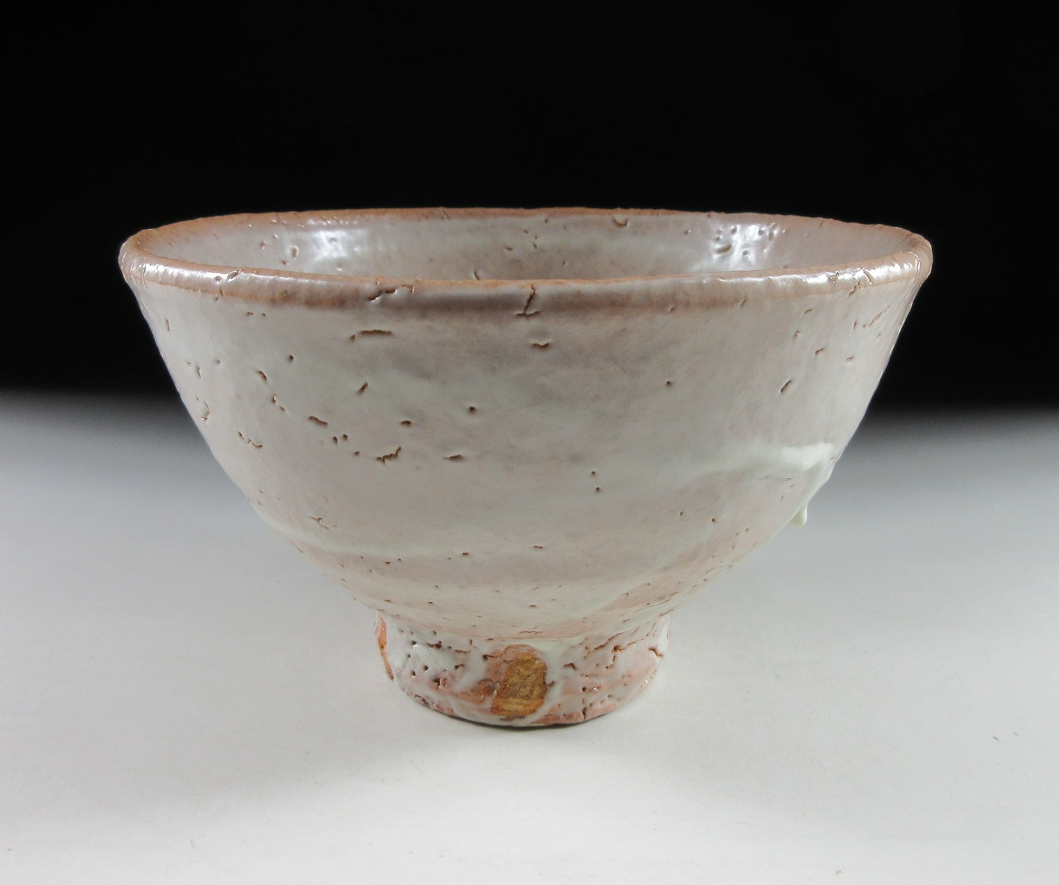 Hagi-ware is a type of high-fired stoneware produced in Yamaguchi Prefecture. It is characterized by its rough clay, bumpy pitted surface, and generous coating of translucent white glaze. It is generally made of very porous clay which results in tiny crackles that absorb tea, so it’s important to soak Hagi-ware thoroughly before use. In time the tea deposits will seep into the glaze, creating a deeper tone. This is often considered a charming characteristic rather than a shortcoming, and it’s precisely the reason why Hagi-ware is so highly regarded in the world of Chado.