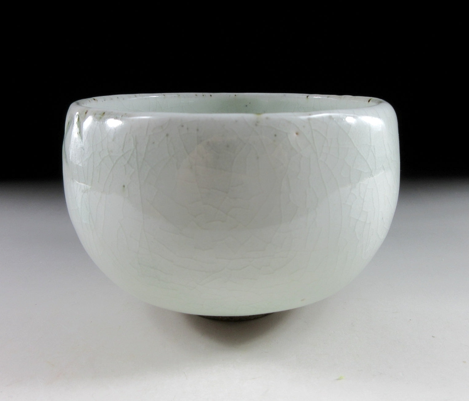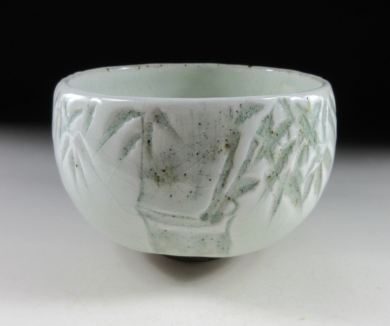This listing is for a vintage Mashiko-ware chawan made around 20 years ago. It is wheel-thrown and the front is decorated with a bamboo motif over a white glazed base, and the potter has added a layer of celadon glaze over the top. It’s slightly speckled appearance is due to the high iron content in the clay, and this piece has been fired at a high temperature. Two stamps belonging to the kiln/potter can be found on the bottom, sorry no box for this one. *PLEASE NOTE THAT THE CHASHAKU TEA SCOOP IS NOT INCLUDED.