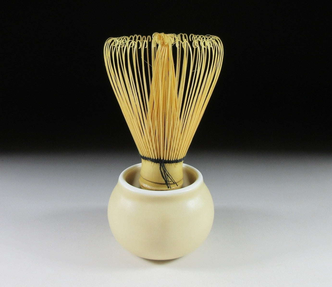 This listing is for a Mino-ware chasen-tate produced for Origami Japan. It is made of porcelain slip and coated in matte beige glaze. This particular item is a modern take on the traditional kusenaoshi, it can be used two ways. When placed upright it stores and maintains the shape of your tea whisk, and when placed upside down it acts as a stand for your chasen during tea practice. It comes with its original paper storage box. *PLEASE NOTE THAT THE TEA WHISK IS NOT INCLUDED IN THIS LISTING,