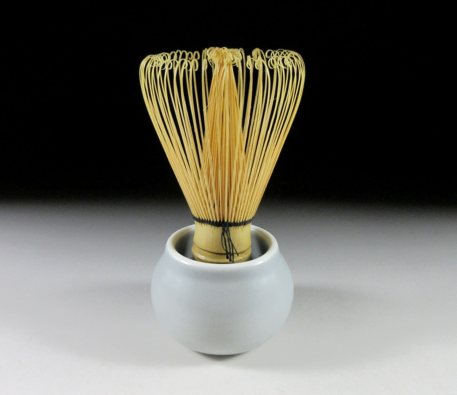 This listing is for a Mino-ware chasen-tate produced for Origami Japan. It is made of porcelain slip and coated in matte grey glaze. This particular item is a modern take on the traditional kusenaoshi, it can be used two ways. When placed upright it stores and maintains the shape of your tea whisk, and when placed upside down it acts as a stand for your chasen during tea practice. It comes with its original paper storage box. *PLEASE NOTE THAT THE TEA WHISK IS NOT INCLUDED IN THIS LISTING.