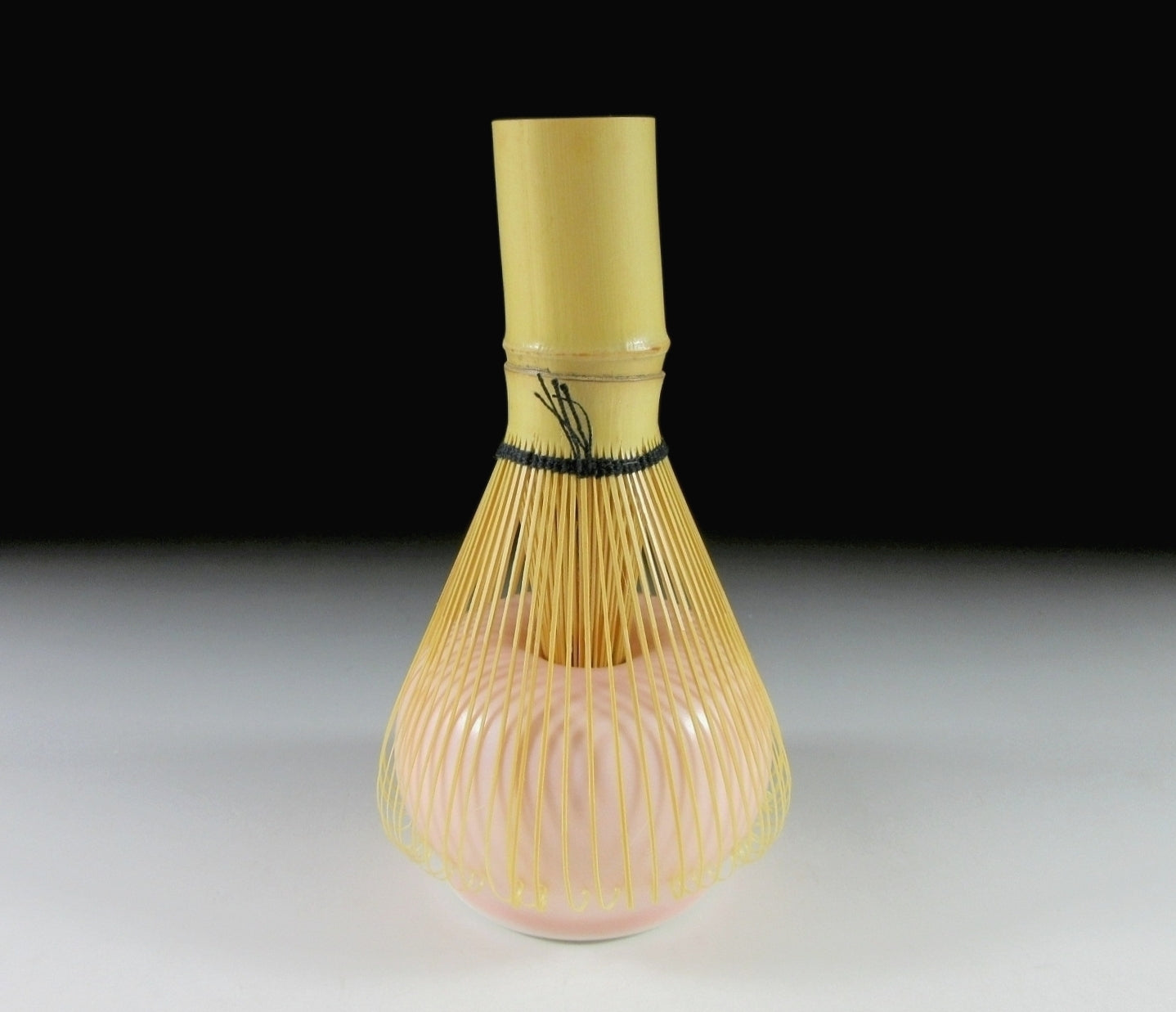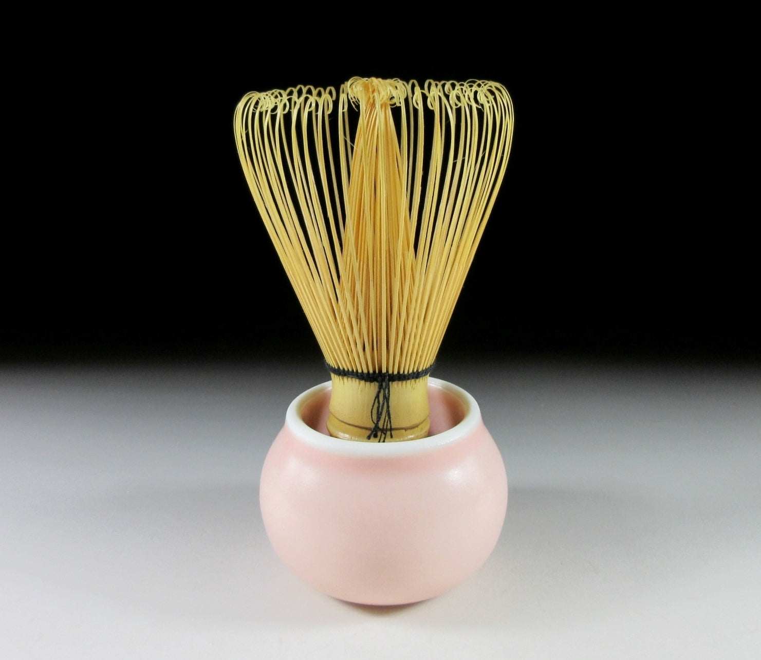 This listing is for a Mino-ware chasen-tate produced for Origami Japan. It is made of porcelain slip and coated in matte pink glaze. This particular item is a modern take on the traditional kusenaoshi, it can be used two ways. When placed upright it stores and maintains the shape of your tea whisk, and when placed upside down it acts as a stand for your chasen during tea practice. It comes with its original paper storage box. *PLEASE NOTE THAT THE TEA WHISK IS NOT INCLUDED IN THIS LISTING.