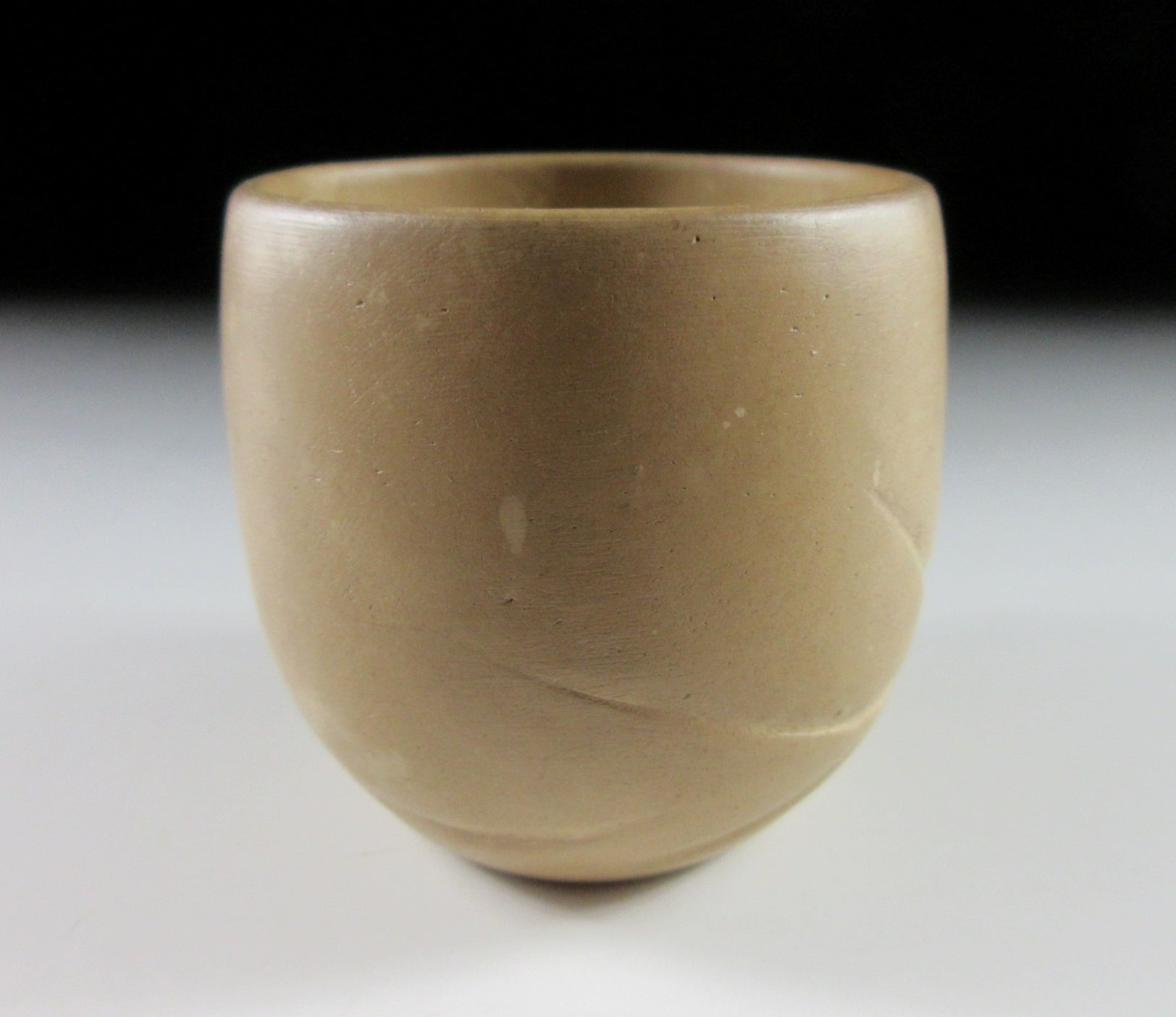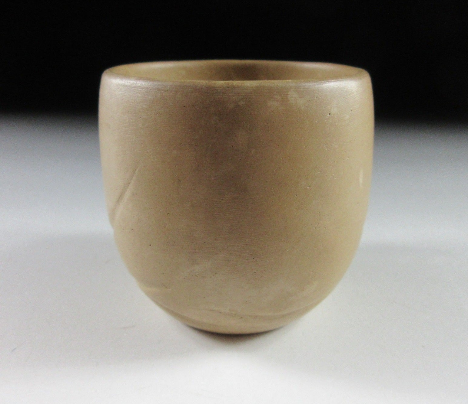 This listing is for a small Akita-ware yunomi made around 30-40 years ago by Miura Ginichiro. It is made of light coloured ‘hakudei ‘ clay, and the front is pushed in and decorated with Daruma. This piece has been painstakingly moulded by hand, and the eyes are made of small balls of clay that roll around when the cup is moved. Akita pieces change colour after frequent use, this cup has been used and changed from its original colour. Please note that this piece is UNSIGNED.