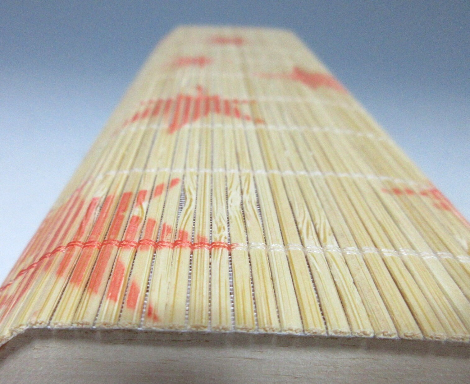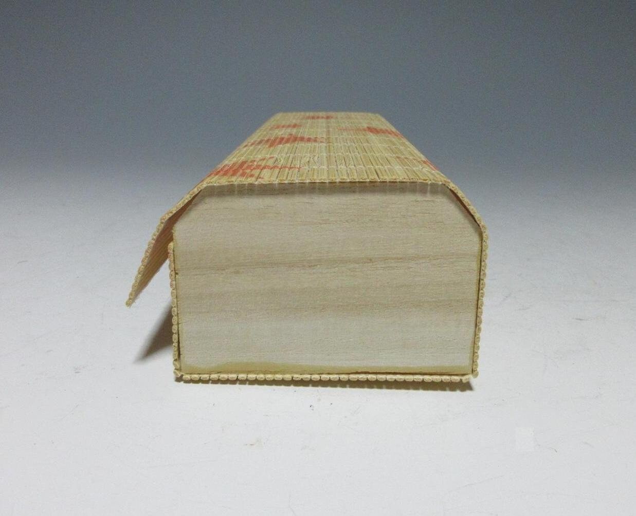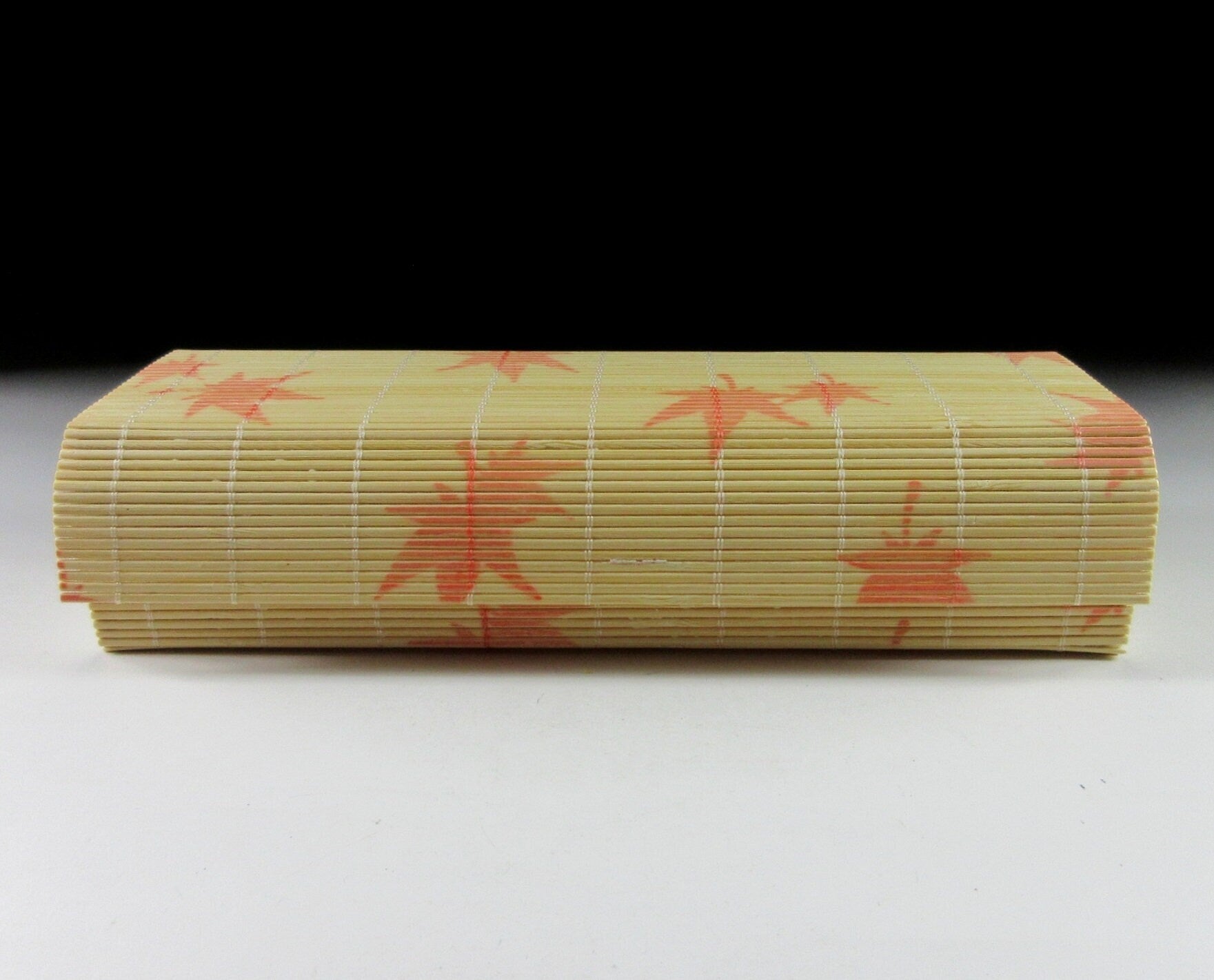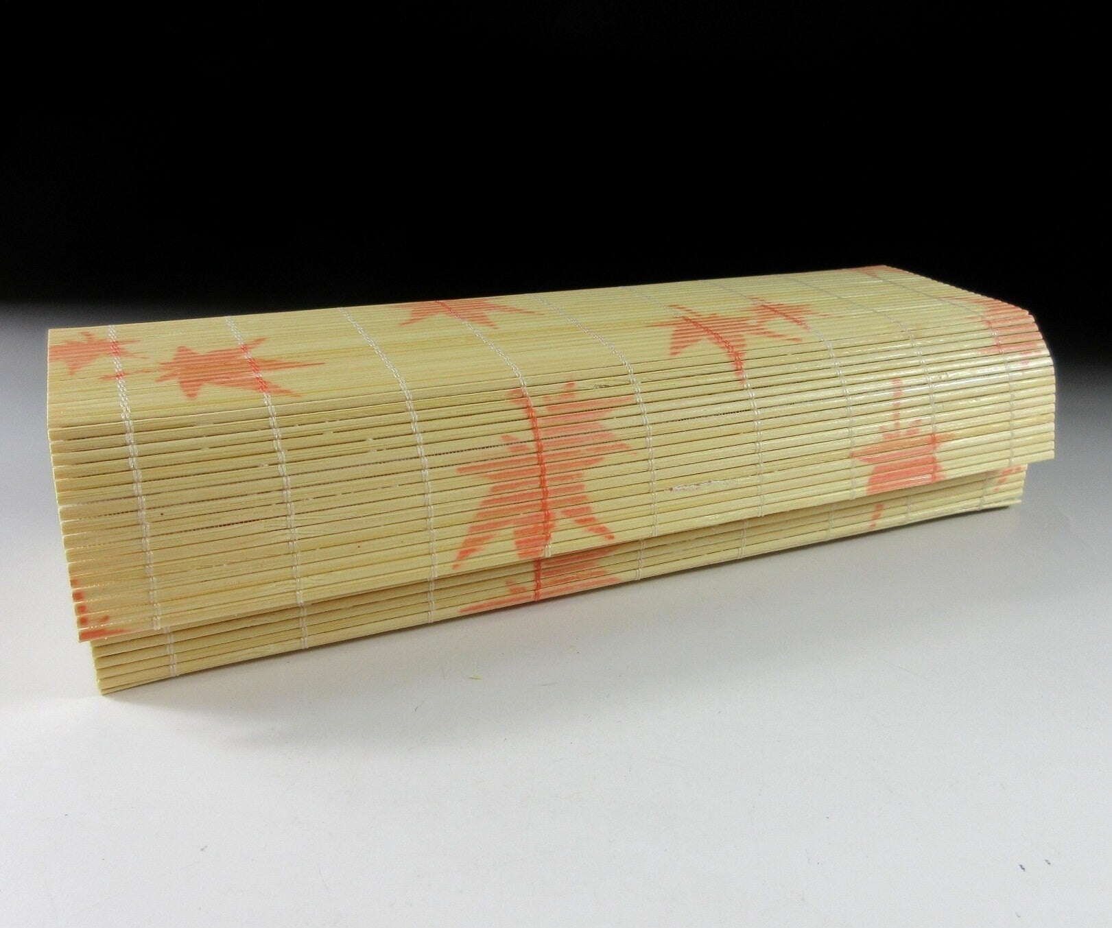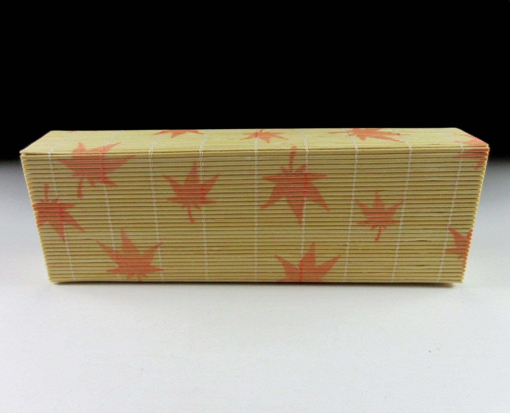 This listing is for a small sudare sweets case with a seasonal momiji pattern. It consists of a lightweight natural wood frame covered with a small bamboo mat. Sudare cases are generally used for serving things such as sweets and tea confectionery. It is better to line it with waxed paper such as paraffin paper if you plan to use it for serving unpackaged sweets, or those that are sticky. Please note that this item is not suitable for the long term storage of food, it is only meant to serve food during a meal or tea time. Wash and allow the case to dry well before packing it away.
