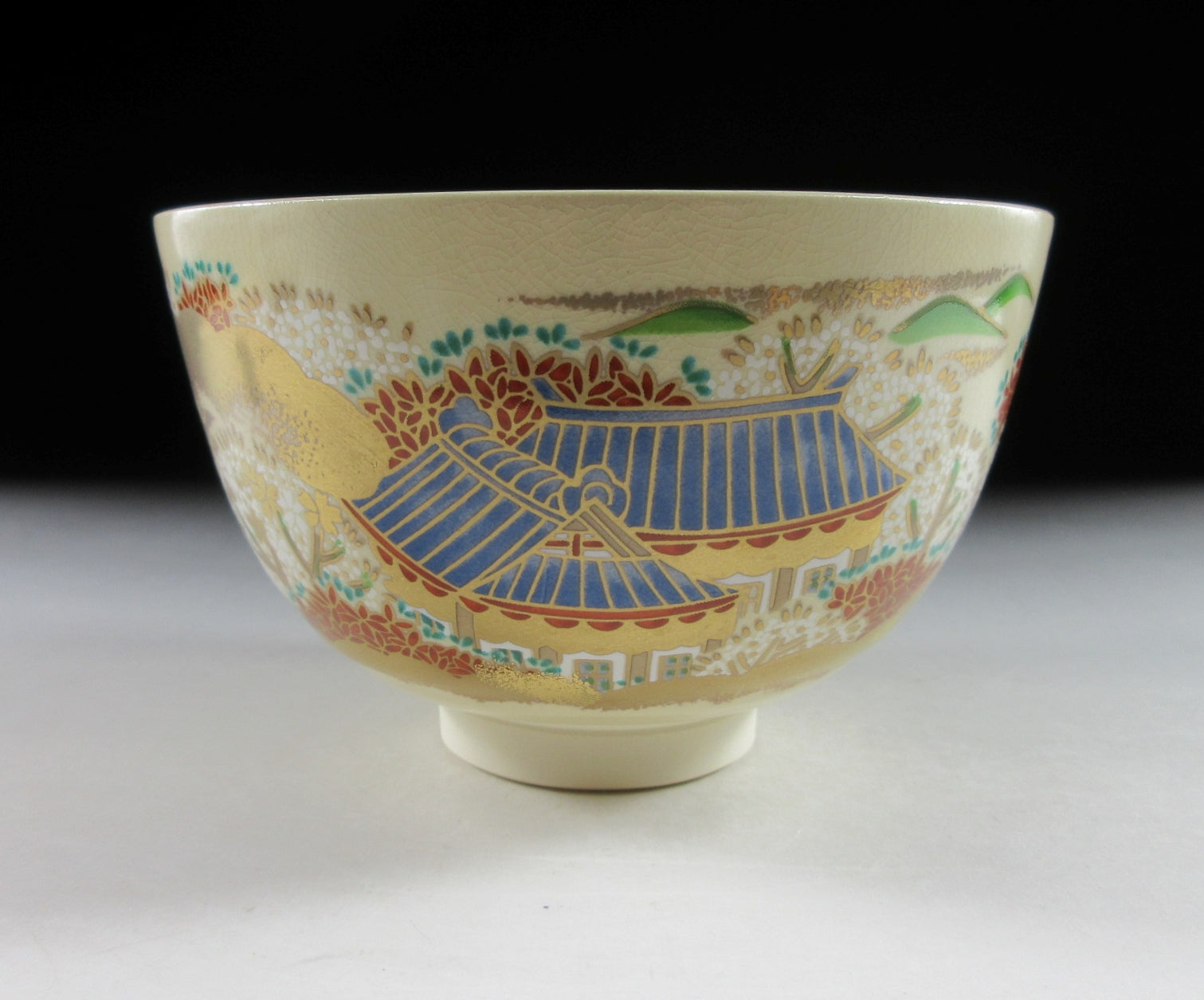 This listing is for a Mino-ware chawan made by Kato Tohzan. It is wheel-thrown and the exterior of the bowl features spring scenery captured at Yoshinoyama (Mt. Yoshino). Mt. Yoshino is located in the central part of Nara Prefecture and is a popular sightseeing spot for viewing cherry blossoms. It is said that the first trees were planted some 1300 years ago during the Heian Period. It has deep connections with the imperial family, and was designated as a national scenic and historic site back in 1921. It is still enjoyed by many visitors today, and is ranked as one of the best sakura viewing spots in the Kansai region. The stamp of the potter can be found on the bottom, and it comes with its original paper storage box. It also comes with a Japanese language profile paper about Mino-ware and Tohzan Gama, as well as a brief explanation of Yoshinoyama.