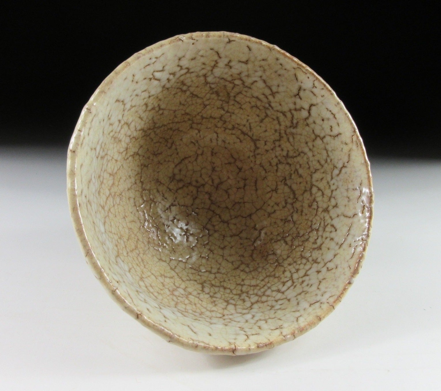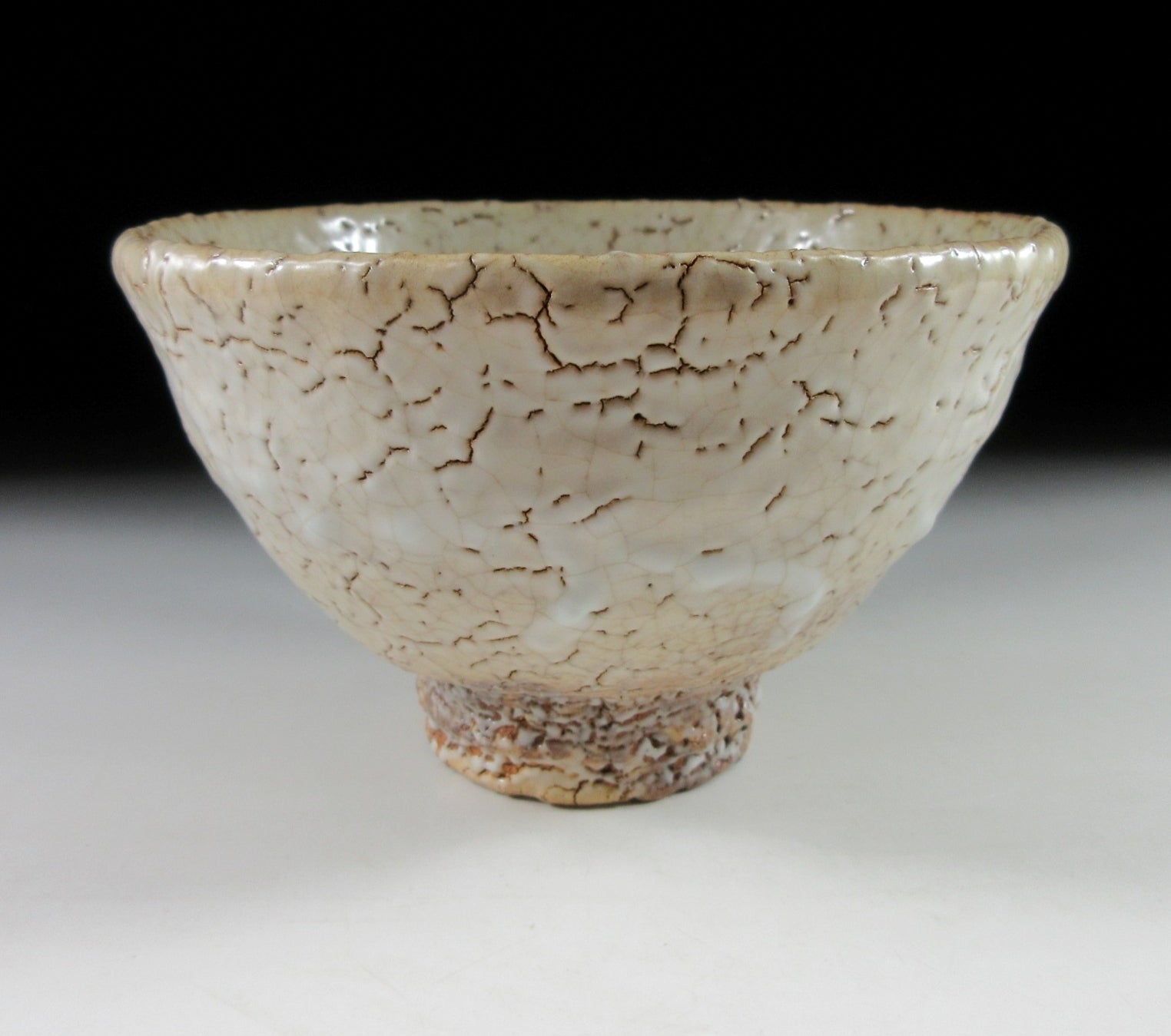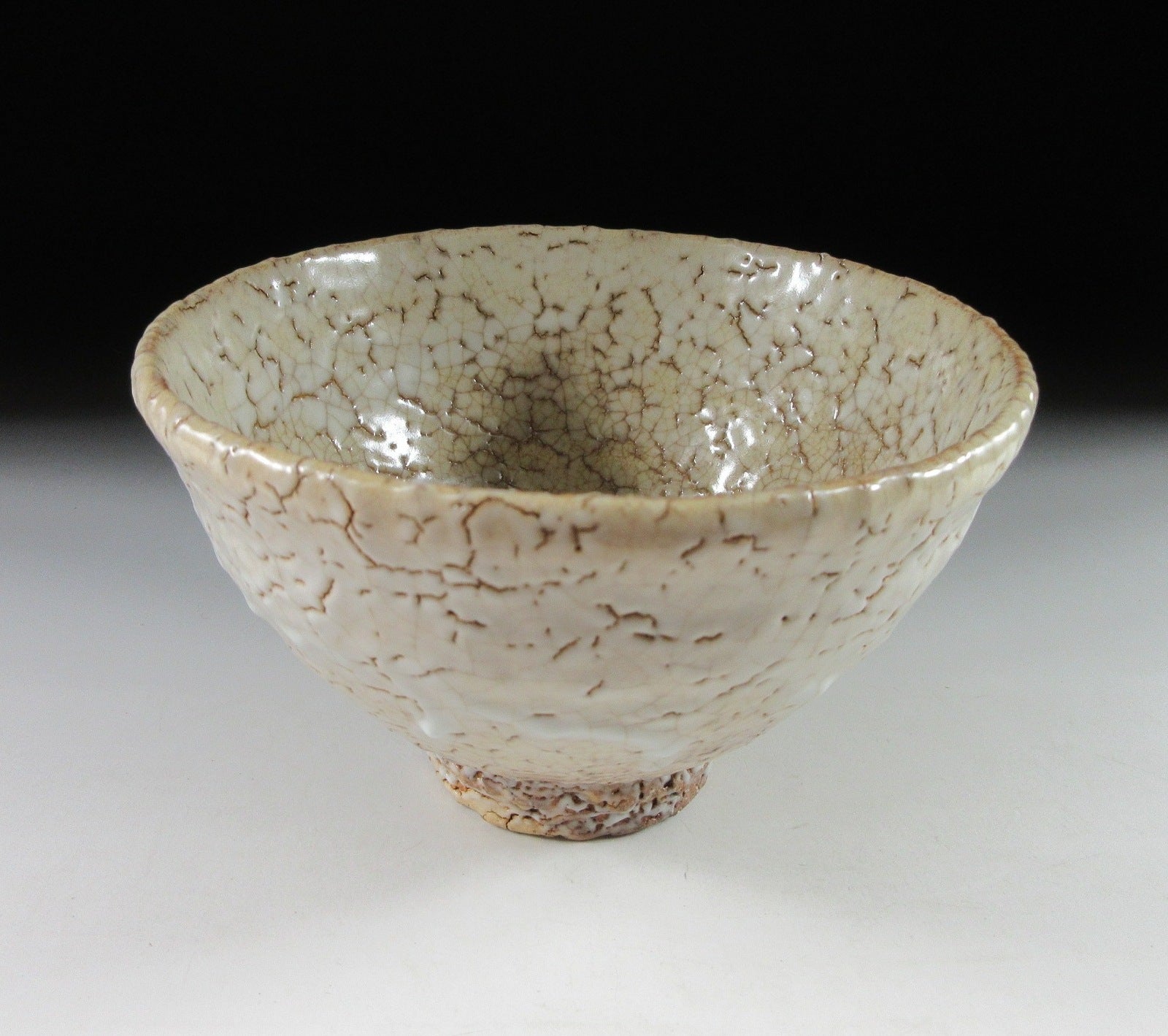Hagi-ware is a type of high-fired stoneware produced in Yamaguchi Prefecture. It is characterized by its rough clay, bumpy pitted surface, and generous coating of translucent white glaze. It is generally made of very porous clay which results in tiny crackles that absorb tea, so it’s important to soak Hagi-ware thoroughly before use. In time the tea deposits will seep into the glaze, creating a deeper tone. This is often considered a charming characteristic rather than a shortcoming, and it’s precisely the reason why Hagi-ware is so highly regarded in the world of Chado.