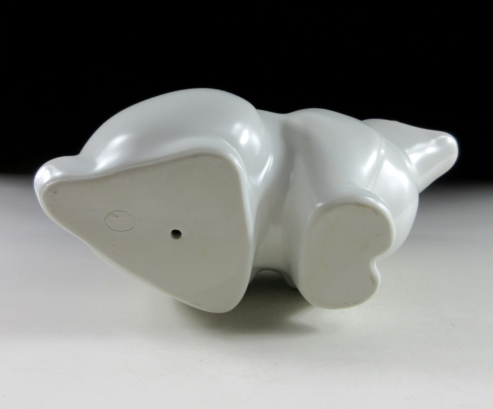 This listing is for a vintage Izushi-ware rabbit okimono made by noted potter, Nagasawa Eizan II. It has a smooth milky white surface, the colour resembles the milky water after rice is washed. It was possibly made to commemorate the Year of the Rabbit back in 1987. The stamp of the potter can be found on the bottom, and it comes with its original signed wooden storage box.