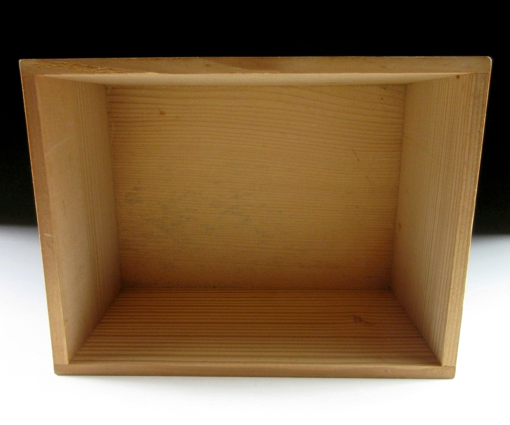 It’s in very good condition with no chips or cracks, the wooden box however is a little spotty and discoloured. Also one of the strips of wood on the underside of the lid is missing.