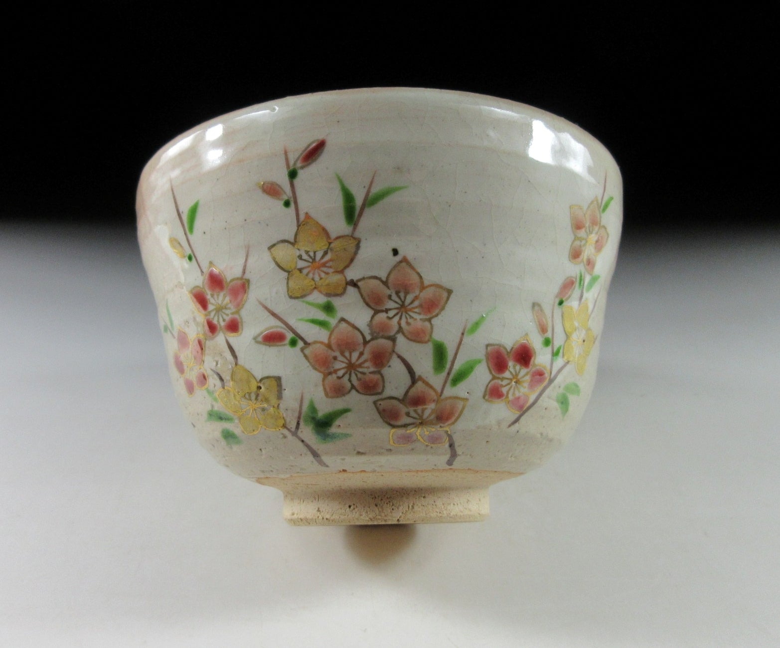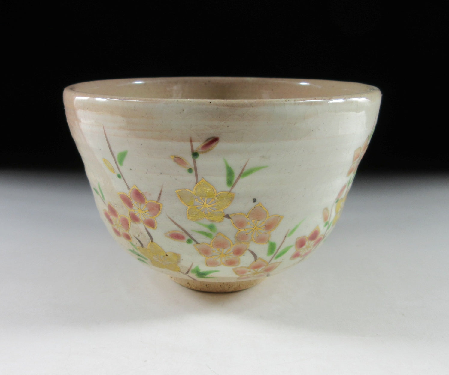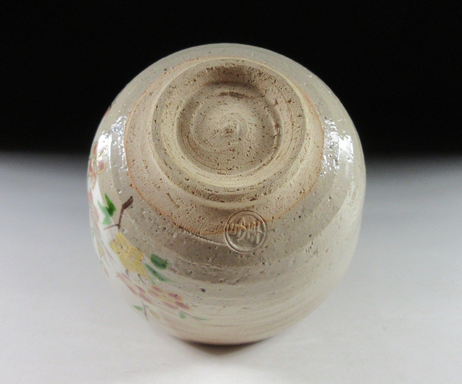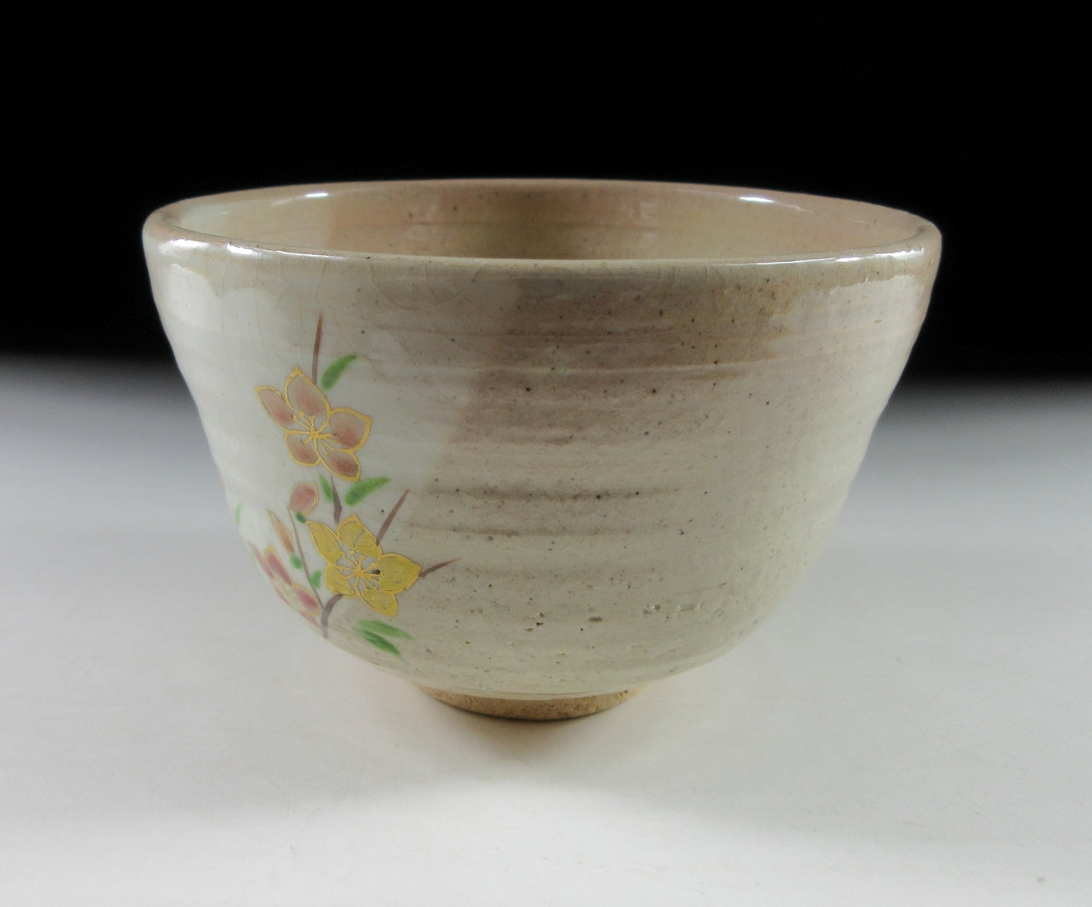 This listing is for a seasonal Kyo-ware chawan made around 10 years ago by noted potter, Nakamura Yohei. It is wheel-thrown and the front is decorated with bellflowers. Bellflowers come in pink, purple, indigo or white, and represent one of the seven flowers of autumn. The other six flowers of autumn are bush clover, pampas grass, Japanese arrowroot, dianthus, golden lace, and hemp agrimony. These seasonal favourites have been popular since the latter half of the eighth century when a collection of waka poems known as Manyo-shu were compiled by a waka poet named Yamanoue-no-Okura. This piece is ideal for late summer/early autumn, and sits nice in the hand. The stamp of the potter can be found on the bottom, sorry but no box for this one.