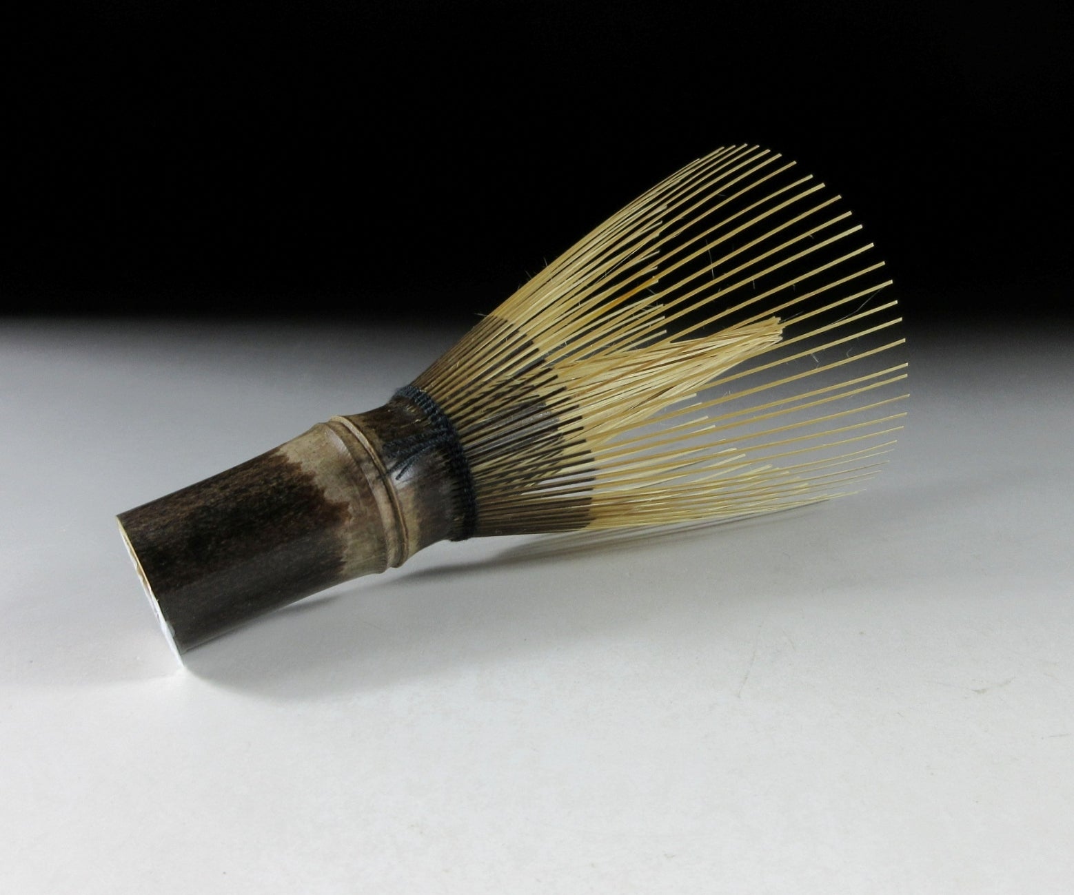 This listing is for a Takayama brand chasen made by Nakata Kizo in Nara Prefecture. It is made of black bamboo and is a tea whisk used by the Mushakoji Senke Kankyuan School, and it’s intended for preparing thin tea. Please note that chasen sold in paper boxes are firmly attached to one end, you need to very carefully but firmly remove it before use. Some of the paper will be stuck on the bottom of the chasen, it can be easily removed after a short soak in warm water. *The Mushakoji Senke Kankyuan school of tea was founded by Ichio Soshu, the second son of grand tea master, Sen no Sotan (1578-1658). Sen no Sotan was Sen no Rikyu’s grandson.