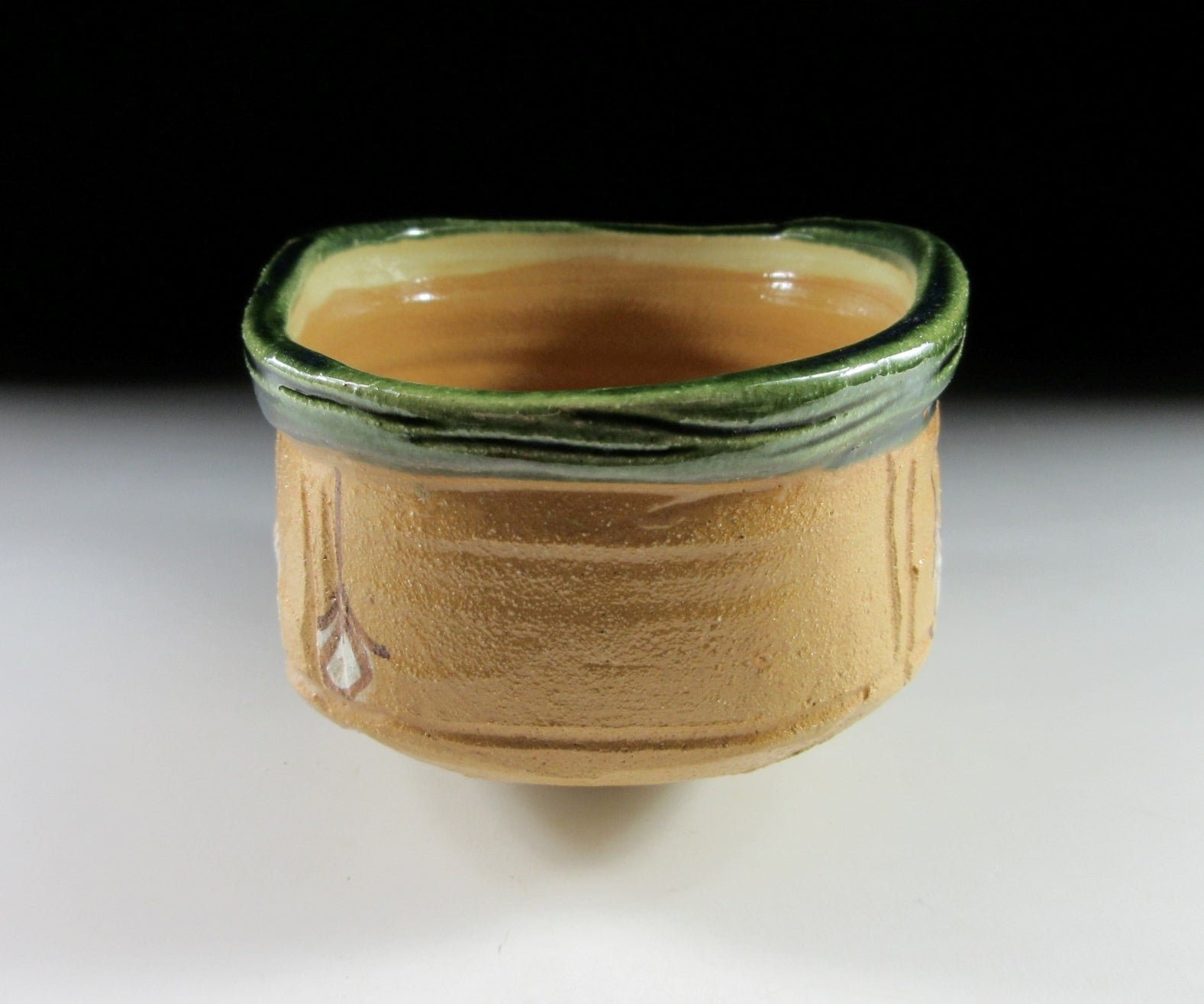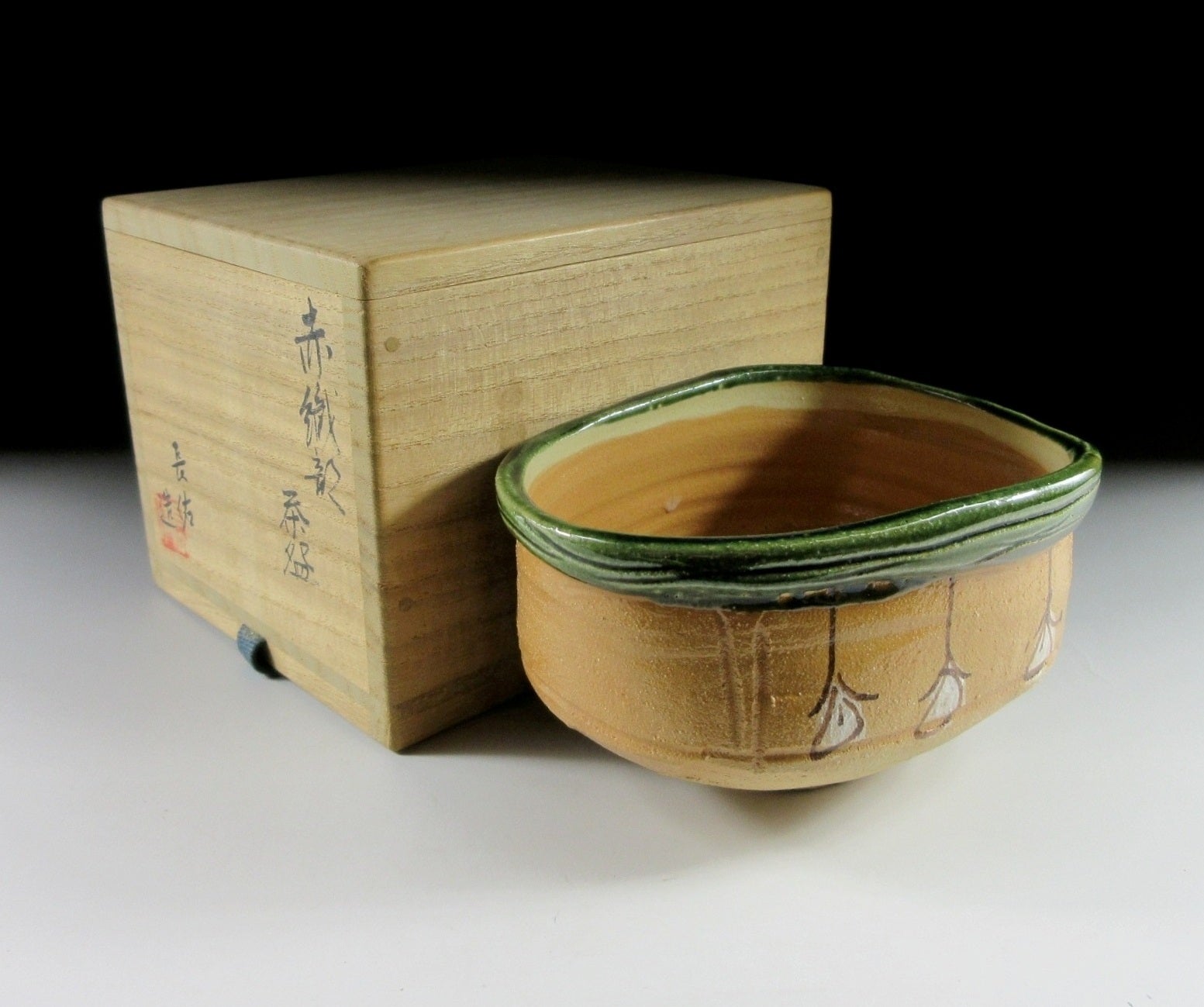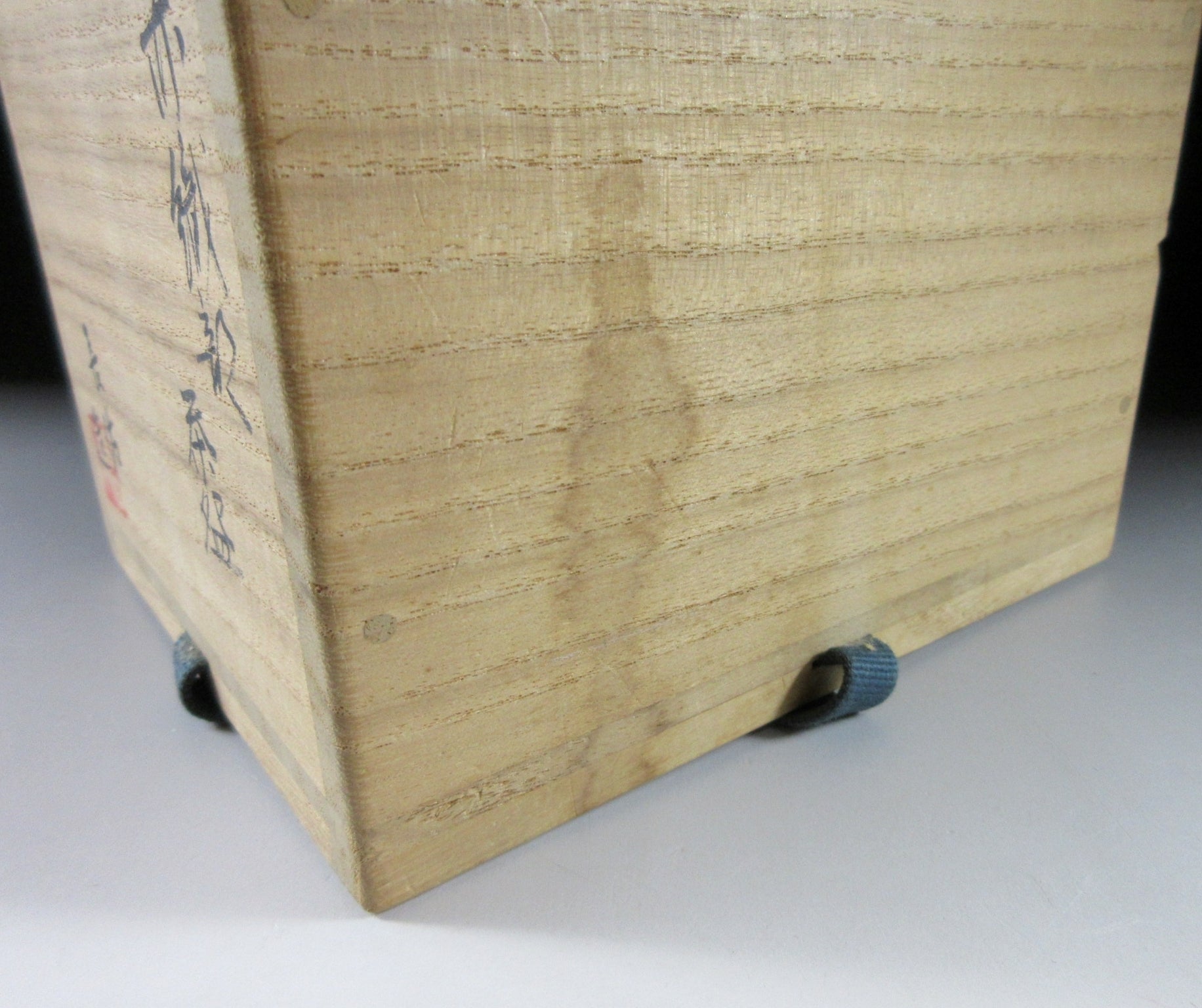 Narumi Choyu (b.1945 Ando Hirohide) is a Seto-ware potter born and raised in Aichi Prefecture. Narumi has devoted himself to making Seto teaware, and has unparalleled skill in reproducing old Seto tea pieces once used by tea masters such as Sen no Rikyu. He also produces beautifully glazed chaire, but his specialty is his Narumi Oribe glazed kutsu-gata chawan. Narumi has held many solo exhibitions across Japan, and his work can be found in museums throughout Aichi and Gifu prefecture. **Fellow sellers, this information was researched by Kominka Zakka and CANNOT be used in your own listings.