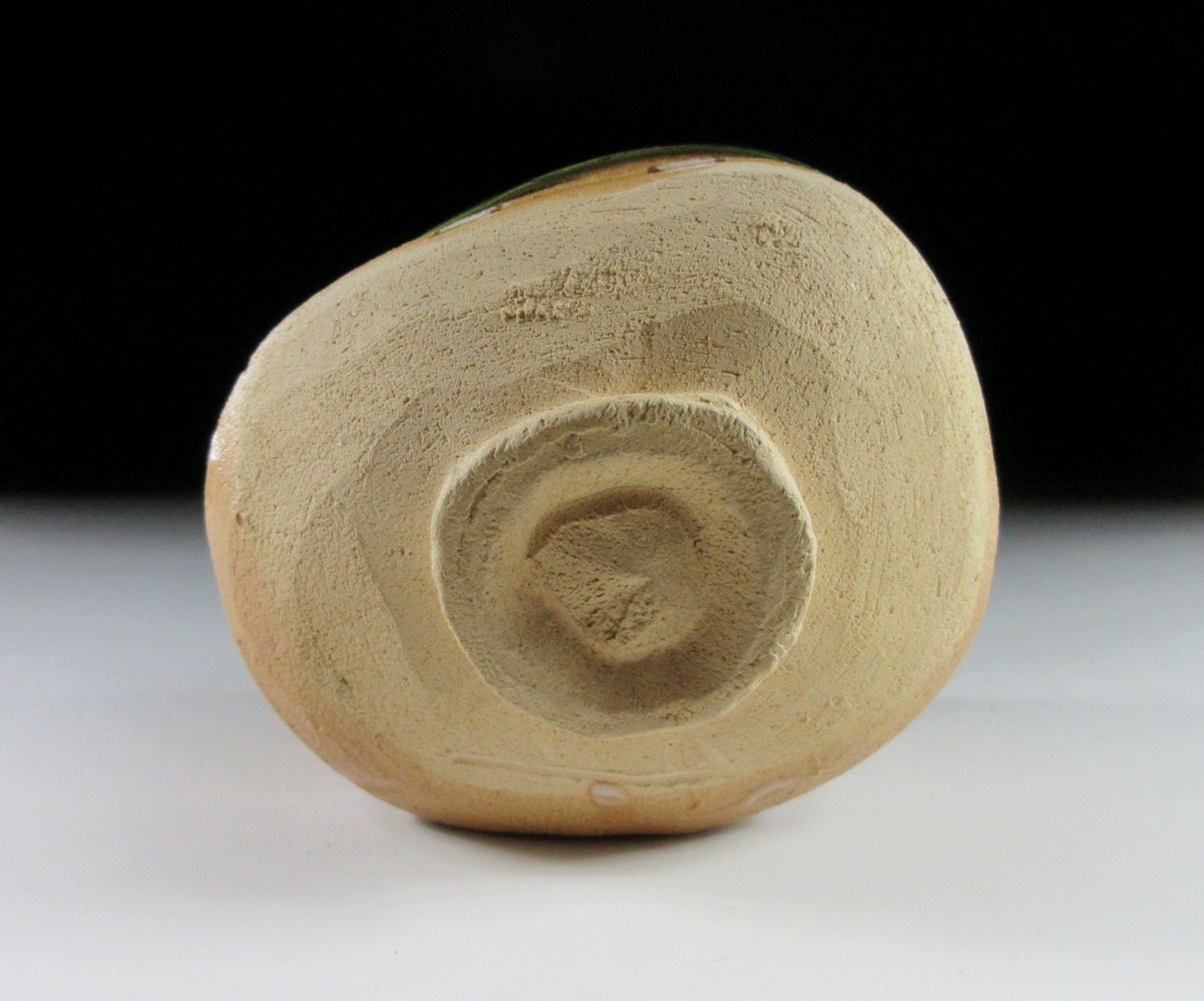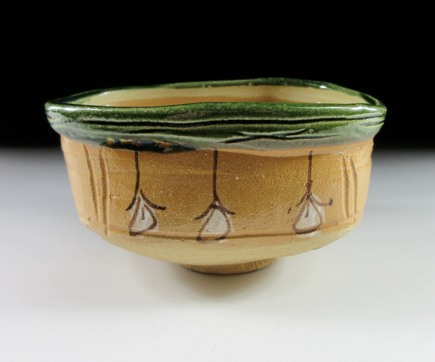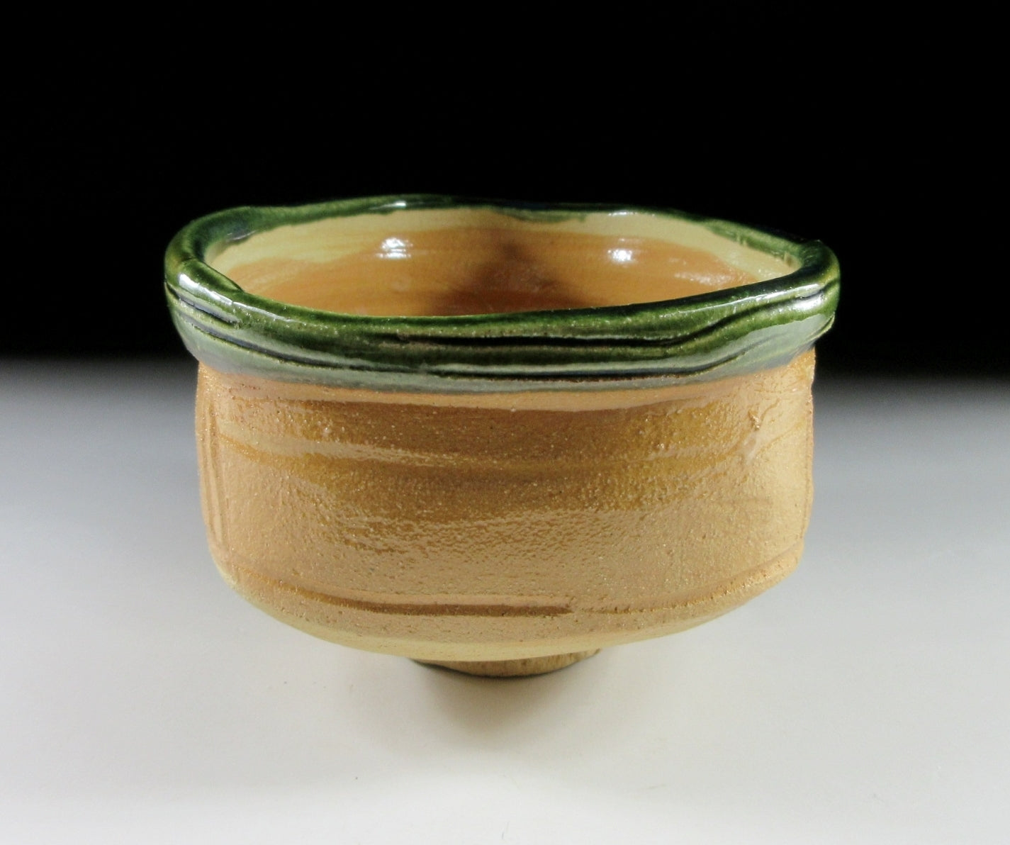 Narumi Choyu (b.1945 Ando Hirohide) is a Seto-ware potter born and raised in Aichi Prefecture. Narumi has devoted himself to making Seto teaware, and has unparalleled skill in reproducing old Seto tea pieces once used by tea masters such as Sen no Rikyu. He also produces beautifully glazed chaire, but his specialty is his Narumi Oribe glazed kutsu-gata chawan. Narumi has held many solo exhibitions across Japan, and his work can be found in museums throughout Aichi and Gifu prefecture. **Fellow sellers, this information was researched by Kominka Zakka and CANNOT be used in your own listings.
