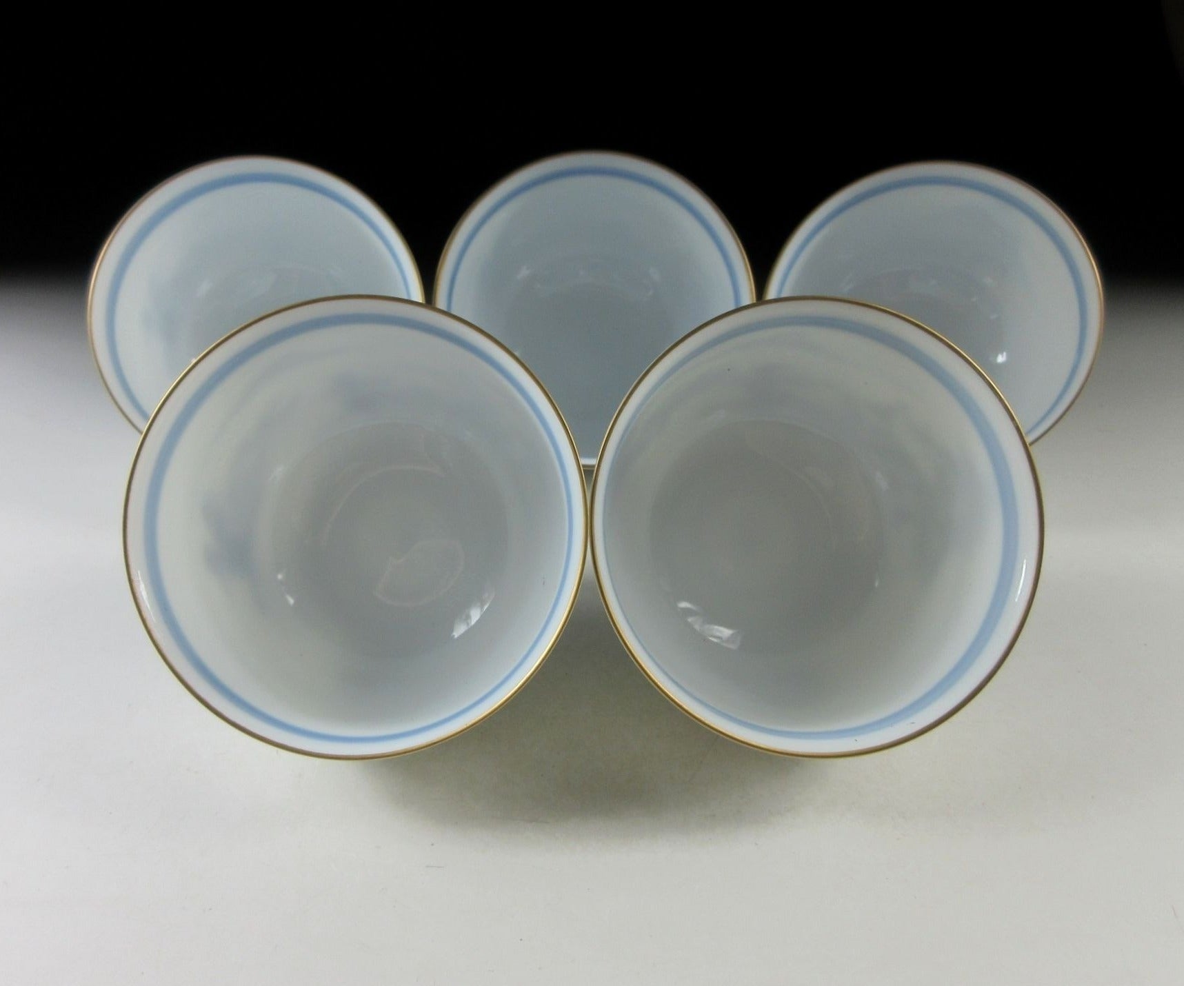 All five cups are in very good condition with no chips or cracks.