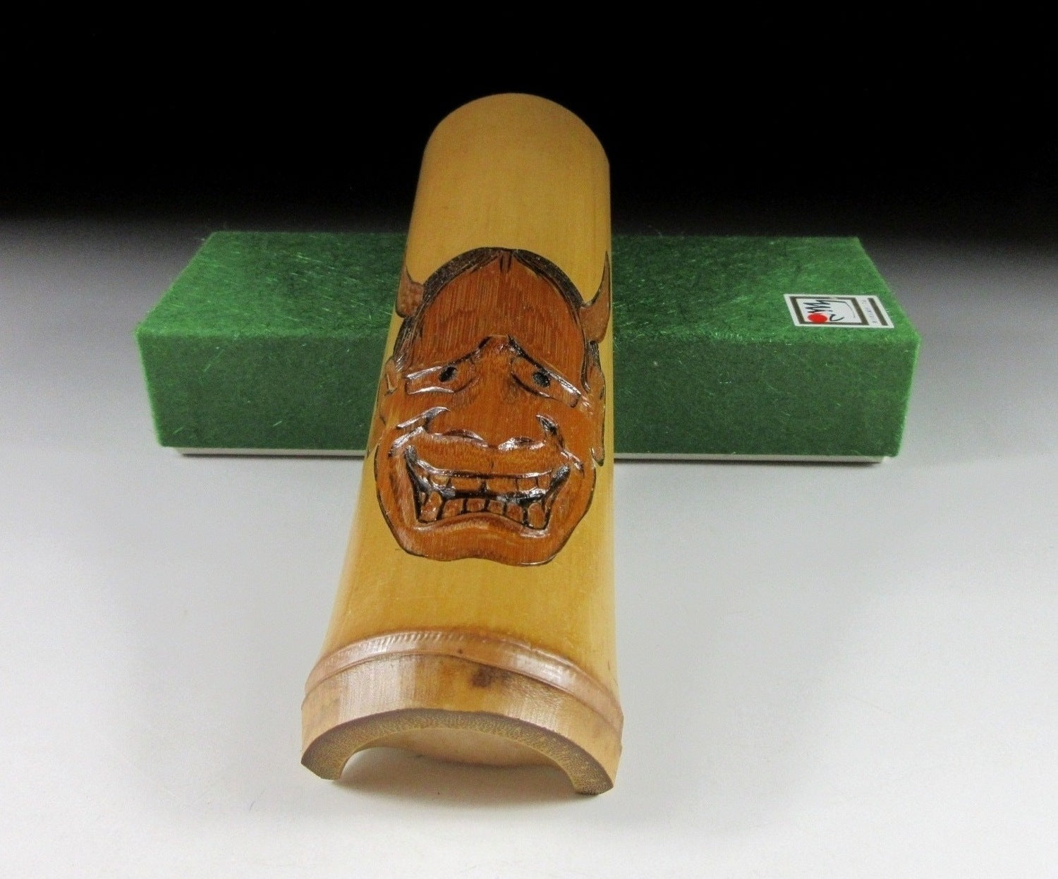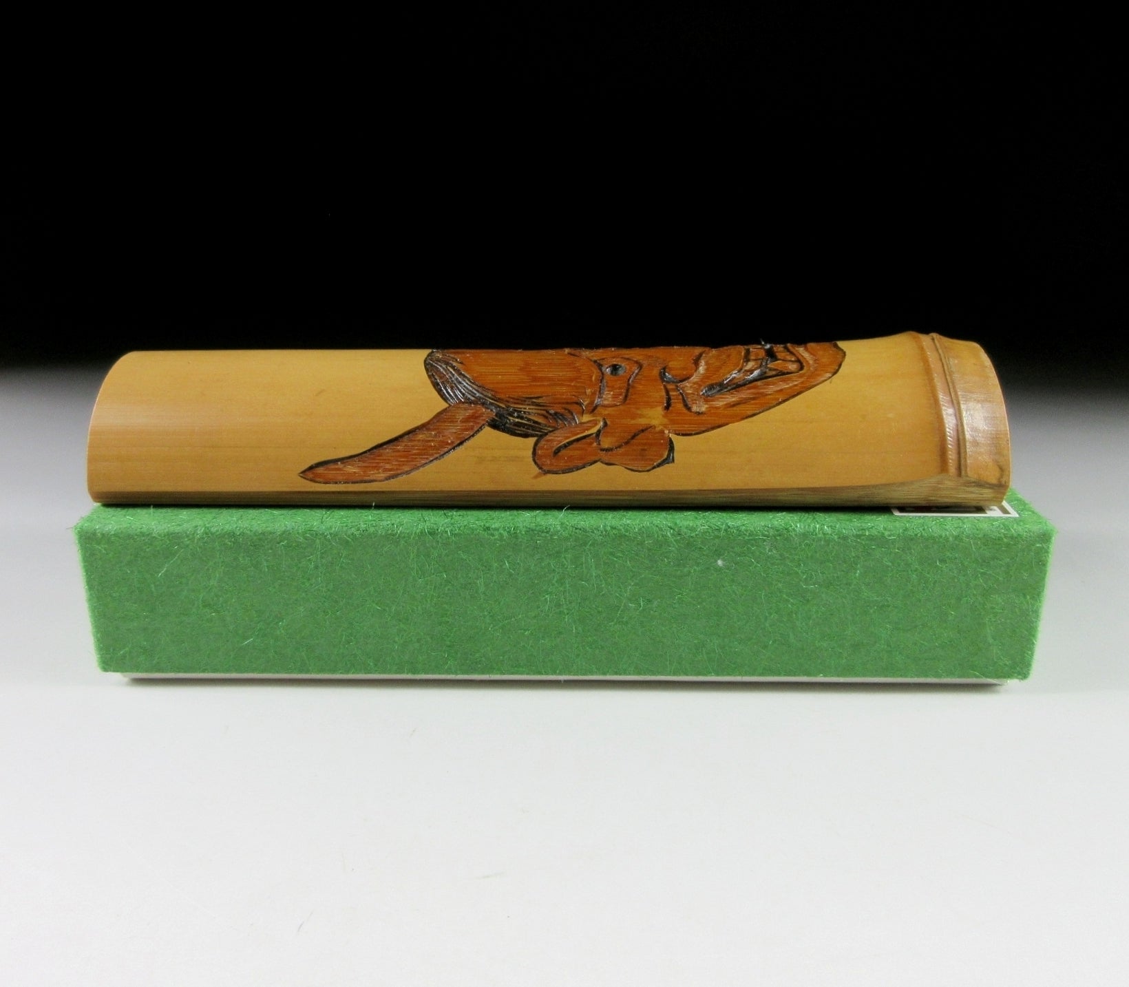 Sanuki take-ittobori refers to a method of bamboo carving from Kagawa Prefecture on the island of Shikoku. It originated in China and has been widely practiced in Japan since the Nara period. Kagawa is also home to Sanuki-bori wood carving. This type is somewhat different, pieces are coated in lacquer and usually decorated with carved, hand-painted designs. Sanuki carvers make a lot of larger, more functional pieces such as trays, chabitsu, bowls etc. whereas ittobori carvers tend to make small ornaments and figurines. **Fellow sellers, this information was researched by Koedo and cannot be used in your own listings.