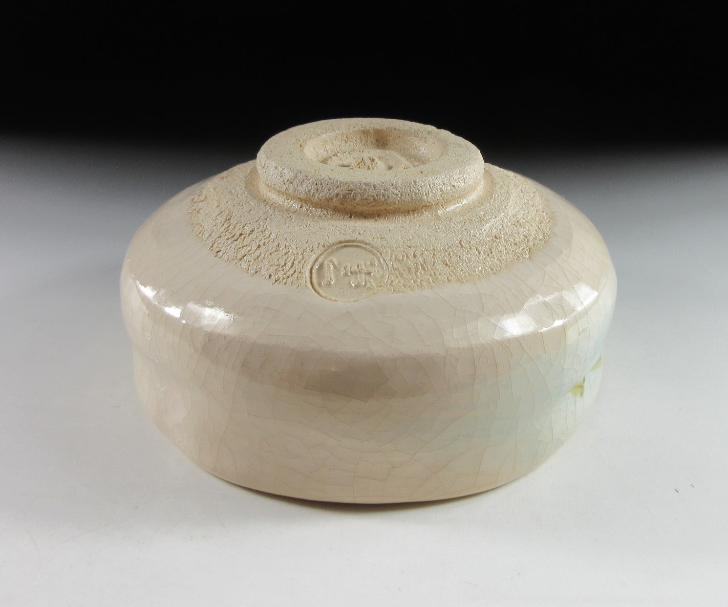 Nishimura Ichiraku (b.1951) is a Kyo-ware potter who works out of Hoen Gama in the mountainous area of Ayabe city in Kyoto Prefecture. In 1973 he began studying under Deguchi Naoe and Ono Kyugyo. In 1980 he became independent and Deguchi bestowed upon him the name ‘Ichiraku’. He is a full time member of the Kyoto Ceramic Art Association, and his teaware is highly sought after by those who belong to the school of Urasenke. **Fellow sellers, this information was researched by Kominka Zakka and CANNOT be used in your own listings.