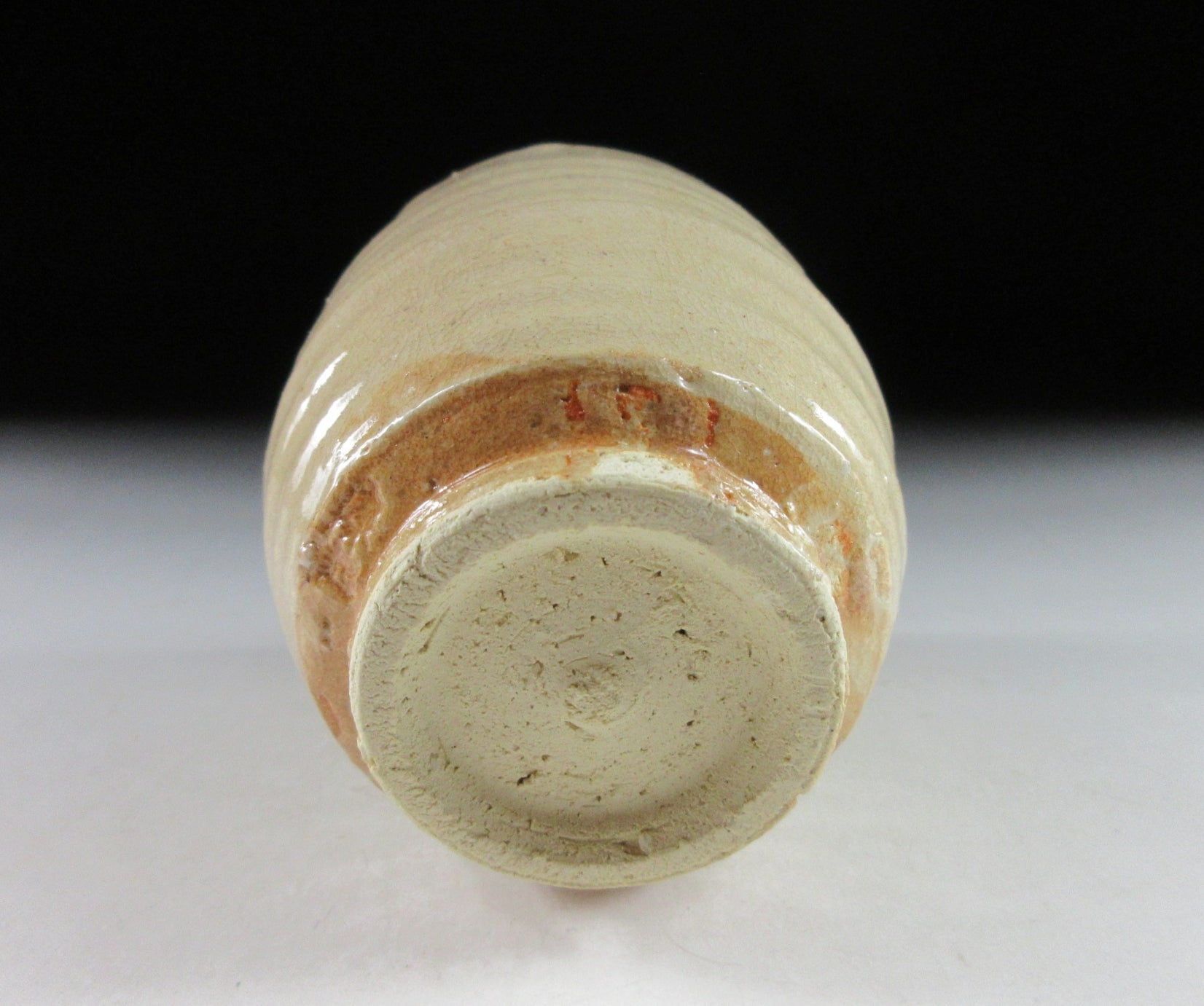 Nosaka Koki (b.1931) is a Hagi-ware potter and an Intangible Cultural Property of Yamaguchi Prefecture. In 1949 he graduated from the Mie Prefecture Ceramic Institute and then entered the local training institute in Taijimi, Gifu Prefecture. There he met legendary Arakawa Toyozo, and he was invited to study at Arakawa’s Suigetsu kiln. In 1953 he participated as an assistant in the establishment of Otani Ceramics Research Institute in Toki City, Gifu. In 1958 was adopted into the Nosaka family in Yamaguchi Prefecture, and joined the family kiln. In the same year he won two prizes at the Yamaguchi Prefecture Art Exhibition. In 1971 he won the Yamaguchi Prefecture Art and Culture Promotion Encouragement Prize, and in 1972 he was appointed a jury at the Yamaguchi Prefecture Art Exhibition. In 1984 he won a prize at the Yamaguchi Branch Exhibition of the Japan Art and Crafts Council. In 1990 he became a full time member of the Japan Arts Crafts Association, and in 1991 he received the Yamaguchi Prefecture Governor’s Award for Artistic Cultural Achievement. In 1997 he was awarded the 20th Anniversary Commemoration Grand Prize at the Yamaguchi Branch of the Japan Art and Crafts Exhibition, and in 2000 he won the NHK Award at the same exhibition. In 2002 he was designated as an Intangible Cultural Asset of Yamaguchi Prefecture, and in 2005 he was the Chugoku Region Cultural Award Winner. **Fellow sellers, this information was researched by Kominka Zakka and CANNOT be used in your own listings.