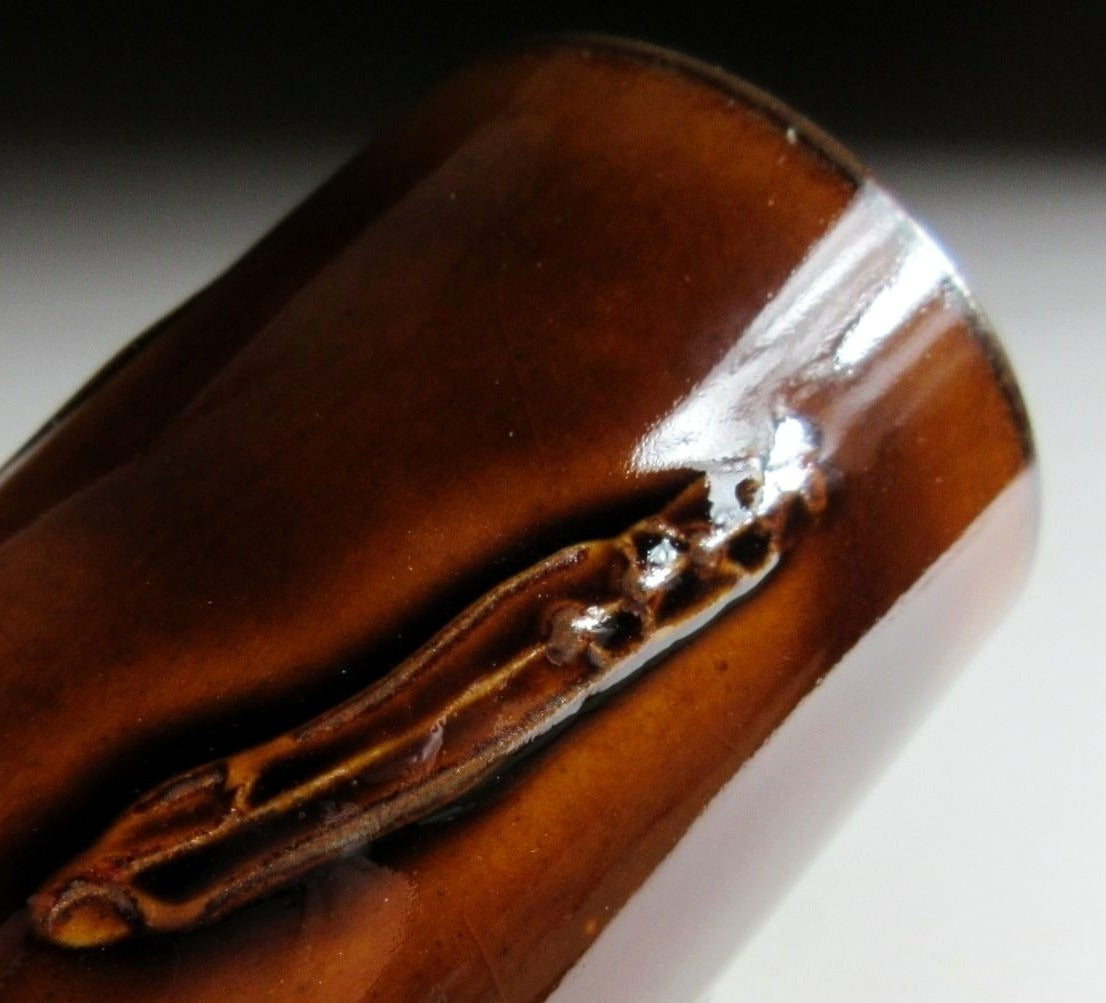 Ohi-ware refers to pottery made in Ohi town in Kanazawa Prefecture. It is made of soft clay and fired at low temperatures, and features what is known as an ame-yu glaze. Ohi-ware’s ame-yu glaze is an amber or caramel coloured glaze with a glossy finish. Ohi-ware is generally shaped by hand and fired in a way not so different from Raku-ware. The temperature is increased sharply over a short period of time, and the piece is removed from the kiln whilst the glaze is still melting. This causes the piece to cool down rapidly, thus creating the beautiful rich colour and lustre.