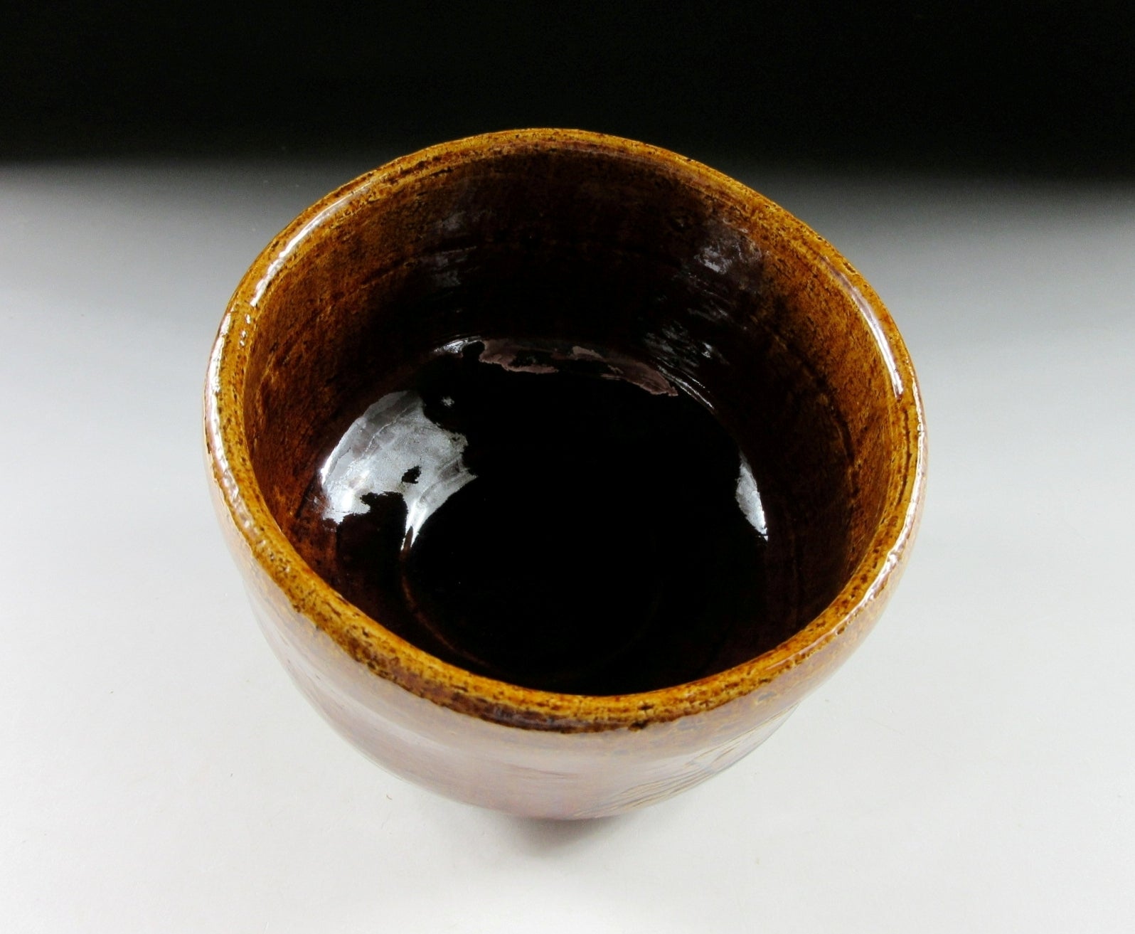 Ohi-ware refers to pottery made in Ohi town in Kanazawa Prefecture. It is made of soft clay and fired at low temperatures, and features what is known as an ame-yu glaze. Ohi-ware’s ame-yu glaze is amber or caramel coloured glaze with a glossy finish. Ohi-ware is generally shaped by hand and fired in a way not so different from Raku-ware. The temperature is increased sharply over a short period of time, and the piece is removed from the kiln whilst the glaze is still melting. This causes the piece to cool down rapidly, thus creating the beautiful rich colour and lustre.