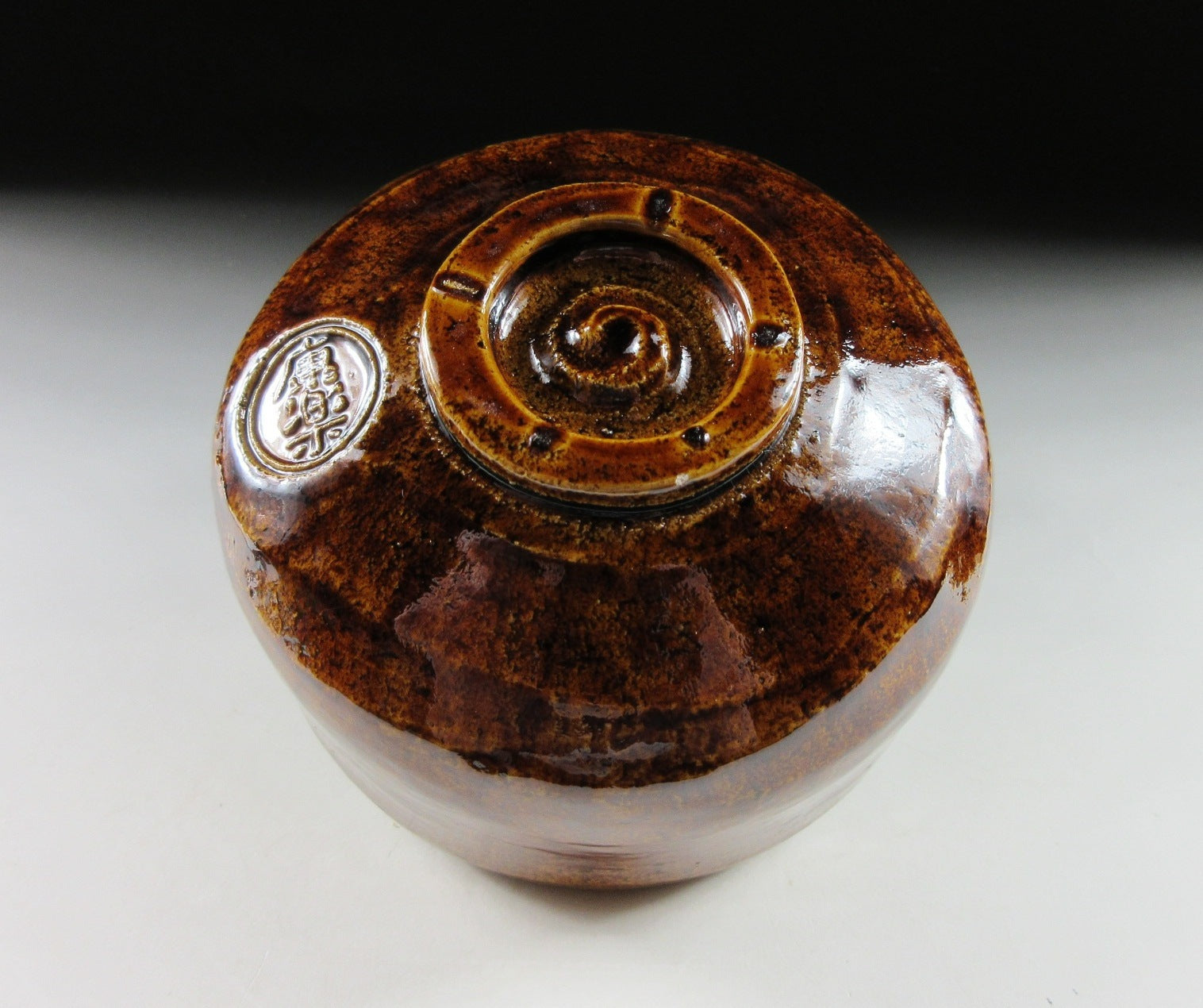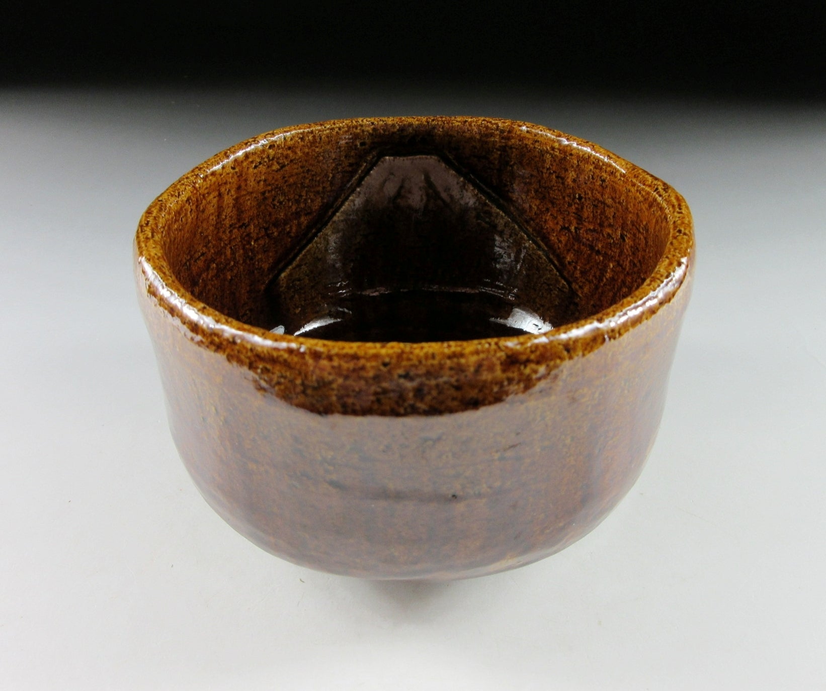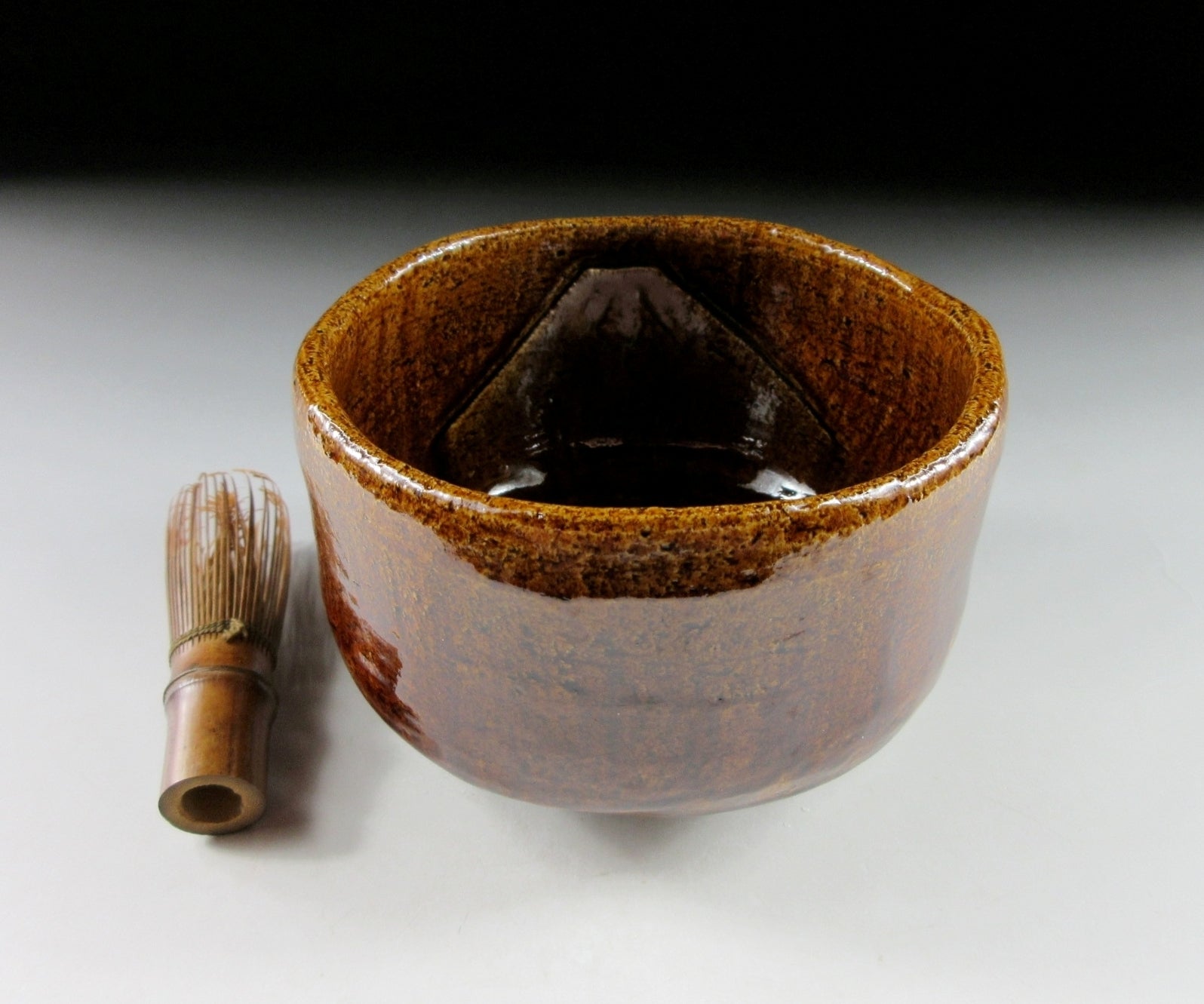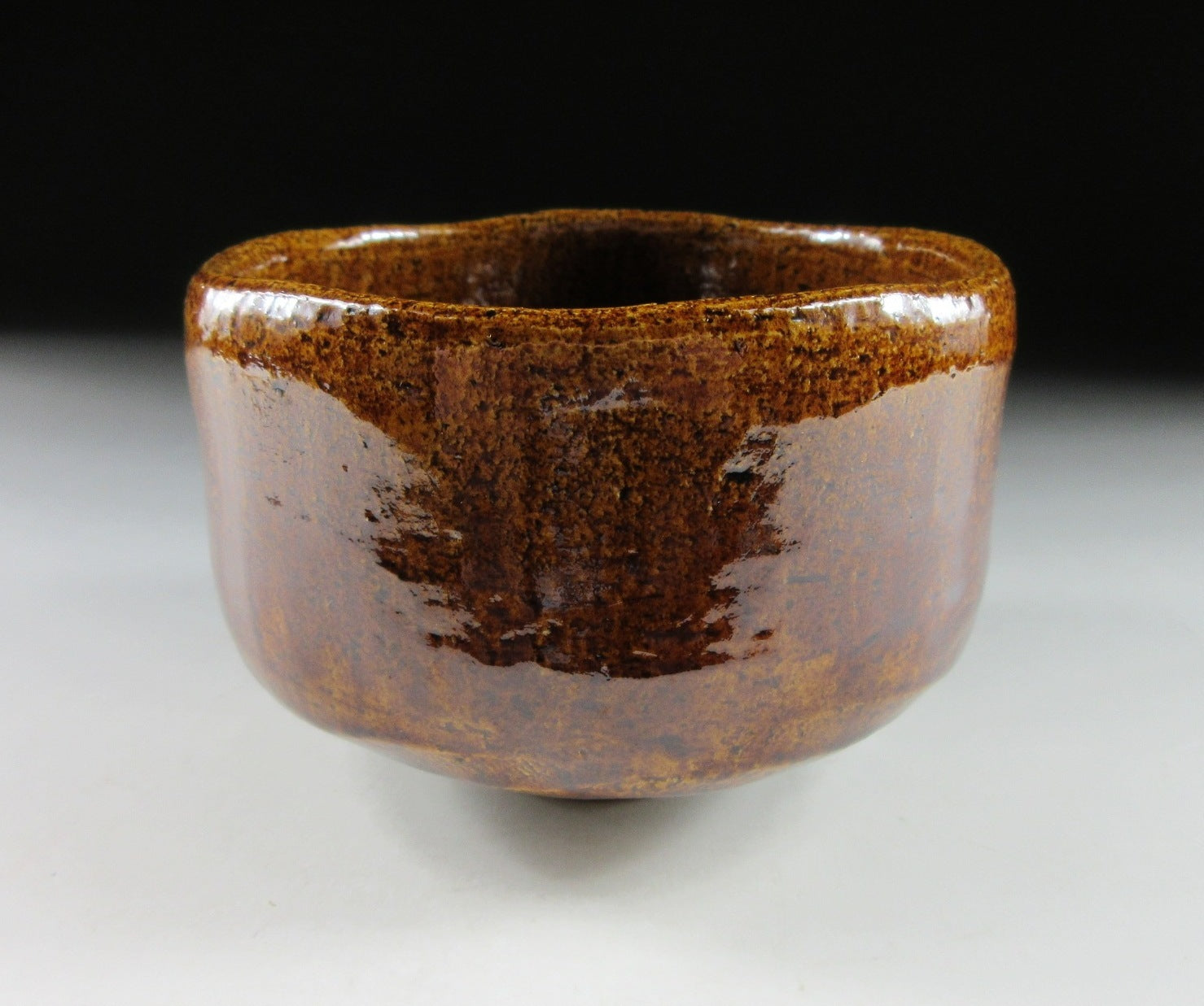 This listing is for a vintage but unused Ohi-ware chawan made by Ohi Koraku. It is hand-turned and coated in ame-yu caramel coloured glaze, and the interior is decorated with a snow capped Mt. Fuji. Mt. Fuji is a very popular motif during New Year, and is frequently used to decorate tea utensils in the hope of bringing year round fortune. This is a wonderful piece for the cooler months, the glossiness of the glazed interior compliments the bright green colour of matcha perfectly. The stamp of the potter can be found on the bottom, very sorry but there’s no box for this one. *PLEASE NOTE THAT THE CHASEN TEA WHISK IS NOT INCLUDED.