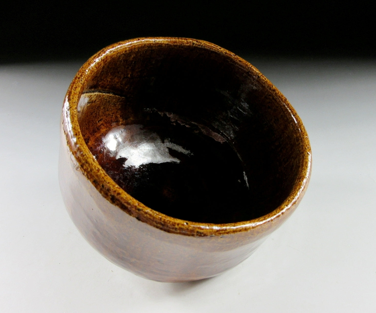 Ohi-ware refers to pottery made in Ohi town in Kanazawa Prefecture. It is made of soft clay and fired at low temperatures, and features what is known as an ame-yu glaze. Ohi-ware’s ame-yu glaze is amber or caramel coloured glaze with a glossy finish. Ohi-ware is generally shaped by hand and fired in a way not so different from Raku-ware. The temperature is increased sharply over a short period of time, and the piece is removed from the kiln whilst the glaze is still melting. This causes the piece to cool down rapidly, thus creating the beautiful rich colour and lustre.