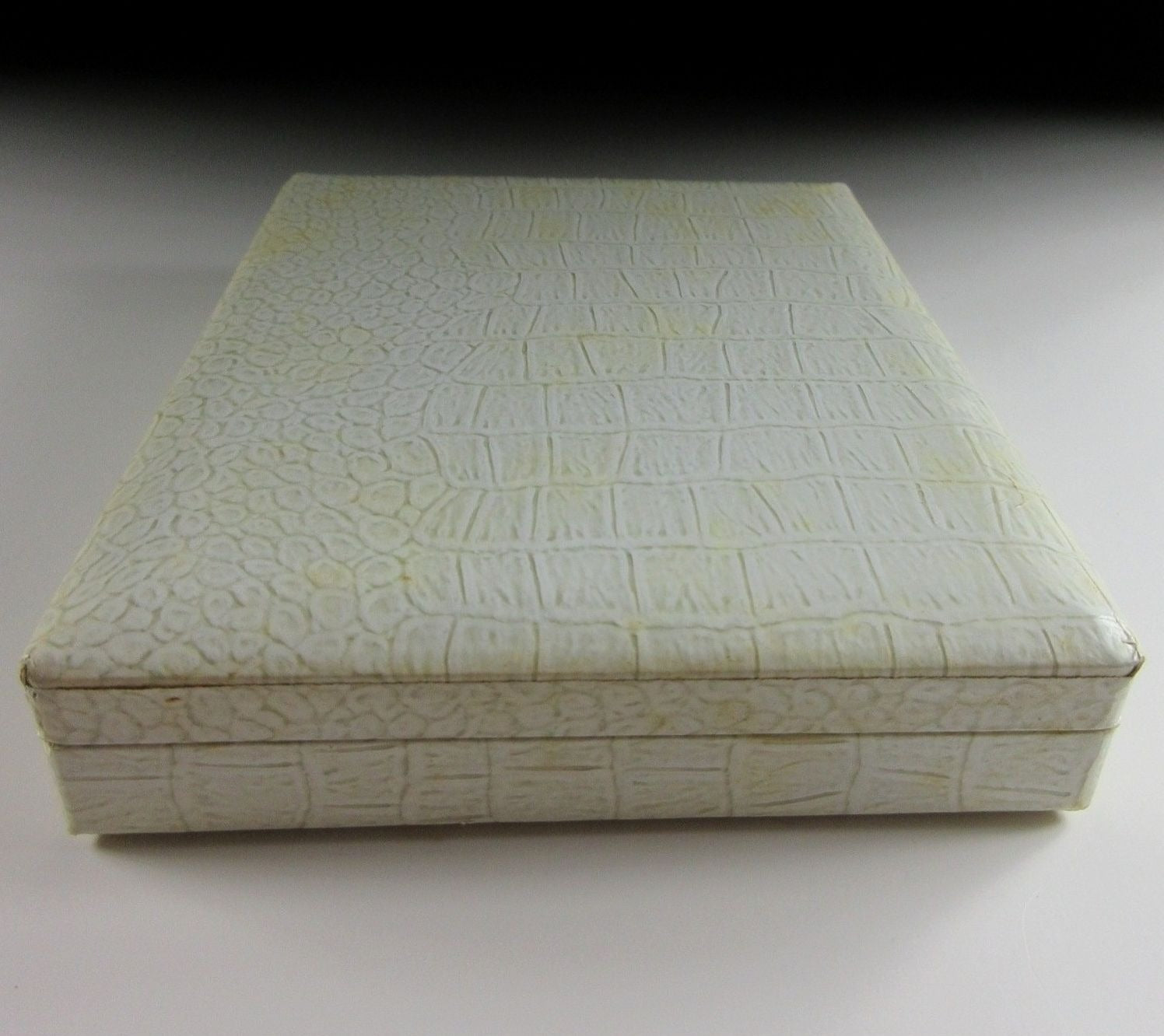 There are marks and age spots on the interior and exterior of the box, and both items need polishing, particularly the fork.