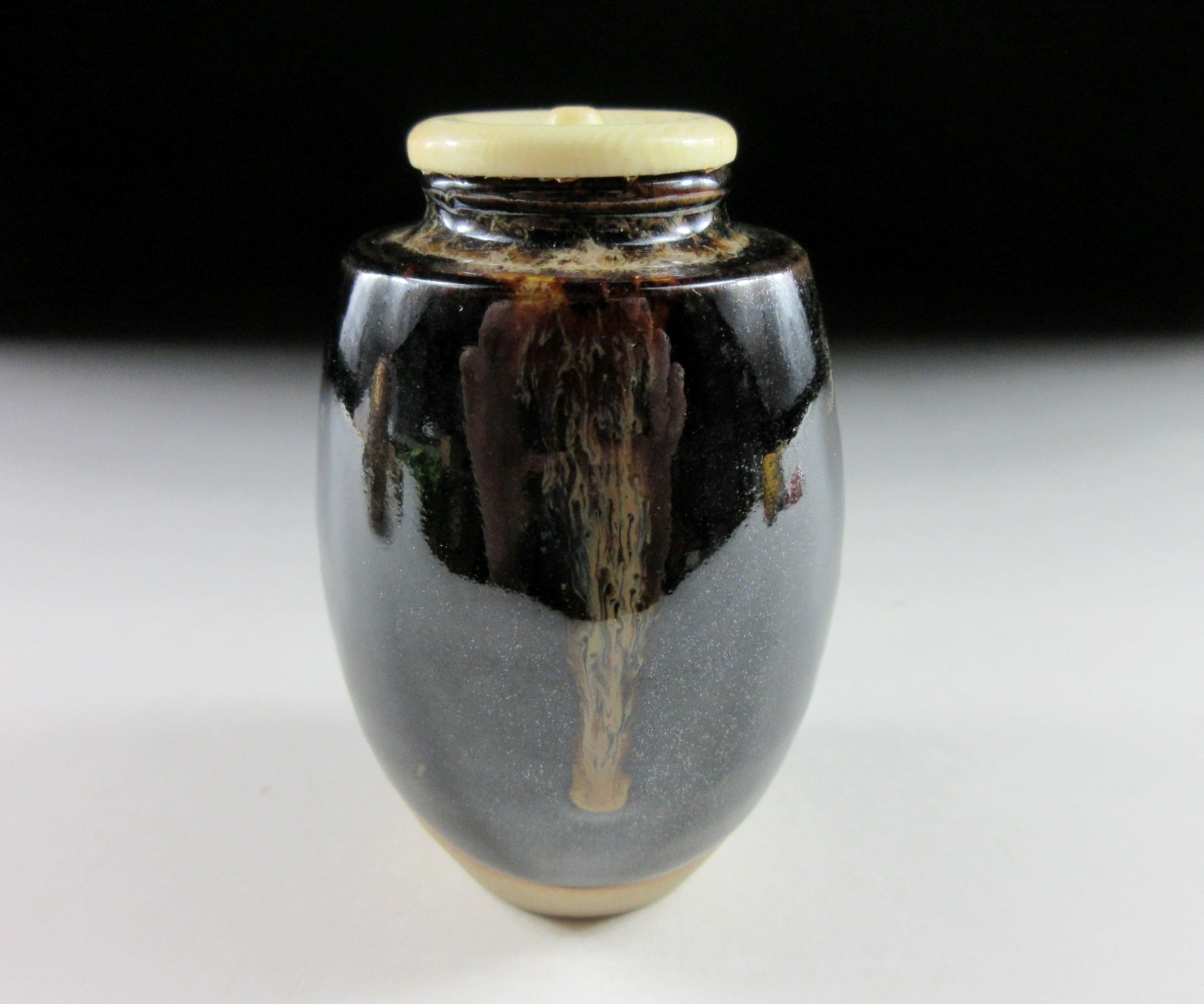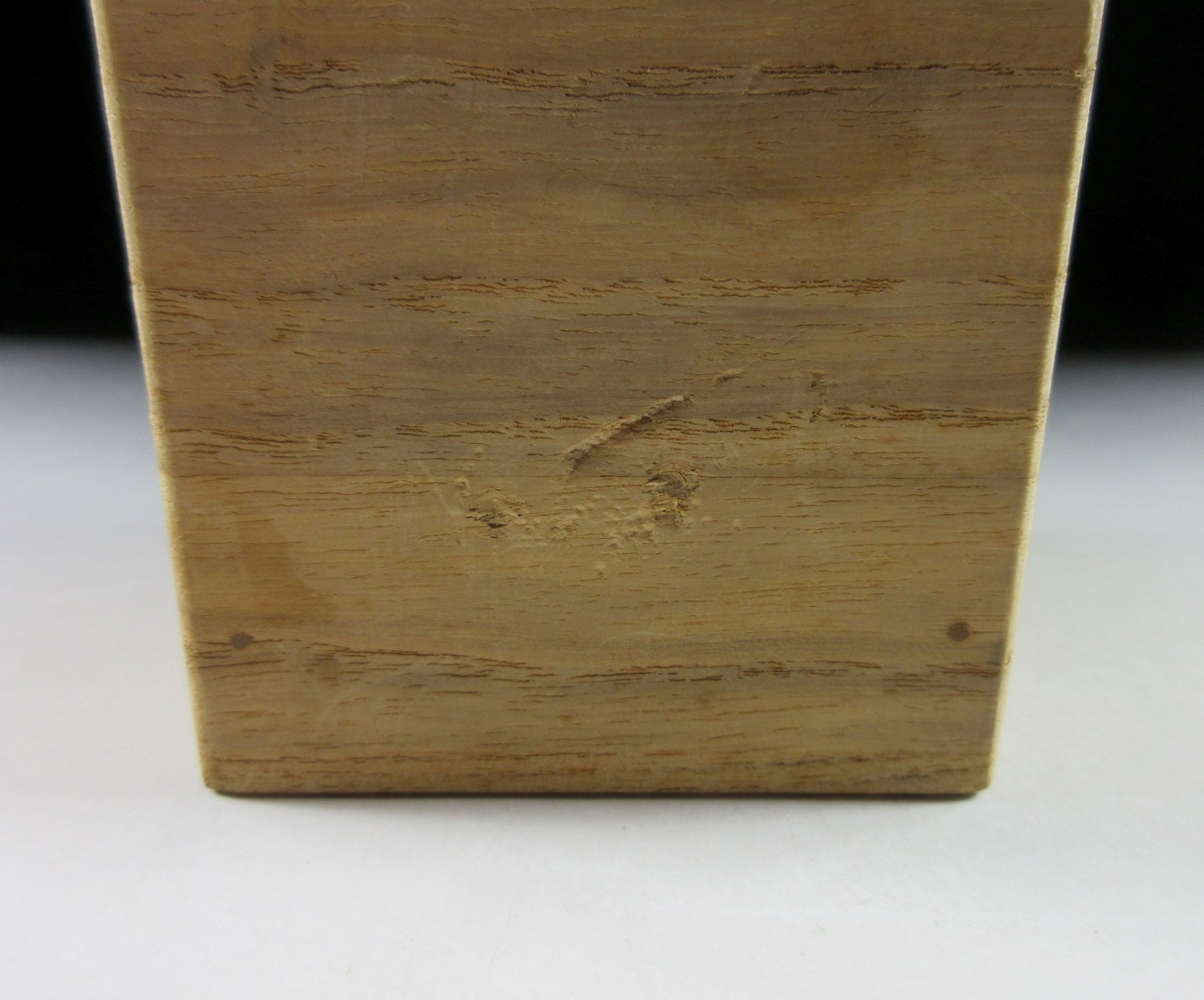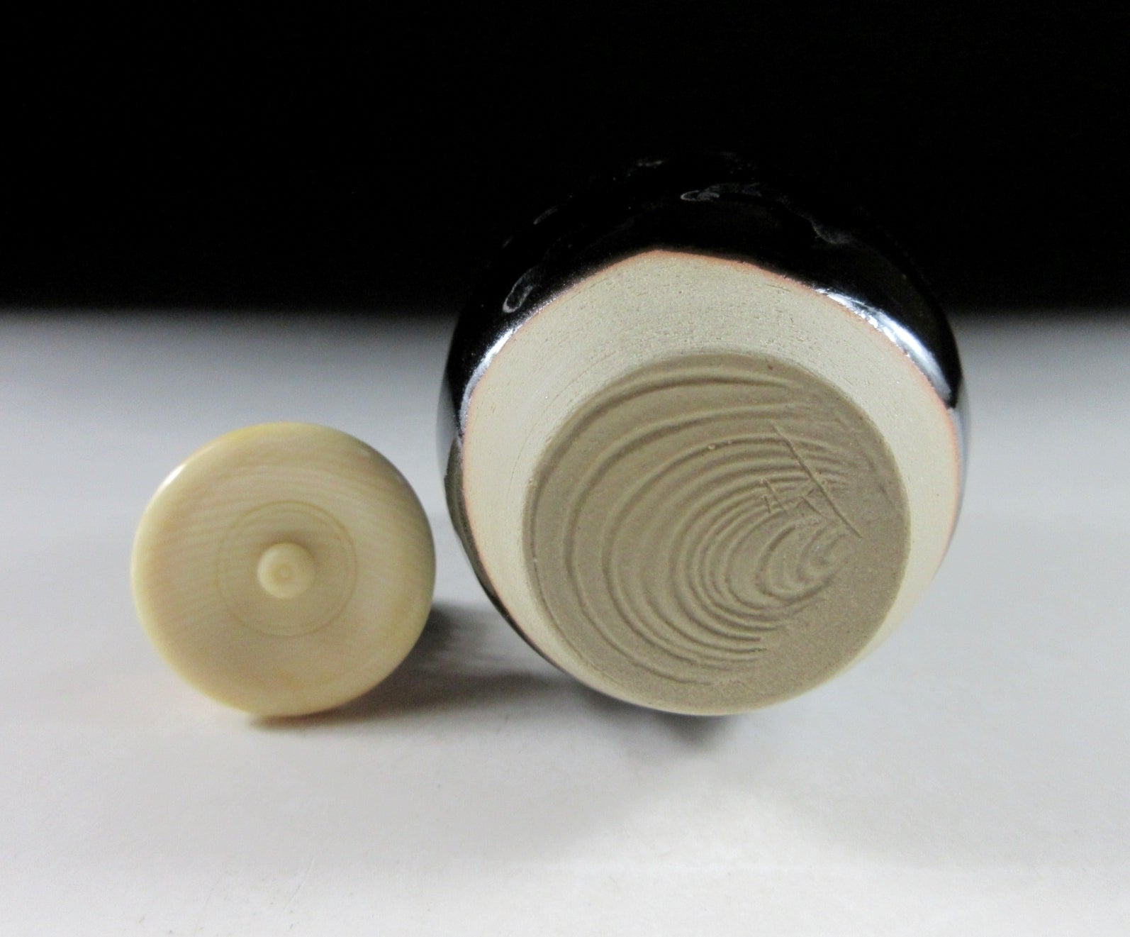 Oketani Teiichi II (b. Hiroshi 1935) is a Kyo-ware potter and son of tenmoku glaze master, Oketani Teiichi I (Sadakazu). In 1955 he graduated from the ceramics department of Fushimi Industrial High School and began studying under his father. During his career he has won several awards at some of the most prestigious exhibitions in the country. He received the Silver Medal Award at the Kyoto Craft Exhibition, and an honorary Blue Ribbon award at the Kyoto Art and Crafts Exhibition. He has received several awards at the Kyoto Art Exhibition, as well as several at various craft exhibitions in Kyoto. His work has been selected numerous times for the Kinki Region Japan Traditional Craft Exhibition, where he received ten different awards. His work has also been selected three times for the prestigious Japan Traditional Craft Exhibition. He is a member of the Japan Crafts Association, as well as the Kyoto Art and Crafts Association. Oketani is a teaware specialist and is best known for his vessels that are modelled on those that Sen no Rikyu designed and made. Seto-ware potter Matsumoto Tetsuzan is another potter who commands high prices for his chaire for the exact same reason. **Fellow sellers, this information was researched by Kominka Zakka and CANNOT be used in your own listings.