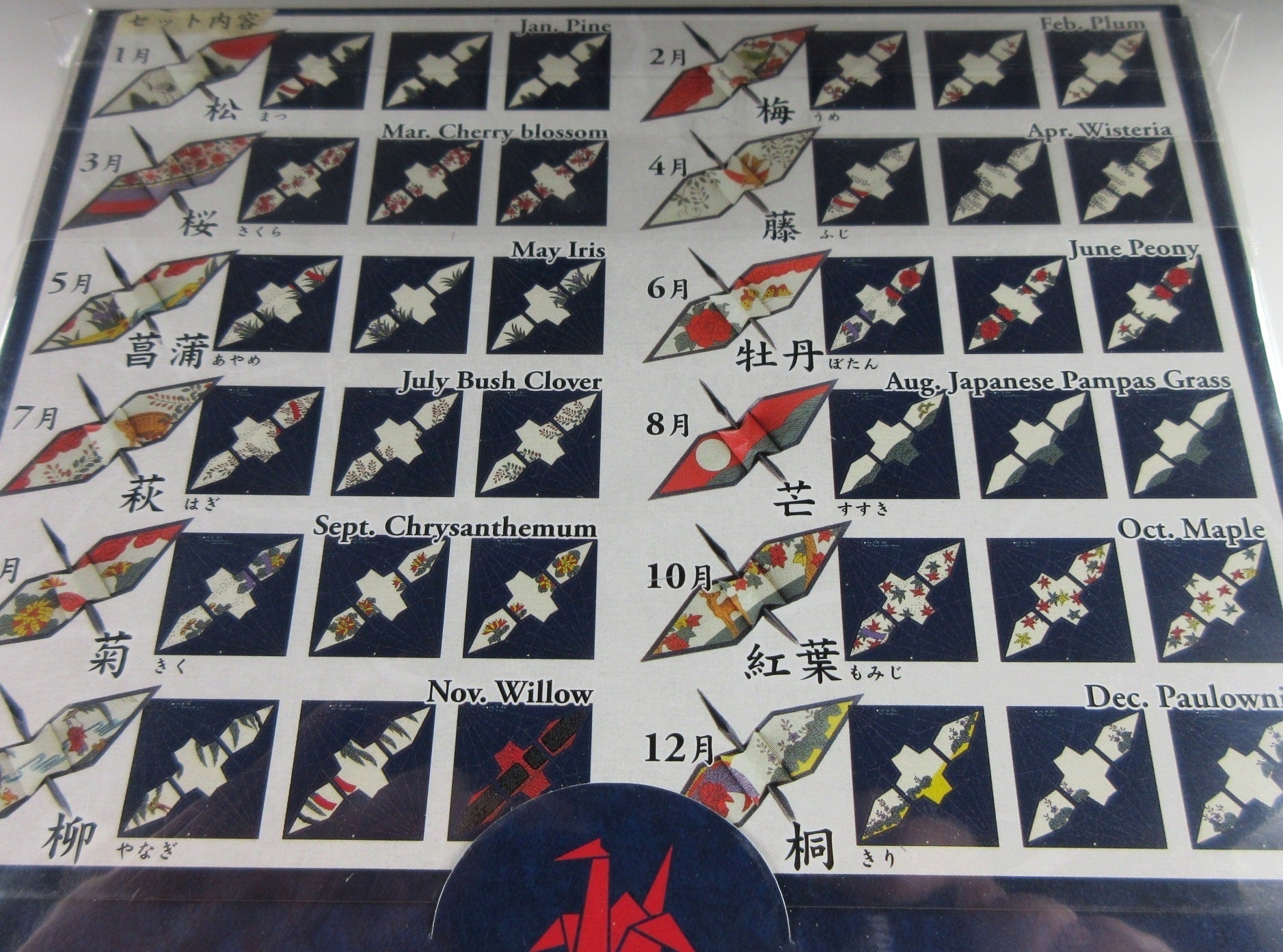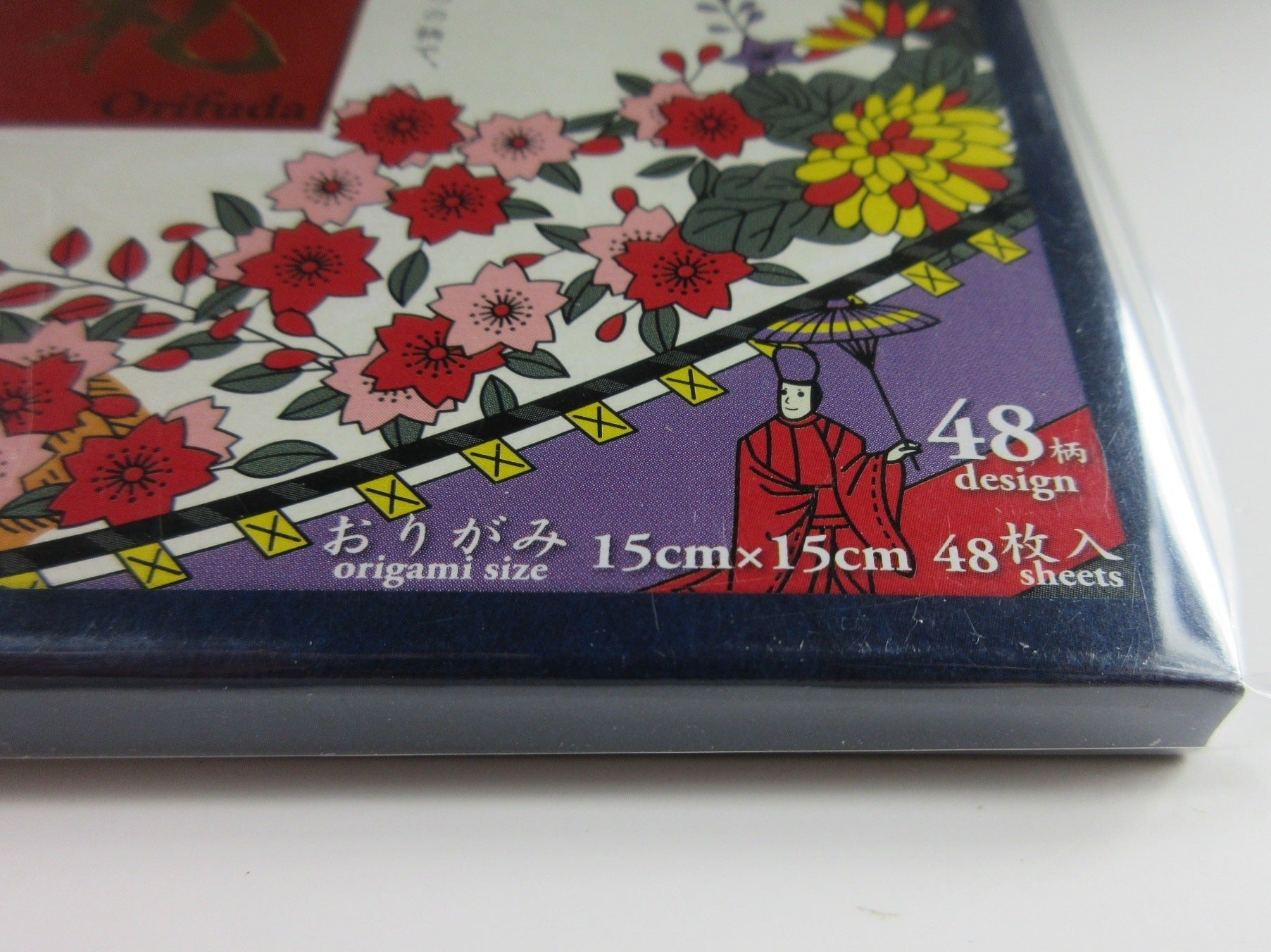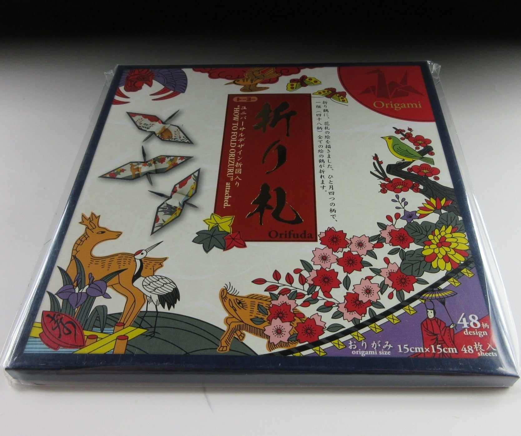 This listing is for a pack of origami paper made in Japan by Toyo Origami Co. The pack contains 48 sheets of origami paper, each sheet is 15cm (5.9”) x 15cm (5.9”). The set features ‘orifuda’, the origami version of hanafuda karuta playing cards. The set also comes with Japanese language instructions for how to fold orizuru paper cranes, it’s possible to understand the instructions without knowing how to read Japanese.