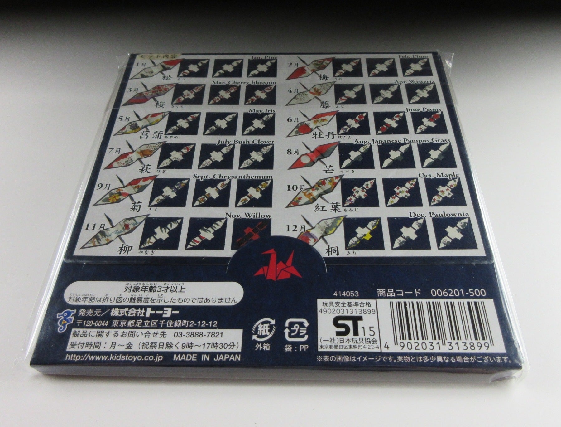Toyo Origami Co. is an origami paper factory established in 1971 in Tochigi Prefecture. Most of the work is done by hand and they currently have forty-nine employees producing various kinds of specialty paper. The process of cutting the folded paper to origami size is called dansai. At Toyo, cutting is done by hand because machines cutting causes misalignment and produces defective products with uneven corners. Toyo is one of the more popular brands in Japan because of its specialty patterns and designs, and they conduct tours for schoolchildren or those interested in origami. **Fellow sellers, this information was researched by Kominka Zakka and CANNOT be used in your own listings.