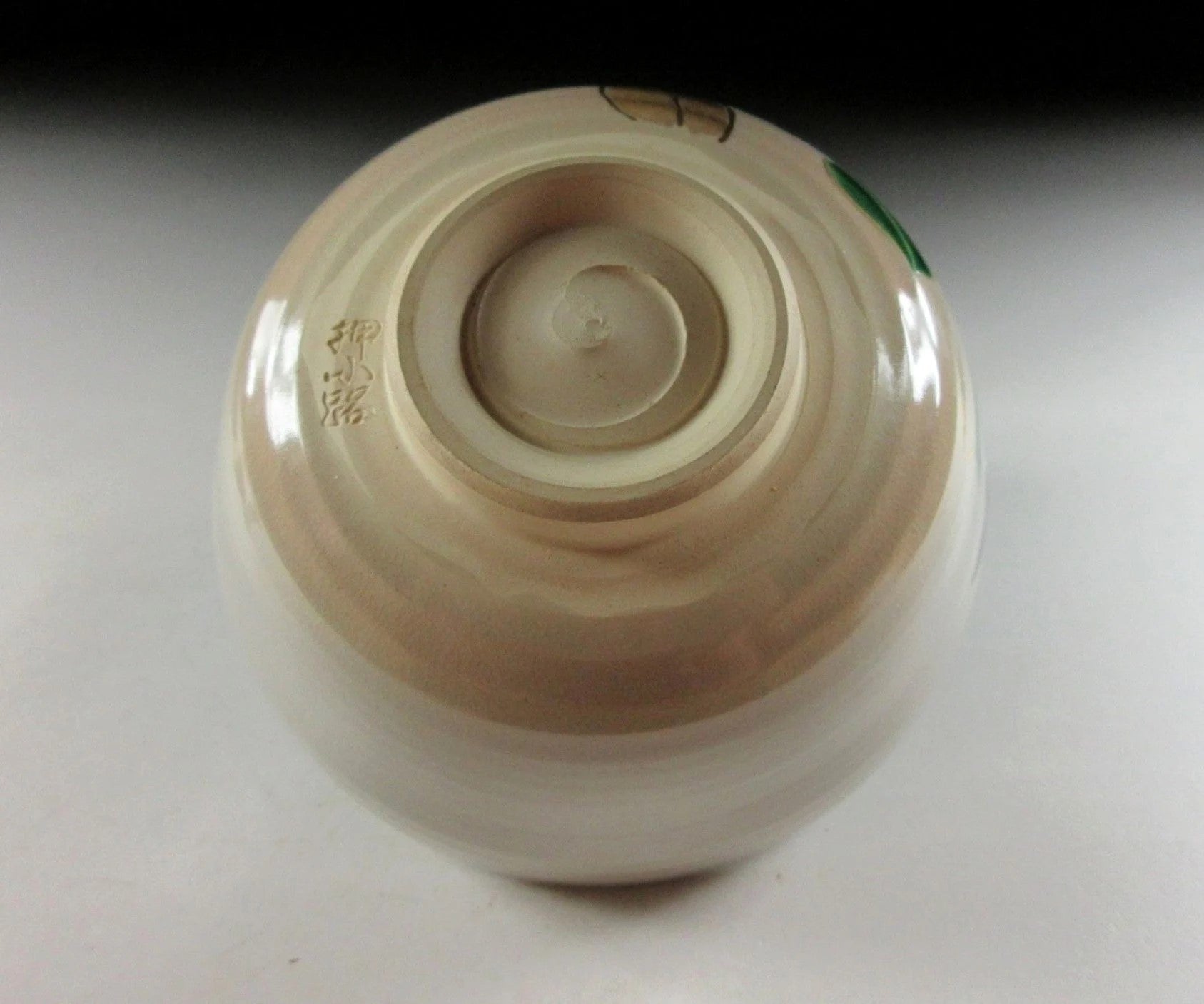 Oshikoji Gama is said to have been opened in 1624 by the founder of Awataguchi-ware, Sanmonjiya Kuemon (Awata Kuzaemon). Kuzaemon was from the Seto area of Owari Province. He produced tea utensils and served as a tea master for the shogunate since the reign of the third generation shogun, Tokugawa Iemitsu. His two sons, Shoemon and Tsukemon, had studied under Ninsei so from the opening of the kiln to the Meiwa era (1764-1772), the kiln actively produced Ninsei style works stamped ‘Oshikoji’. In addition to the works of Ninsei, Oshikoji Gama also produced underglazed sometsuke pieces and celadon works. Records also suggest that they made lead glazed Raku earthenware using technology introduced from China. The current master of Oshikoji Gama is Awata Shozaemon. He is a Ninsei specialist and primarily produces teaware, his work is entirely hand-painted using overglaze enamels and traditional glazing techniques. His motifs range from seasonal themes to more traditional patterns associated with the Urasenke school of tea. He is a member of the Kyoto Ceramics Centre Association and has participated in several exhibitions in the Kansai area. **Fellow sellers, this information was researched by Kominka Zakka and CANNOT be used in your own listings.