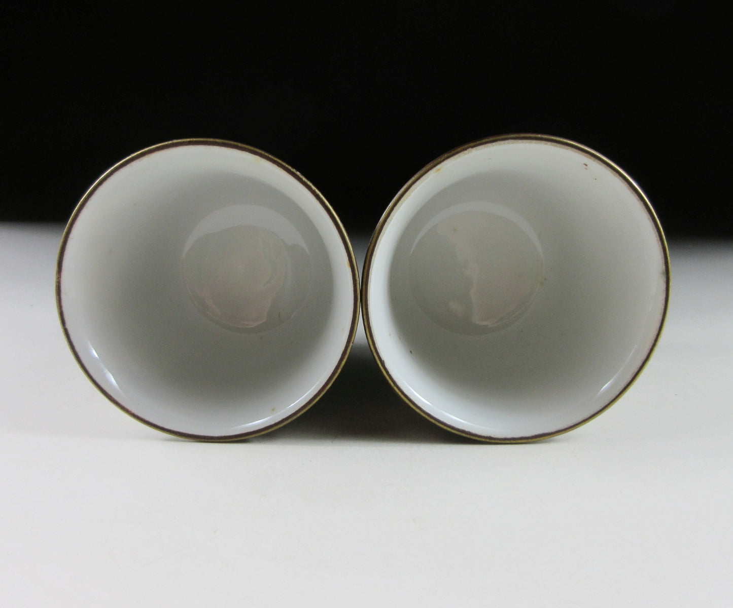 Both have glaze imperfections on the interior, minor discolouration on interior, minor glaze and surface imperfections on exterior.