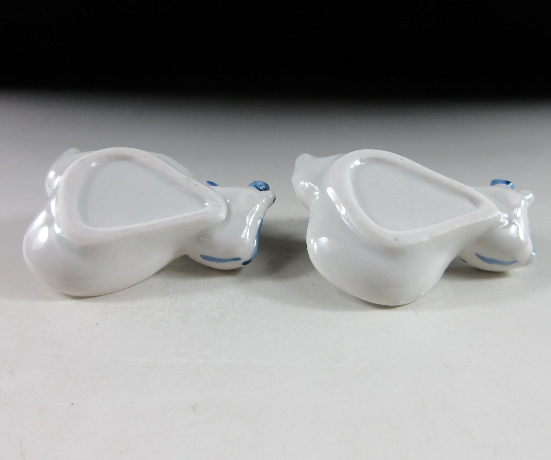 This listing is for a pair of VERY SMALL plates for serving condiments such as wasabi, sauce, soy sauce, mayonnaise etc. They are made of stoneware slip and are shaped to resemble a dragon. The head has been trimmed with blue glaze and they have a nice smooth finish. We have 2 pairs available.