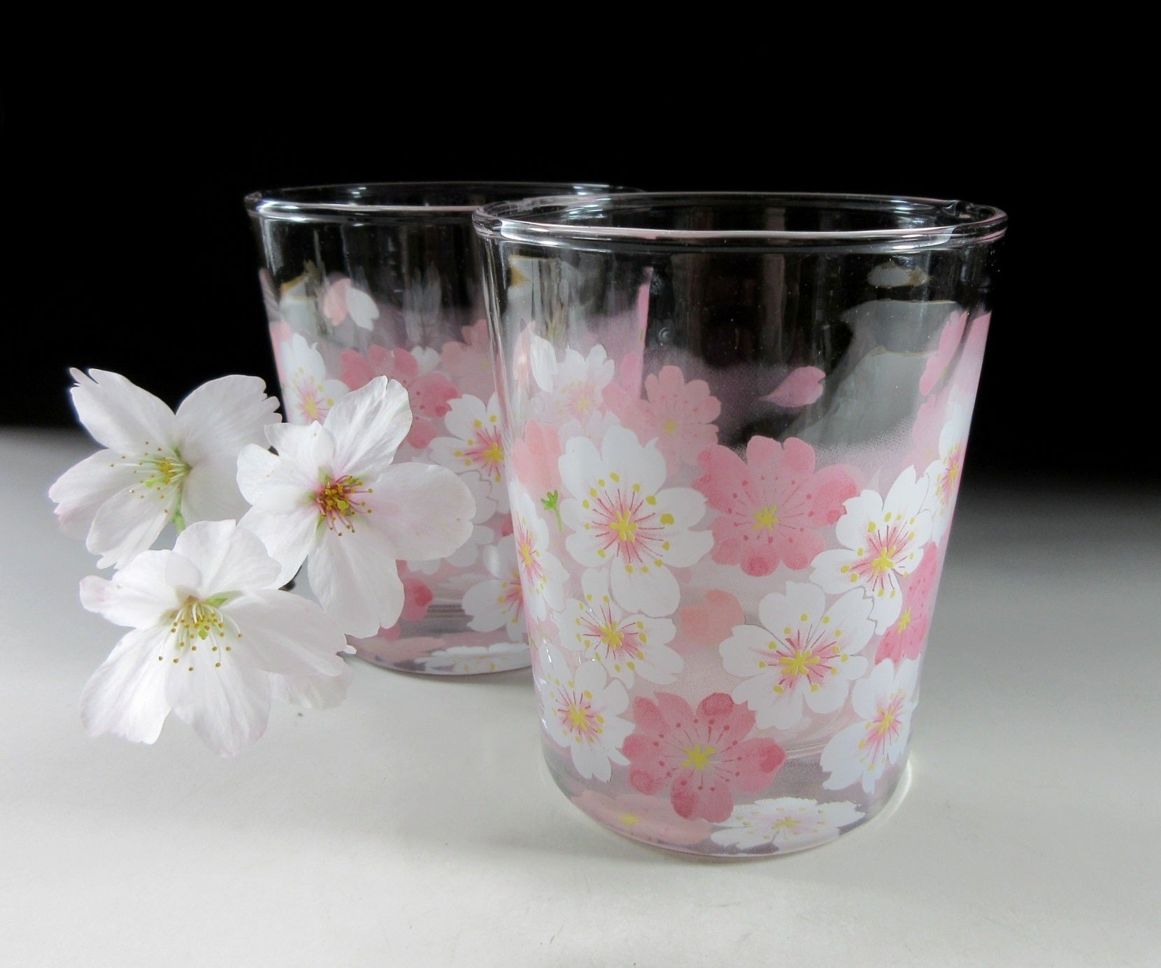 This listing is for a pair of spring season drinking glasses made around 20 years ago. Each glass is decorated with sakura cherry blossoms and they hold 200ml. Please note that these glasses are not hand-painted, the sakura are stencilled onto the exterior. They’re perfect for serving iced tea and are suitable for daily use.