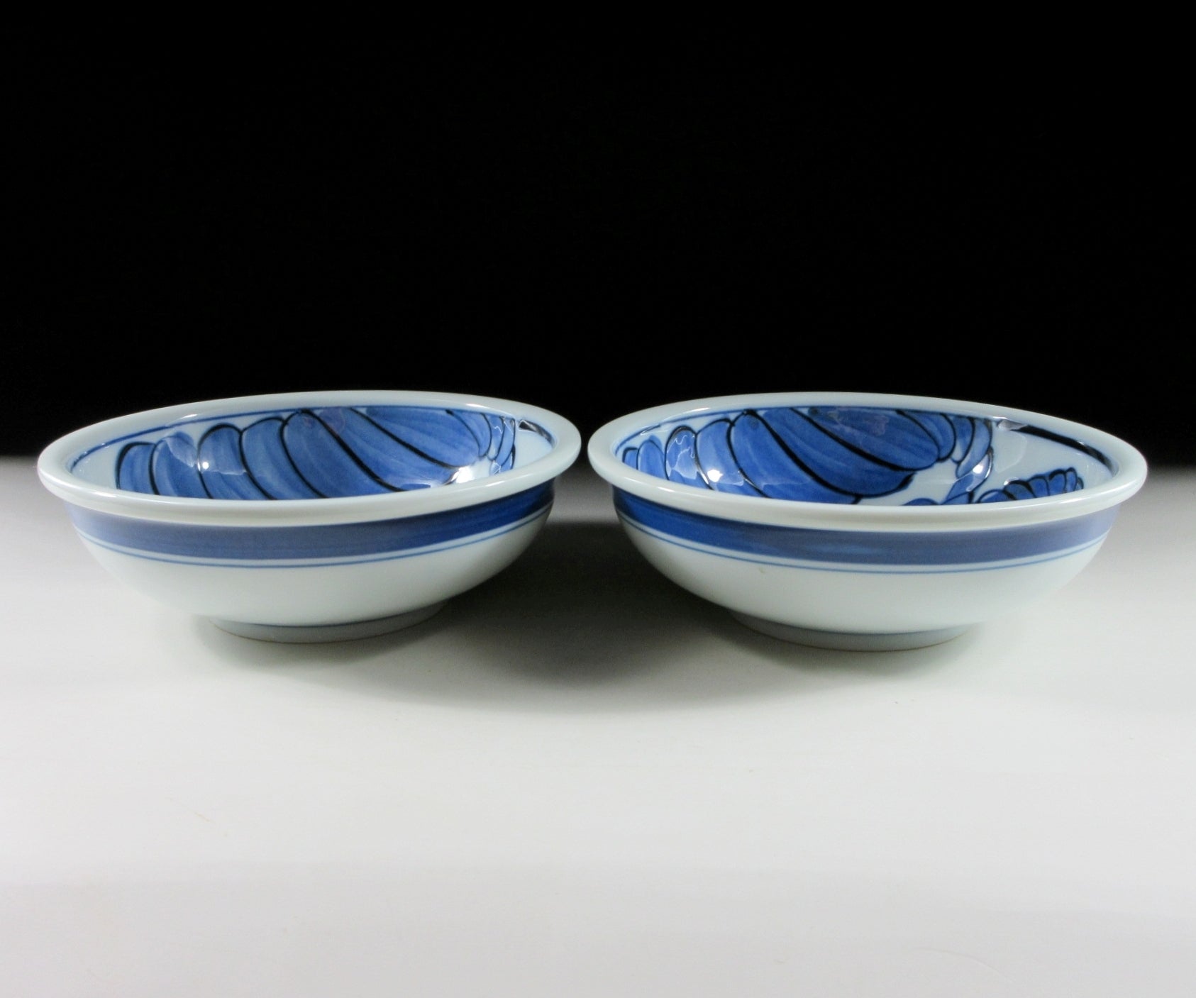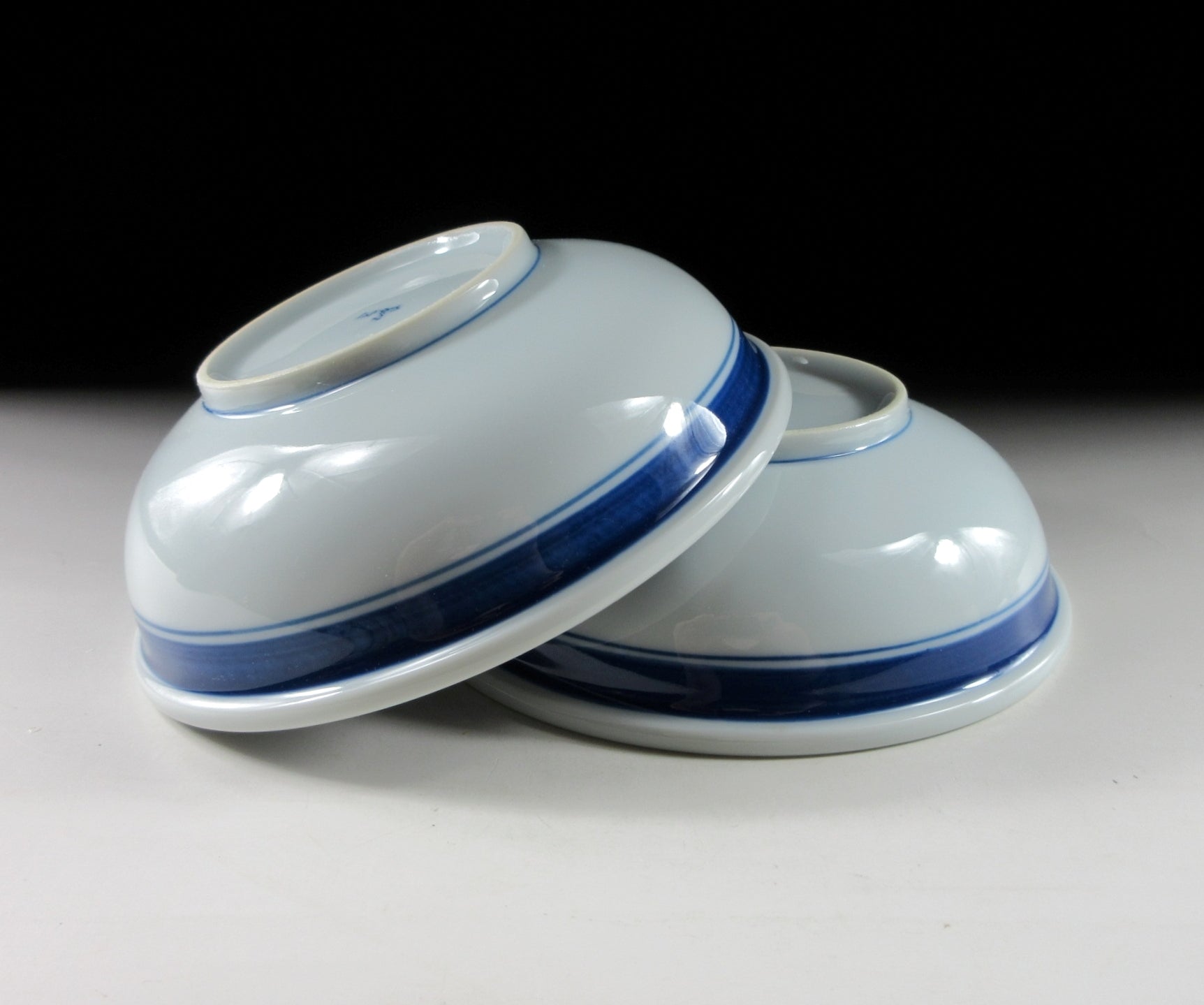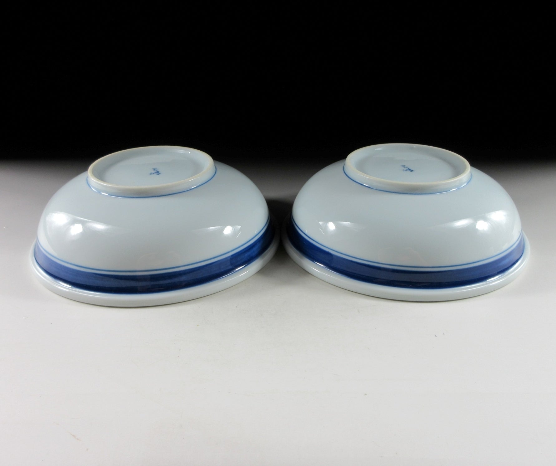 This listing is for a pair of sumo themed Arita-ware bowls made around 5-10 years ago. They are made of porcelain and the interior is decorated with two sacred white ropes used for ceremonial purposes. When a grand champion is promoted to the rank of yokozuna, they are fitted with a rope belt decorated with white ‘shide’ paper strips. These bowls are well suited for serving side dishes such as salad or fruit. The signature of the kiln can be found on the bottom.