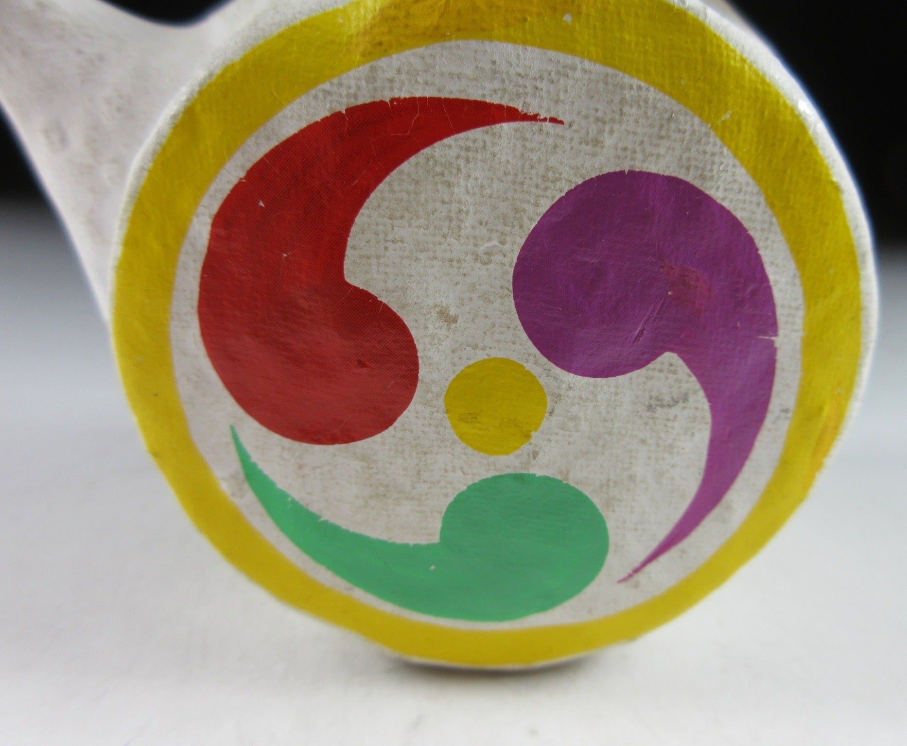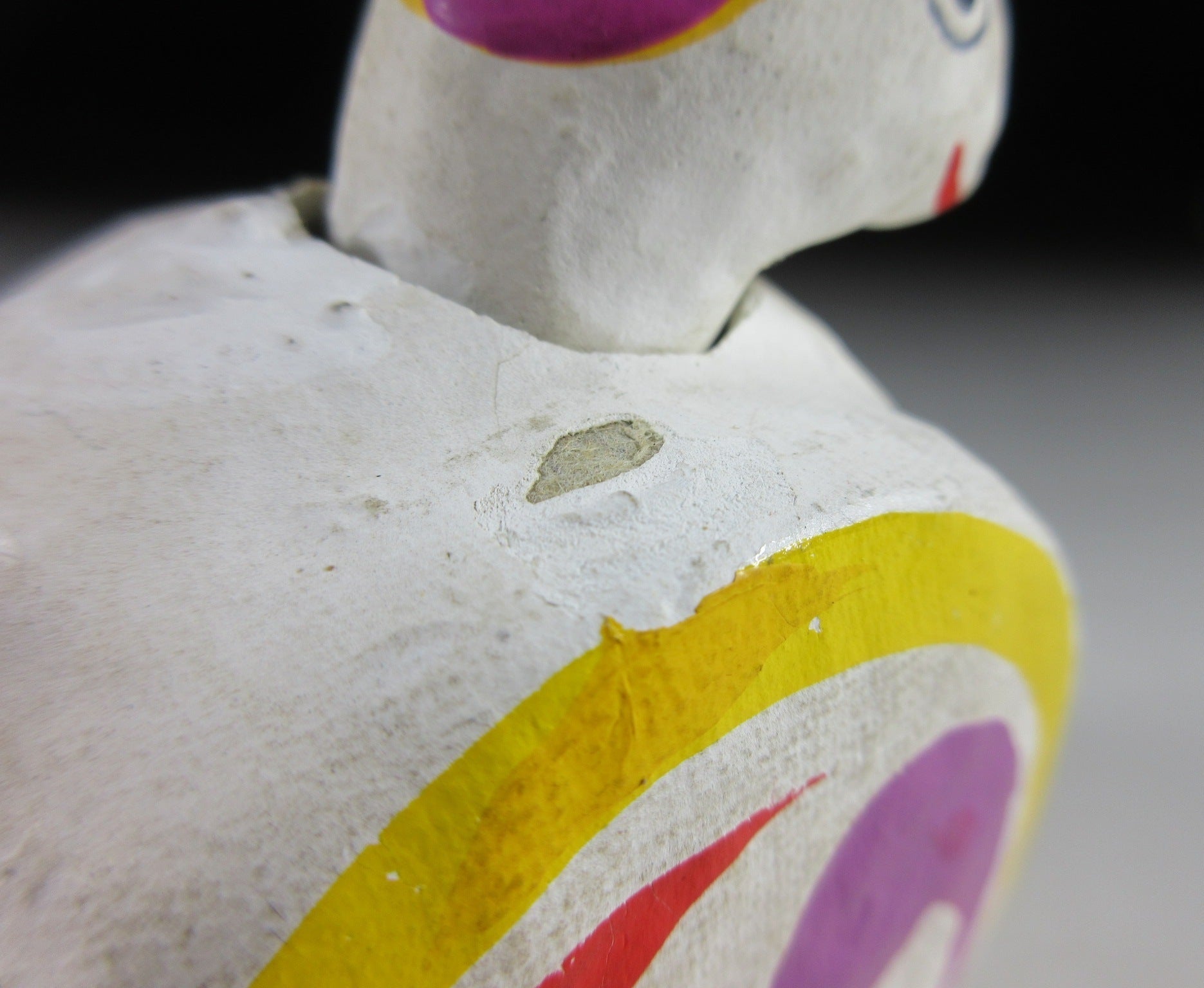 There is LOTS of discolouration from age, some marks where it has come into contact with other painted objects, and one peel spot and other general surface wear.