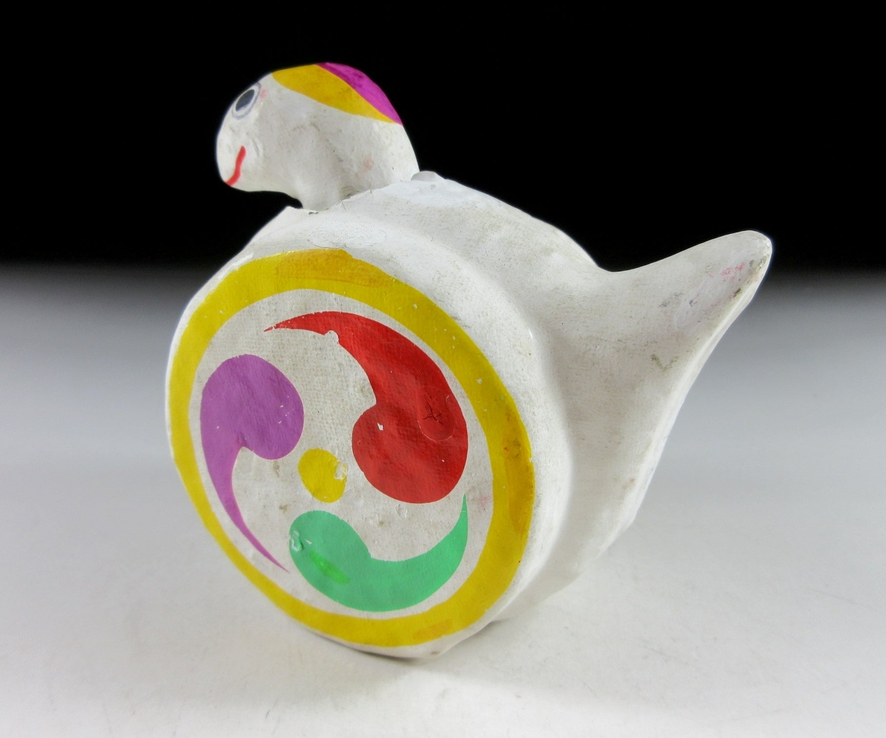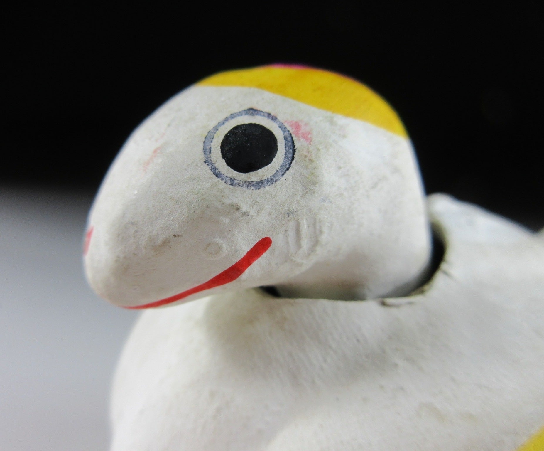 This listing is for a papier-mâché ring snake made around 40-50 years ago. Fifteen hundred years ago, during the Jin Dynasty, there was a Chinese scholar who wrote a book called ‘The Records of the Gods of War’. It tells the story of a white snake helping a man and giving him a great deal of wealth and a beautiful hoju jewel in return for his kindness. Since ancient times there have been various legends portraying snakes as wise, and it is thought that keeping one as a talisman will bring you good luck. White snakes are also said to be the manifestation of the deity Benten, and their human form is that of a beautiful woman. The ‘ring snake’ in this listing is a coiled white snake said to be the reincarnation of Benten, thus it is considered to be a lucky charm for the Year of the Snake.