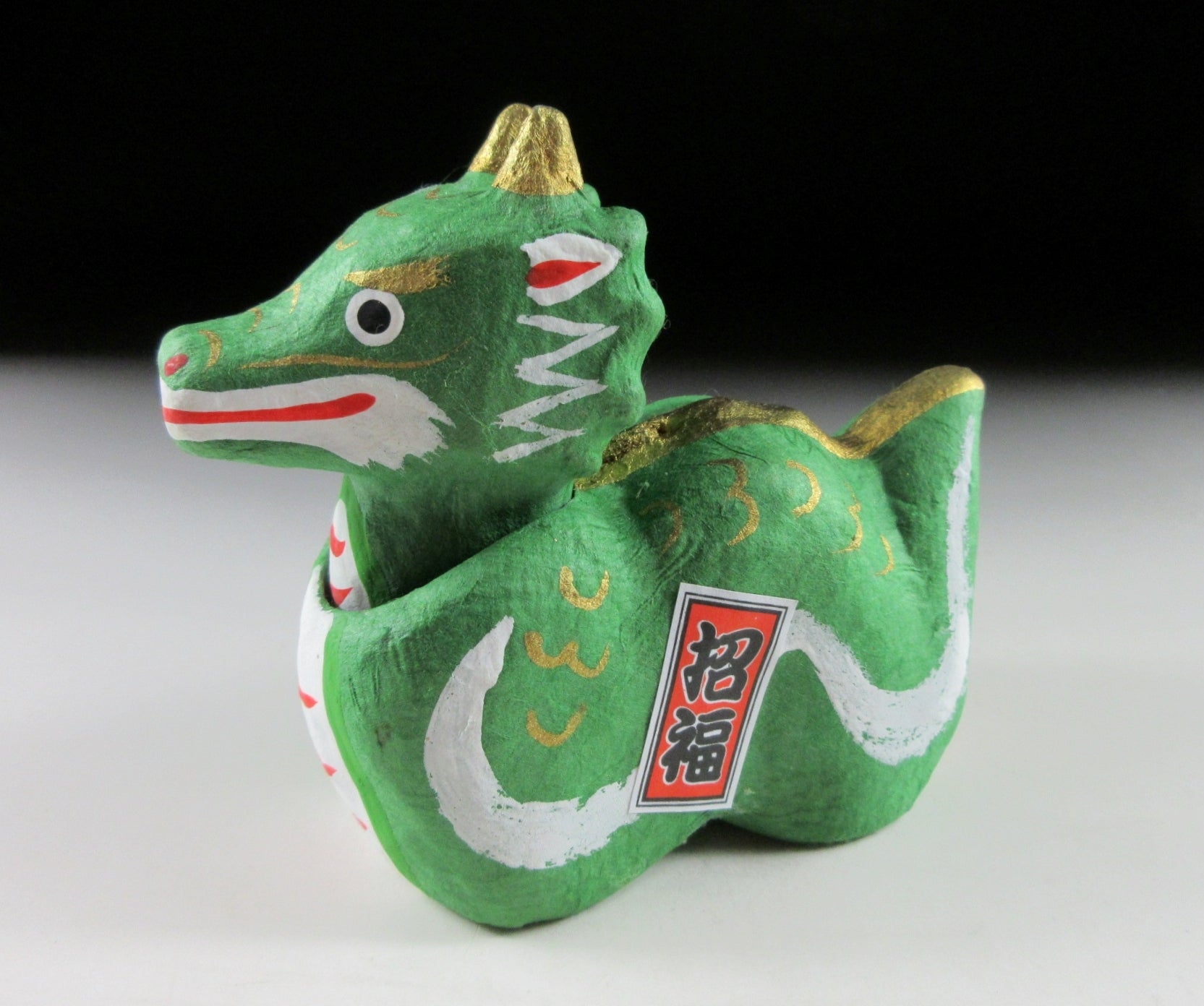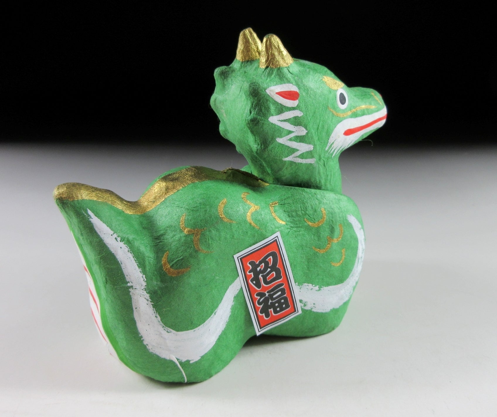 This listing is for a small bobble head dragon made to commemorate the Year of the Dragon in 2024. Dragons are believed to be good luck and also a water god. It is also said that dragons will bring good luck during your descent to heaven. It is made of papier-mâché and the exterior is coated in washi paper. The small paper pasted on its body reads as ‘blessing’. It comes complete with a little wooden plaque as well as a red ceremonial mat made of thin felt. It also comes with two Japanese language blessings / information about the twelve zodiac animals, and a paper storage box so it can be stored until the next Year of the Dragon.