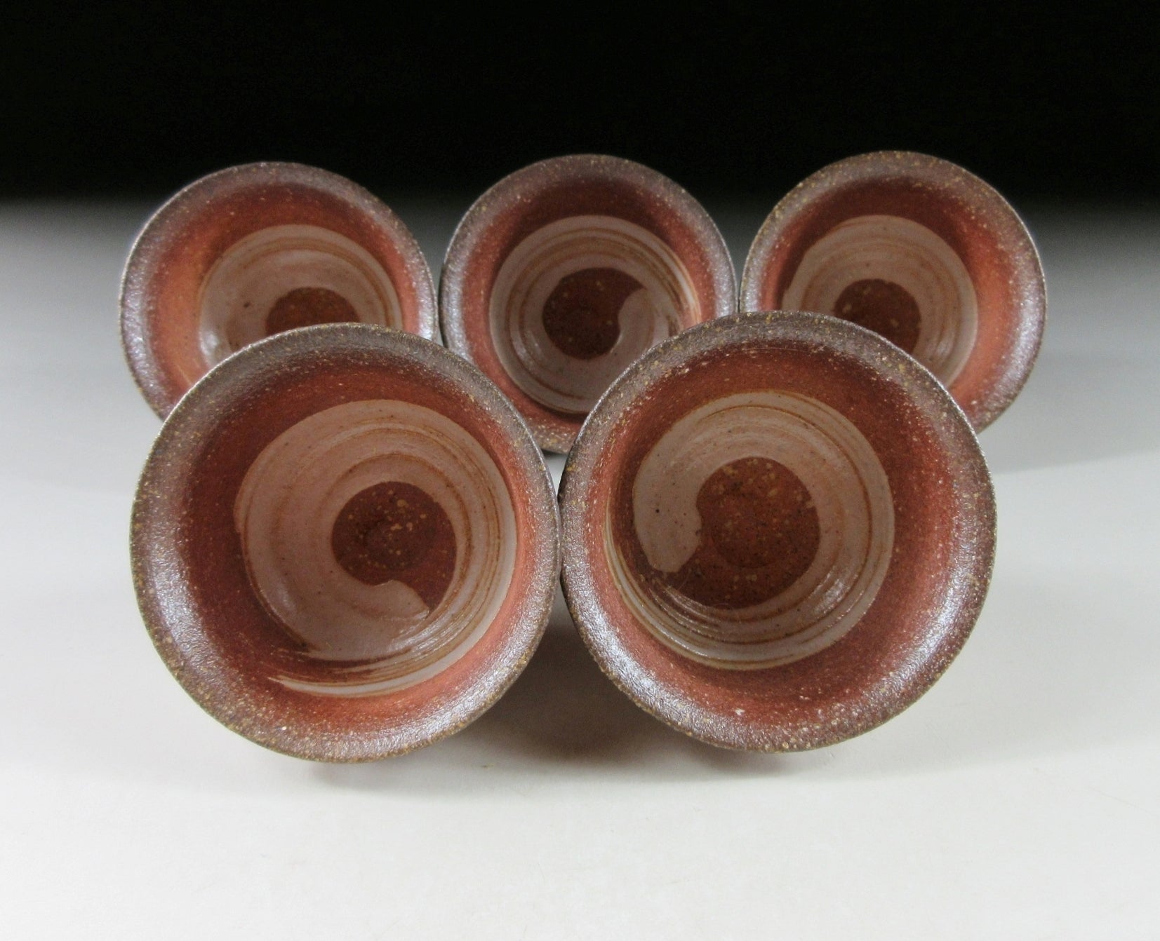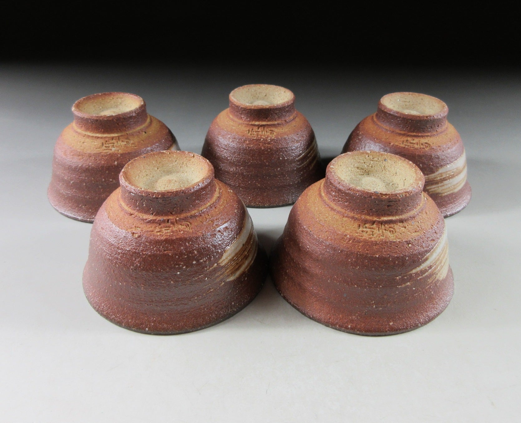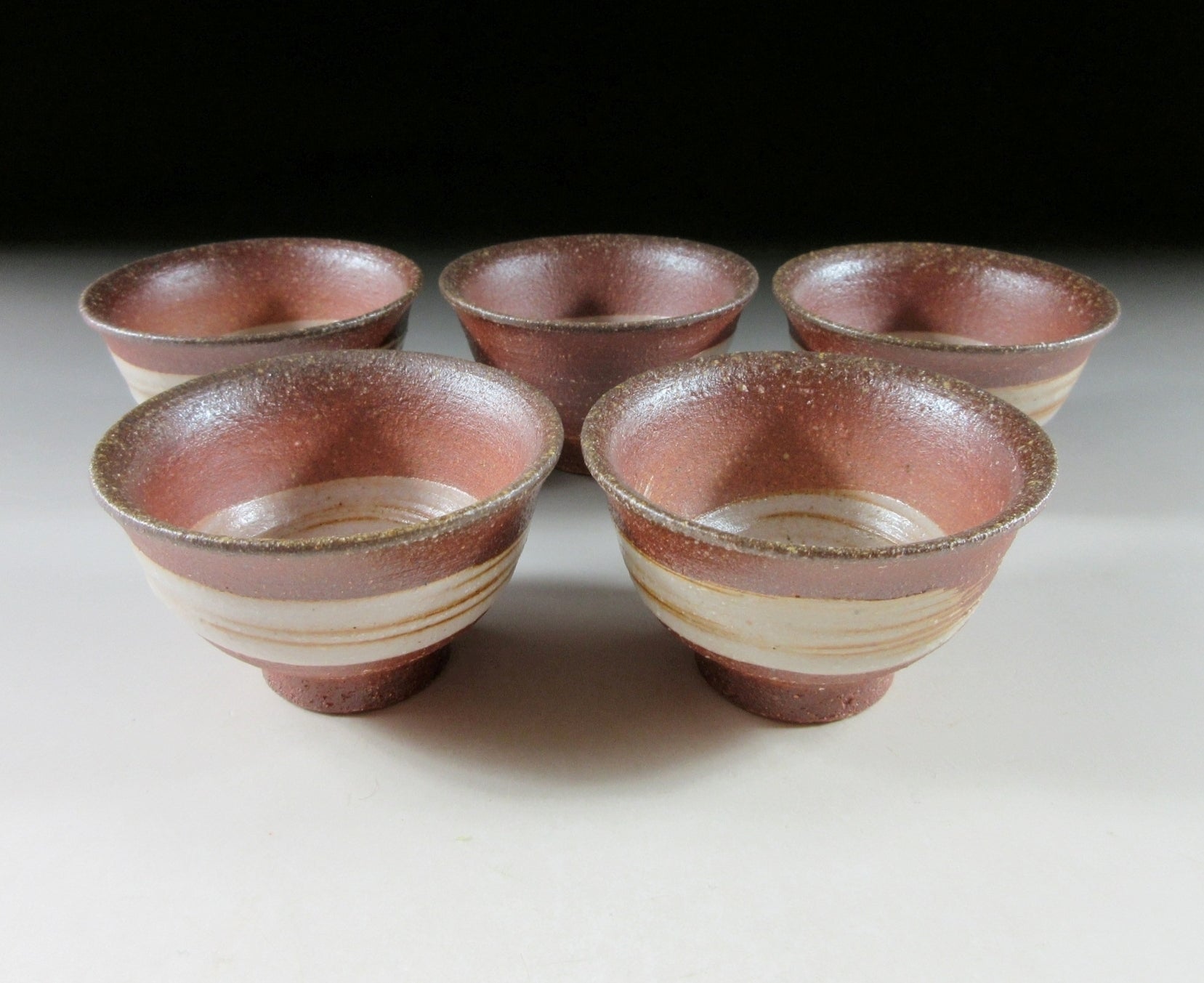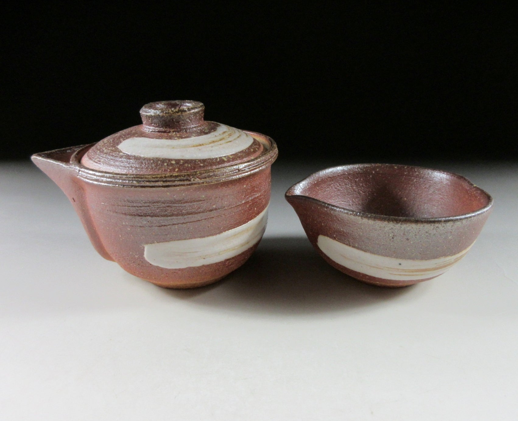 This listing is for a splendid Shigaraki-ware tea set made by distinguished potter, Takahashi Rakusai IV. The set consists of a small 175ml hobin teapot, a yuzamashi for adjusting the water temperature, and five teacups. The yuzamashi is an essential item for making good quality tea. Boiled water should be poured into the yuzamashi before going anywhere near the teapot. This allows the water to cool down and become the correct temperature, which is ideally around 80 degrees Celsius. This type of tea set is intended for making sencha or genmaicha. Sencha is a Japanese green tea made without grinding the tea leaves, whereas genmaicha is green tea combined with roasted brown rice. Each piece is signed and the set comes with its original signed storage box, and a Japanese language profile paper. It also comes with a yellow wrapping cloth for when the teapot is not in use.