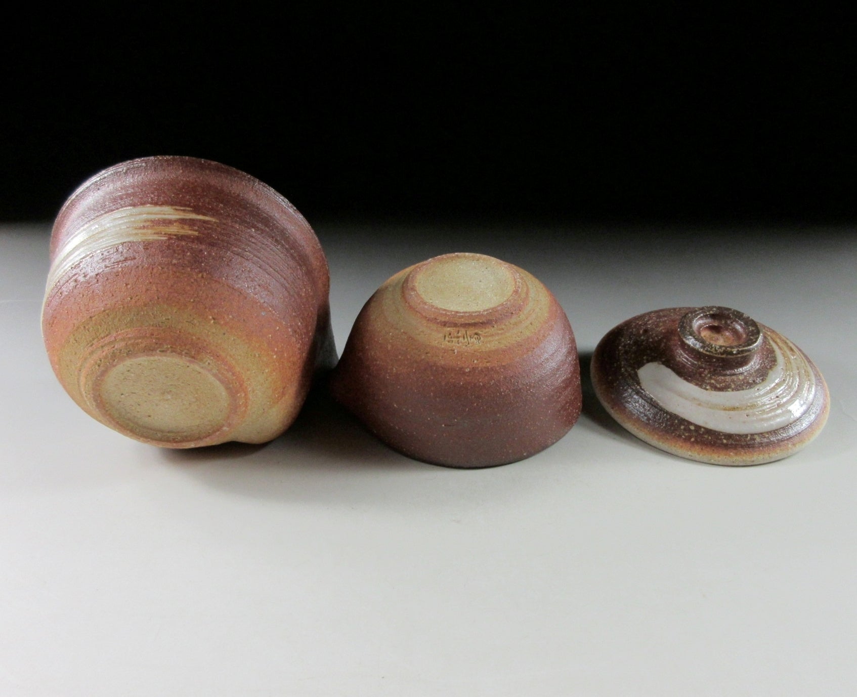 The Takahashi family has the honour of being one of the original potter families in Shiga, the first being Takahashi Tozaemon in the 1830s. They are largely responsible for reviving the techniques and traditions that were almost lost from long ago, and in 1964 the third generation was designated as an Intangible Cultural Property. The Rakusai family is probably best known for their three landscapes effect – a combination of fire colour, scorch markings, and vitrified glass. Takahashi Rakusai IV (b.1925) is the fourth generation master of the Takahashi family kiln, taking over in 1976 after the third generation passed away. Rakusai IV trained under Rakusai III, and he became a master at wood firing. He held various solo exhibitions in Japan, as well as a solo exhibition in Los Angeles. He was certified as a Traditional Craftsman of Shiga Prefecture by the Japanese government, and he served as Chairman of the Shigaraki Ceramic Artists Association. The Takahashi kiln is now in its fifth generation and headed by Rakusai IV’s eldest son, Kozo (b.1954). **Fellow sellers, this information was researched by Kominka Zakka and cannot be used in your own listings.