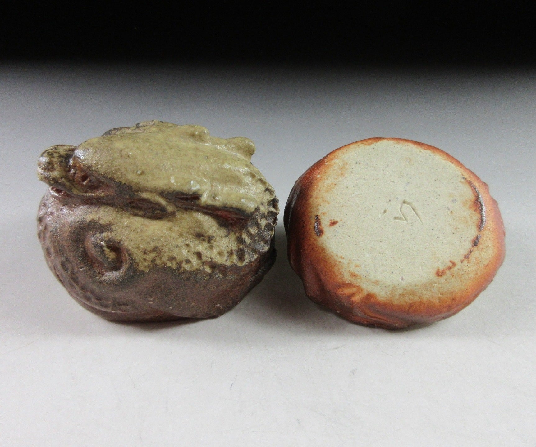 The Takahashi family has the honour of being one of the original potter families in Shiga, the first being Takahashi Tozaemon in the 1830s. They are largely responsible for reviving the techniques and traditions that were almost lost from long ago, and in 1964 the third generation was designated as an Intangible Cultural Property. The Rakusai family is probably best known for their three landscapes effect – a combination of fire colour, scorch markings, and vitrified glass. Takahashi Rakusai IV (b.1925) is the fourth generation master of the Takahashi family kiln, taking over in 1976 after the third generation passed away. Rakusai IV trained under Rakusai III, and he became a master at wood firing. He held various solo exhibitions in Japan, as well as a solo exhibition in Los Angeles. He was certified as a Traditional Craftsman of Shiga Prefecture by the Japanese government, and he served as Chairman of the Shigaraki Ceramic Artists Association. The Takahashi kiln is now in its fifth generation and headed by Rakusai IV’s eldest son, Kozo (b.1954). **This information was researched by Kominka Zakka and cannot be used in your own listings.