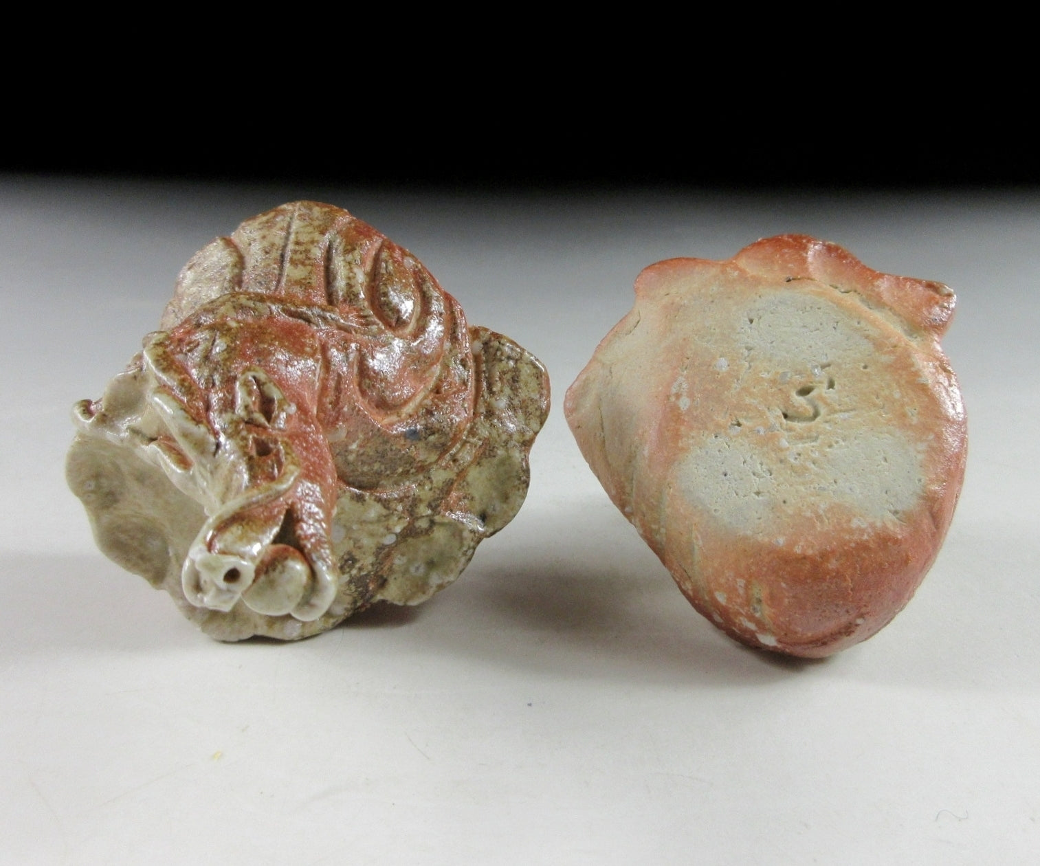 The Takahashi family has the honour of being one of the original potter families in Shiga, the first being Takahashi Tozaemon in the 1830s. They are largely responsible for reviving the techniques and traditions that were almost lost from long ago, and in 1964 the third generation was designated as an Intangible Cultural Property. The Rakusai family is probably best known for their three landscapes effect – a combination of fire colour, scorch markings, and vitrified glass. Takahashi Rakusai IV (b.1925) is the fourth generation master of the Takahashi family kiln, taking over in 1976 after the third generation passed away. Rakusai IV trained under Rakusai III, and he became a master at wood firing. He held various solo exhibitions in Japan, as well as a solo exhibition in Los Angeles. He was certified as a Traditional Craftsman of Shiga Prefecture by the Japanese government, and he served as Chairman of the Shigaraki Ceramic Artists Association. The Takahashi kiln is now in its fifth generation and headed by Rakusai IV’s eldest son, Kozo (b.1954). **This information was researched by Kominka Zakka and cannot be used in your own listings.