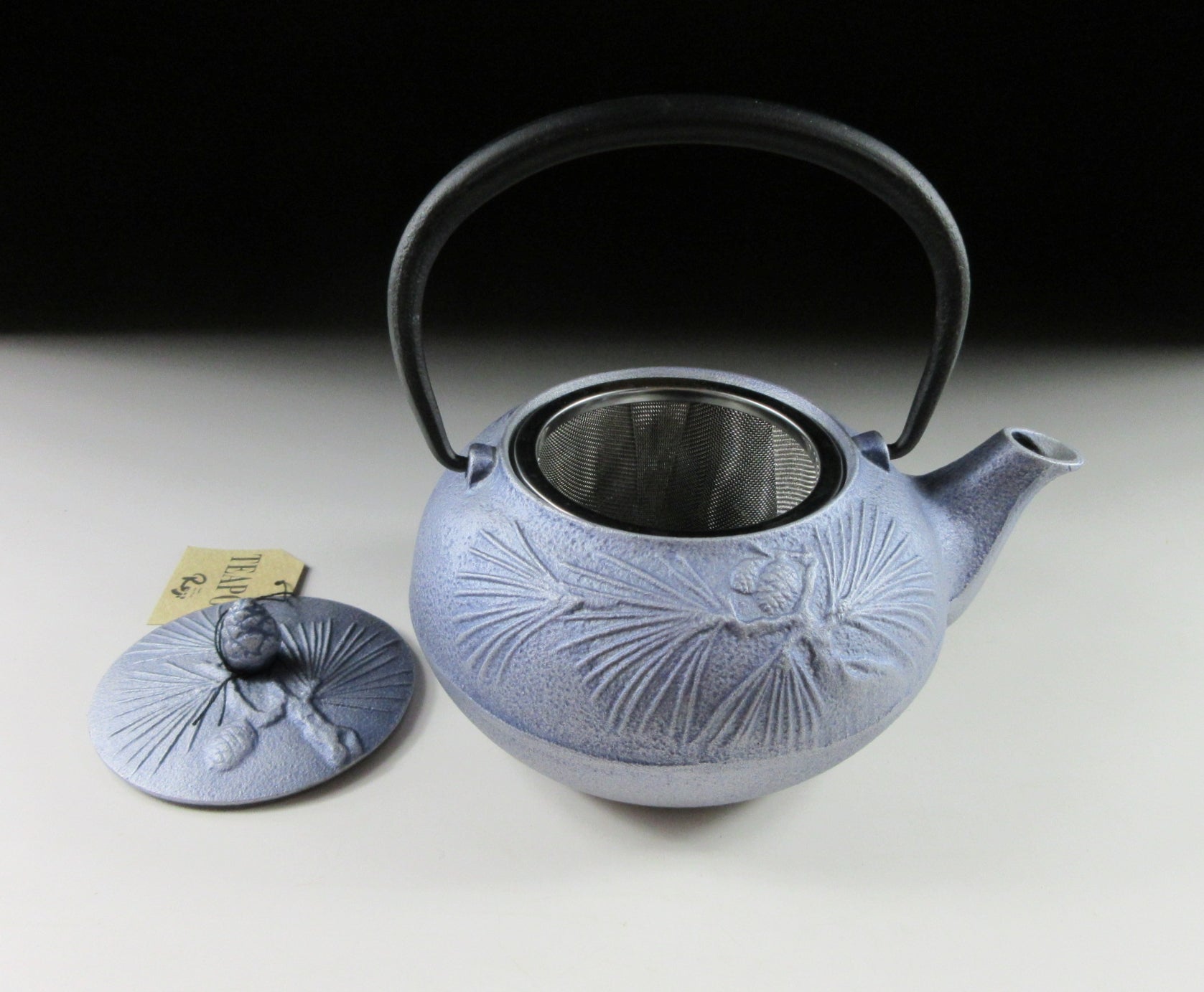 This listing is for a Nambu tekki tetsubin made around 5 years ago by Ryoji. It comes with a stainless steel mesh strainer and the exterior is decorated with matsu pine. The interior is protected by enamel coating, and it has a capacity of 475ml. Pine is a popular motif for teaware because it is one of the three friends of winter. Matsu pine, ume and bamboo are admired in both Japan and China as they do not wither against the cold of winter. All three plants are regarded as auspicious and are believed to symbolise endurance and strength. This piece is completely unused and comes with its original paper storage box. It also comes with a multi-language profile paper with care instructions.