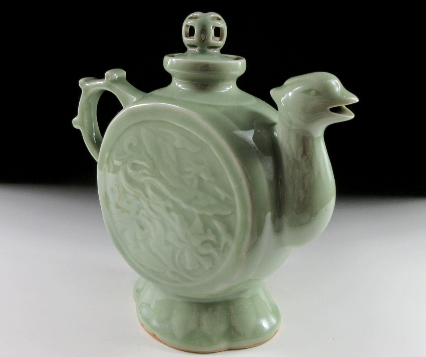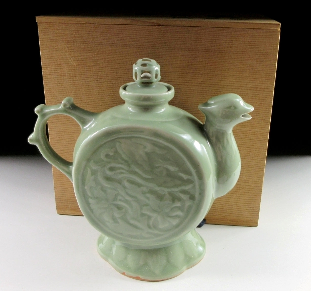 Ryusen kiln refers to one of the biggest celadon kilns in China. At first, Ryusen kiln fired grey-blue celadon which is a lineage of Yuezhou kiln celadon , but in the latter half of the 11th century it developed a unique bluish -green glaze colour, which gradually surpassed that of Yuezhou kiln. From then on it grew into China's number one celadon kiln. Some of Ryusen kiln's works are untextured, but there are also many examples with carved patterns, raised patterns, and iron spots. A lot of the wares produced in the modern era consist of incense burners, vases and teapots, and as well as reproductions of ancient pieces. **Fellow sellers, this information was researched by Kominka Zakka and CANNOT be used in your own listings.