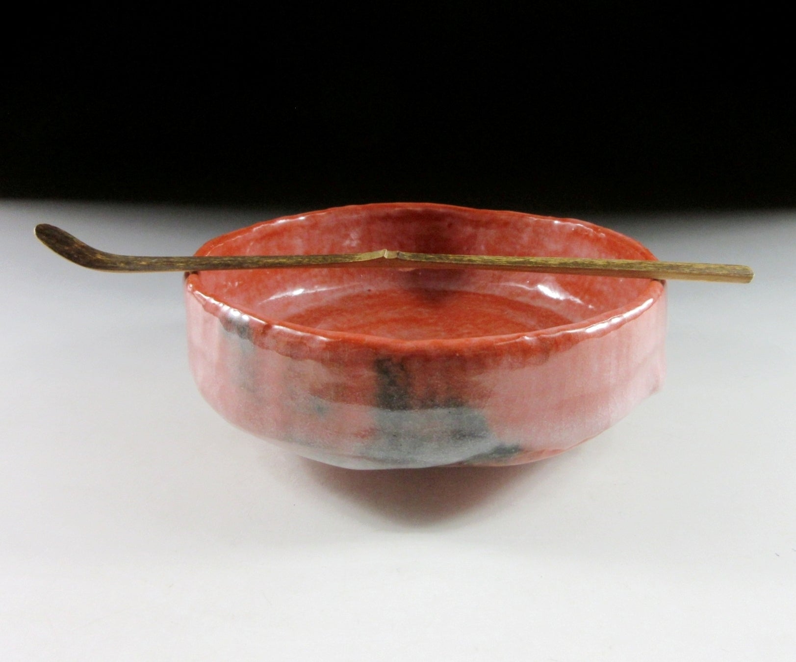 Raku ware refers to low-fired ceramic ware first made in Kyoto by the Raku Family, its origins going as far back as the 16th century. It is traditionally characterised by being hand shaped rather than thrown. Raku is typically delicate, lightweight, and earthy to the touch. Aka (red) raku bowls are fired at 800 degrees, whilst the kuro (black) bowls can be fired up to 1200 degrees. The glaze for black bowls is made from crushed black stones retrieved from the Kamogawa River in Kyoto. Red bowls are coloured by adding translucent glaze over a pinkish clay body. When using raku bowls you should always wipe well with a warm cloth before use. It is possible to cause small cracks if you suddenly add boiling water.