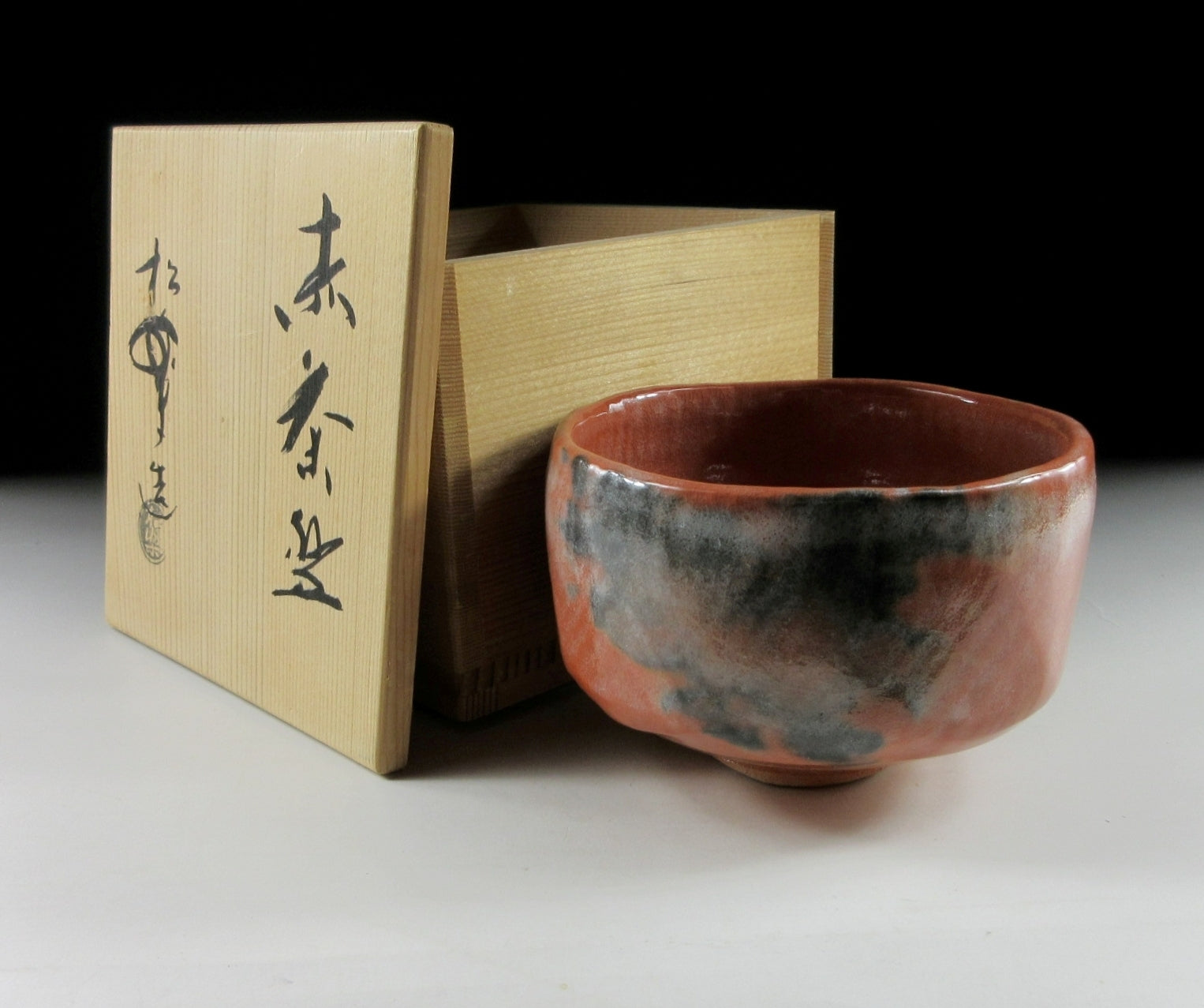 Sasaki Shoraku (b.1944) is a third generation Raku-ware potter working out of Shoraku Gama in Kyoto. He succeeded his father Shoraku II in 1962, and has devoted much of his career producing high quality tea ware. Shoraku Gama specializes in aka raku and kuro raku pieces, and a lot of effort has gone into preserving traditional methods and techniques. Also Shoraku chawan usually have the wonderful ‘gozan’ peaks on the rim. These peaks represent the five main Zen temples in Kyoto, and are considerable an important and traditional aesthetic associated with high quality Raku-ware. **Fellow sellers, this information was researched by Kominka Zakka and cannot be used in your own listings.