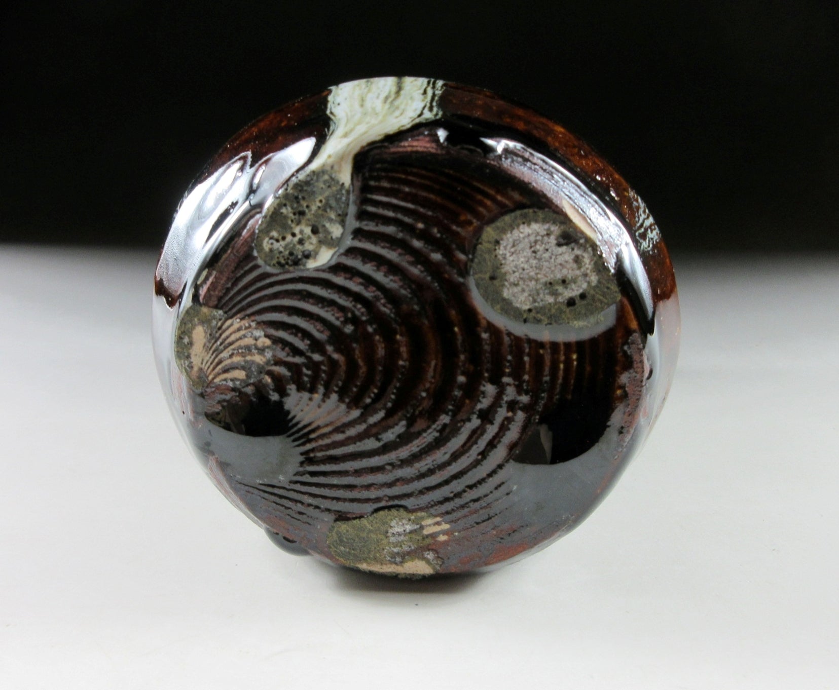 It’s in very good condition aside from what appears to be a ‘kiln scar’ on the bottom where glaze fused onto the kiln shelf during firing.