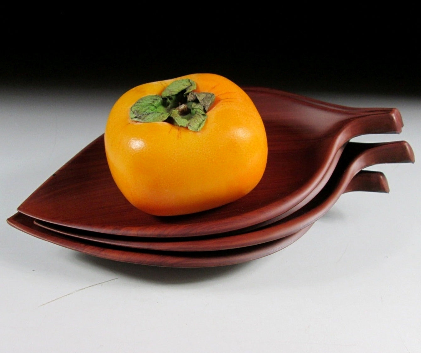 This listing is for a set of four imitation lacquerware sweets plates made around 20 years ago. They are shaped like leaves and have the appearance of lacquered wood. Sets like these are perfect for outdoor use like picnics or outdoor tea practice. They are made of plastic so there’s no need to worry about scratches or general wear, and they’re easy to clean.