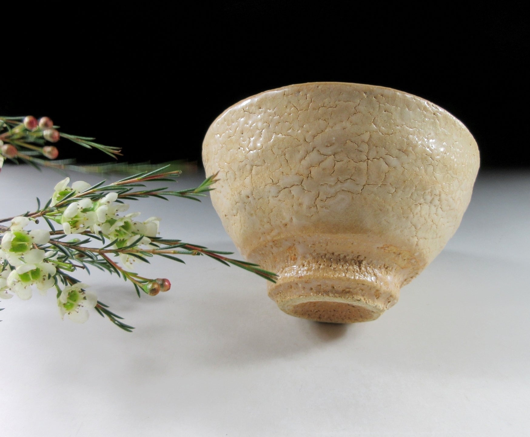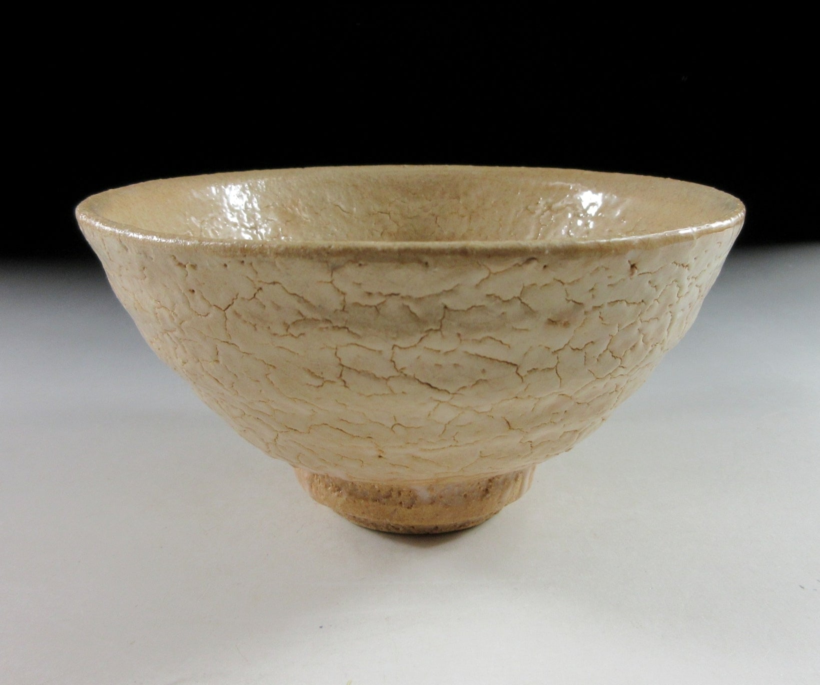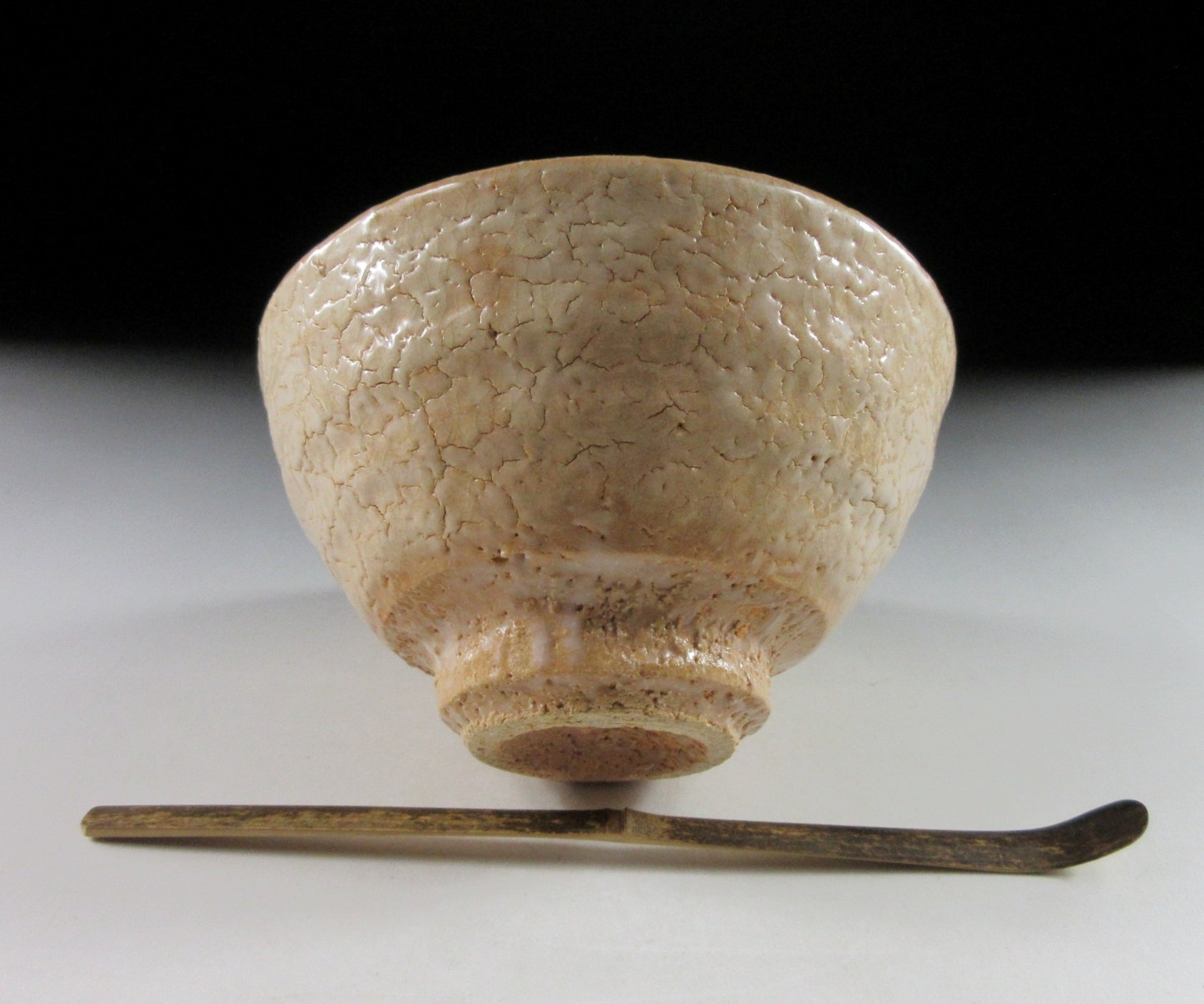 Hagi-ware is a type of high-fired stoneware produced in Yamaguchi Prefecture. It is characterized by its rough clay, bumpy pitted surface, and generous coating of translucent white glaze. It is generally made of very porous clay which results in tiny crackles that absorb tea, so it’s important to soak Hagi-ware thoroughly before use. In time the tea deposits will seep into the glaze, creating a deeper tone. This is often considered a charming characteristic rather than a shortcoming, and it’s precisely the reason why Hagi-ware is so highly regarded in the world of Chado.