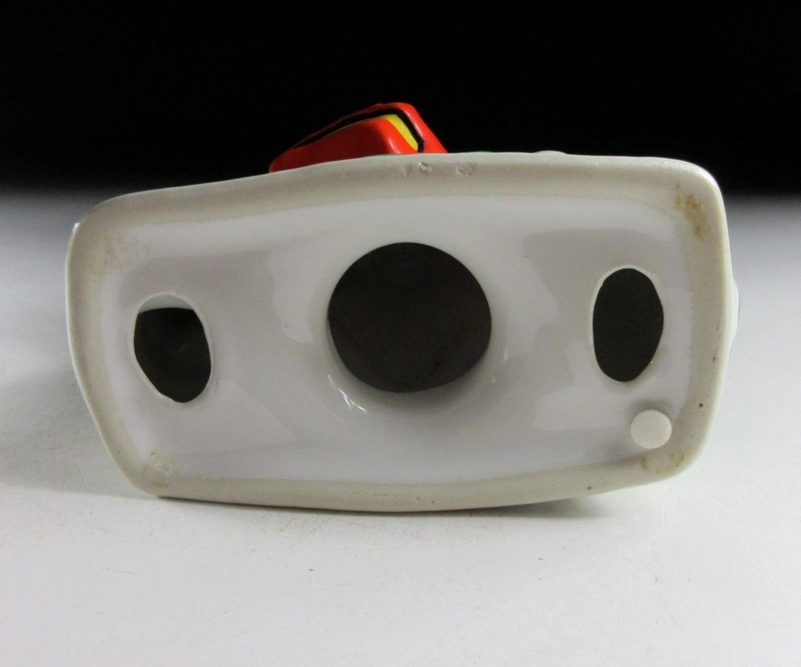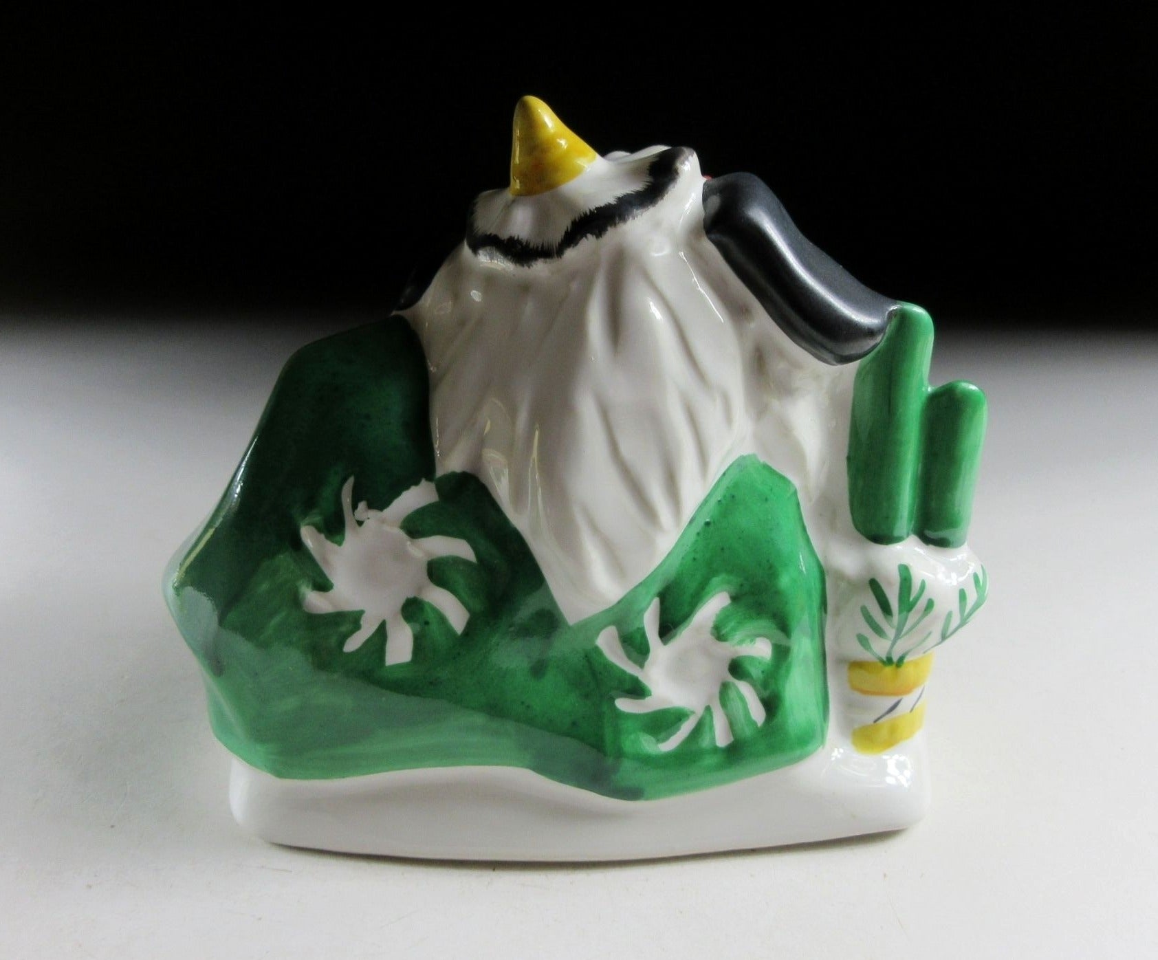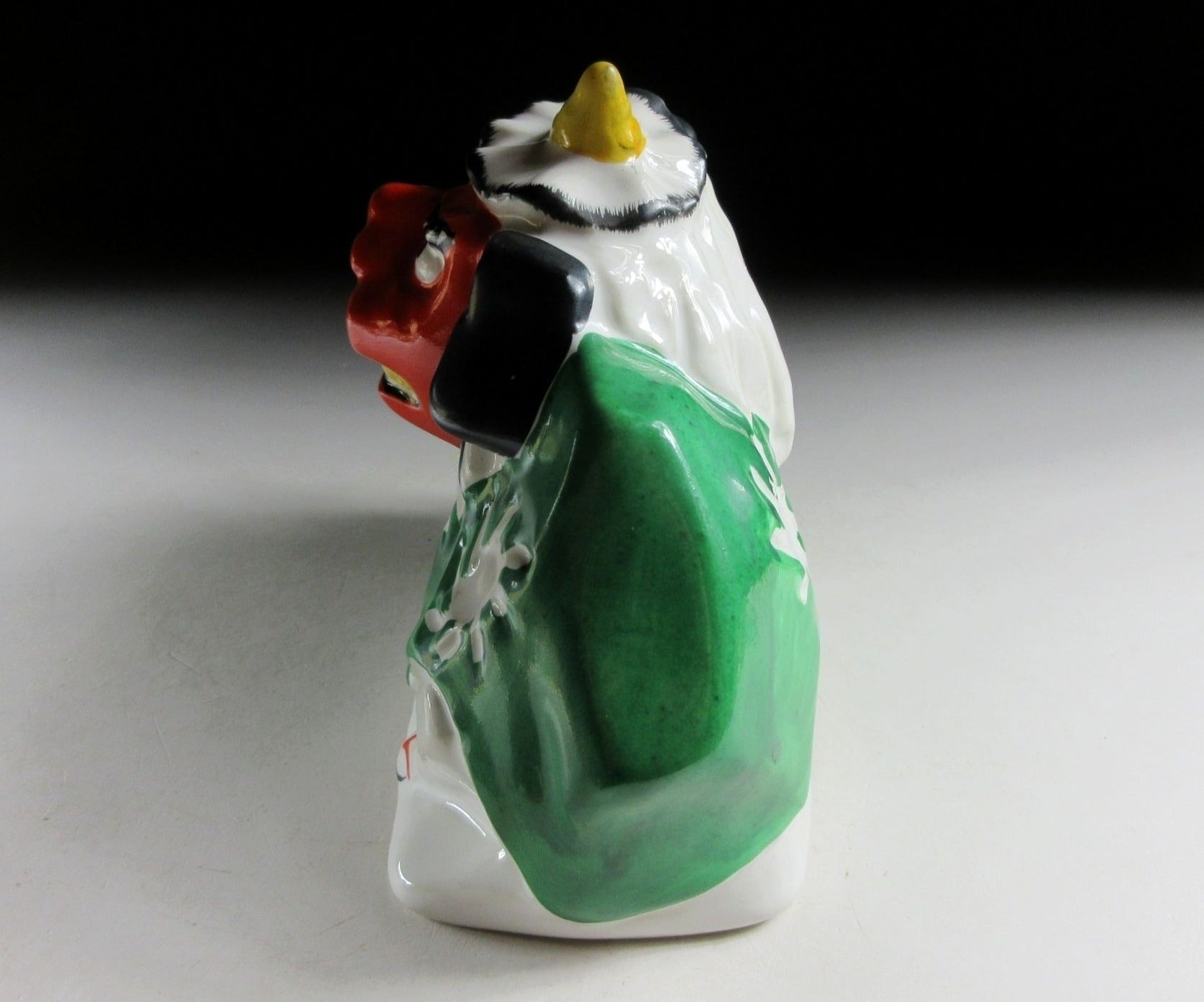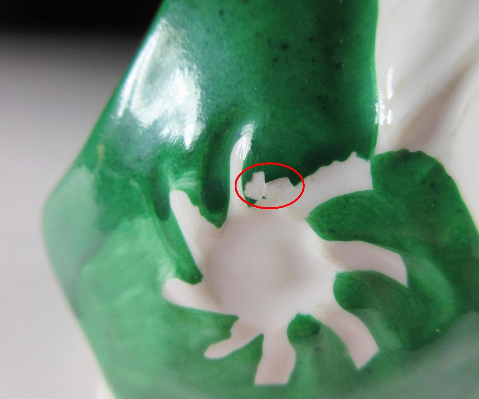 This listing is for a New Year ornament made around 20 years ago. During New Year men wear shishigashira masks and perform a shishimai dance to purify the spirit of those he ‘bites’ on the head, and also to drive out evil spirits. On the shishi’s right side is a traditional New Year ornament called a kadomatsu. Kadomatsu are placed in pairs in front of homes to welcome ancestral spirits or gods of harvest. The ornament accompanied some bottles of sake that were purchased many years ago. It is made from a slip mould and has a hollow interior.